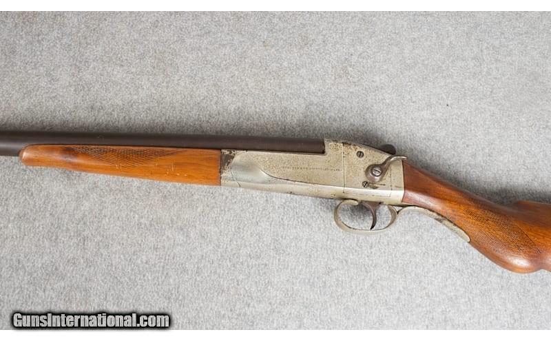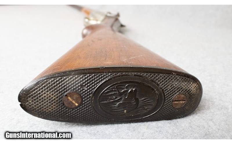 Description: Very Old (1880's+) American Arms Semi Hammerless Single Shot Shotgun, Gauge / Chamber not marked... 12 Gauge snap caps fit... 12 Gauge Choke Gauge fits. YOU WILL NEED TO HAVE A COMPETENT GUNSMITH VERIFY GAUGE, CHAMBER and whether this gun can handle smokeless powder loads. It is in decent shape for pushing 145 years old (patent mark says 1883) Gun was built in Massachusetts and would make a great piece of wall art in your cabin. The lever on the side is actually how you cock this gun and that's how it was dubbed the "Semi Hammerless" Interested? Give us a call in the East Hartford Bass Pro Gun Library (860) 290-6210, we can sell it to you over the phone and ship it to the Bass Pro or Cabelas of your choice free of charge. Inspection at pickup is no problem and if you don't like what you see a refund will be issued no problem. Unknown Chambers: 2 5/8? 2 3/4? Metal Condition: Good Wood Condition: Good Bore Condition: Very Good Barrels: 30 Stock Dimensions: 14" LOP Fore End: Wood Butt Pad: Plastic Weight: 7 1/2 lbs. Sights: Single Bead Chokes: Improved Modified Item Location: East Hartford, CT Price: $129.99 Contact Seller |