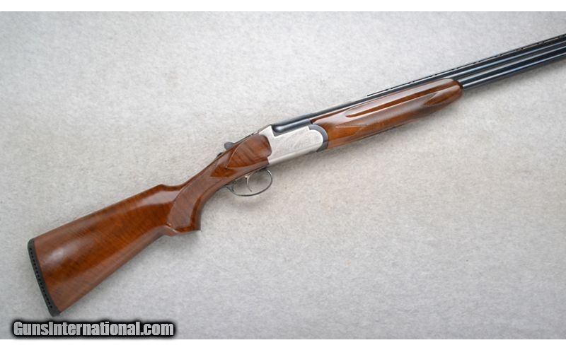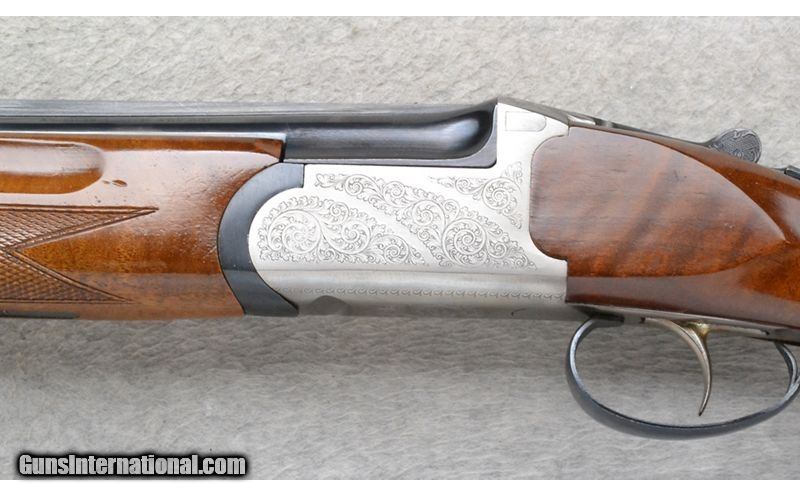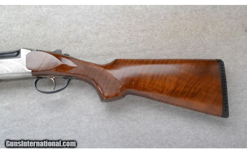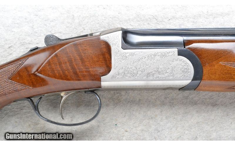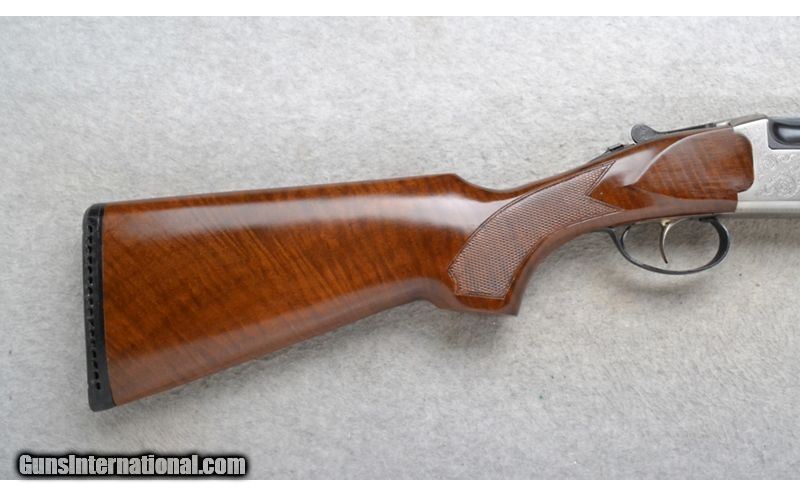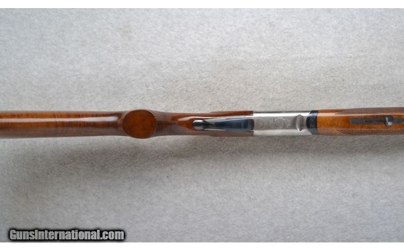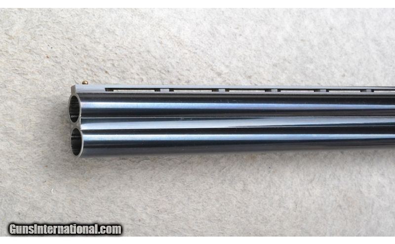 Description: This American Arms Model Silver I is an Over & Under 20 Ga. shotgun. It has 26 inch barrels with extractors and a top barrel ventilated rib. A brass bead front sight. With 3 inch chambers it has fixed Imp. Cyl. and Modified chokes. The butt stock is a checkered grip walnut pistol grip. The forearm is a checkered grip walnut with finger grooves. The coin finish receiver is nicely engraved. 20 Gauge SOLD Chambers: 3 inch. Metal Condition: Very Good with some handling / use marks. Wood Condition: Very Good with some light handling marks. Bore Condition: Shiny. Barrels: 26 inch with extractors and a top barrel ventilated rib. Triggers: SST Stock Dimensions: LOP 14 inches. Fore End: Checkered grip walnut with finger grooves. Butt Pad: Black rubber recoil pad. Weight: 7 lb. 0 oz. Sights: Brass front bead. Chokes: Fixed Imp Cyl & Mod. Item Location: Richfield, WI |