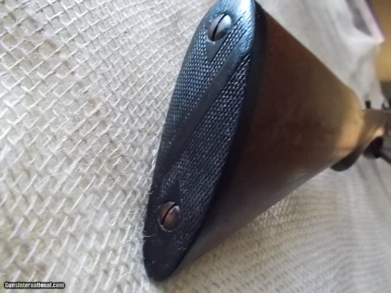 Description: 26" checkered & light tapered flat rib, choked F/IC, checkered Prince 'o Wales American walnut (round knob) stock & forearm, 13 3/4" LOP over original buttplate, 85% blue, 40% original CC, some wear on no cracks or splinther,stock, (Low brass modern shells) SOLD |