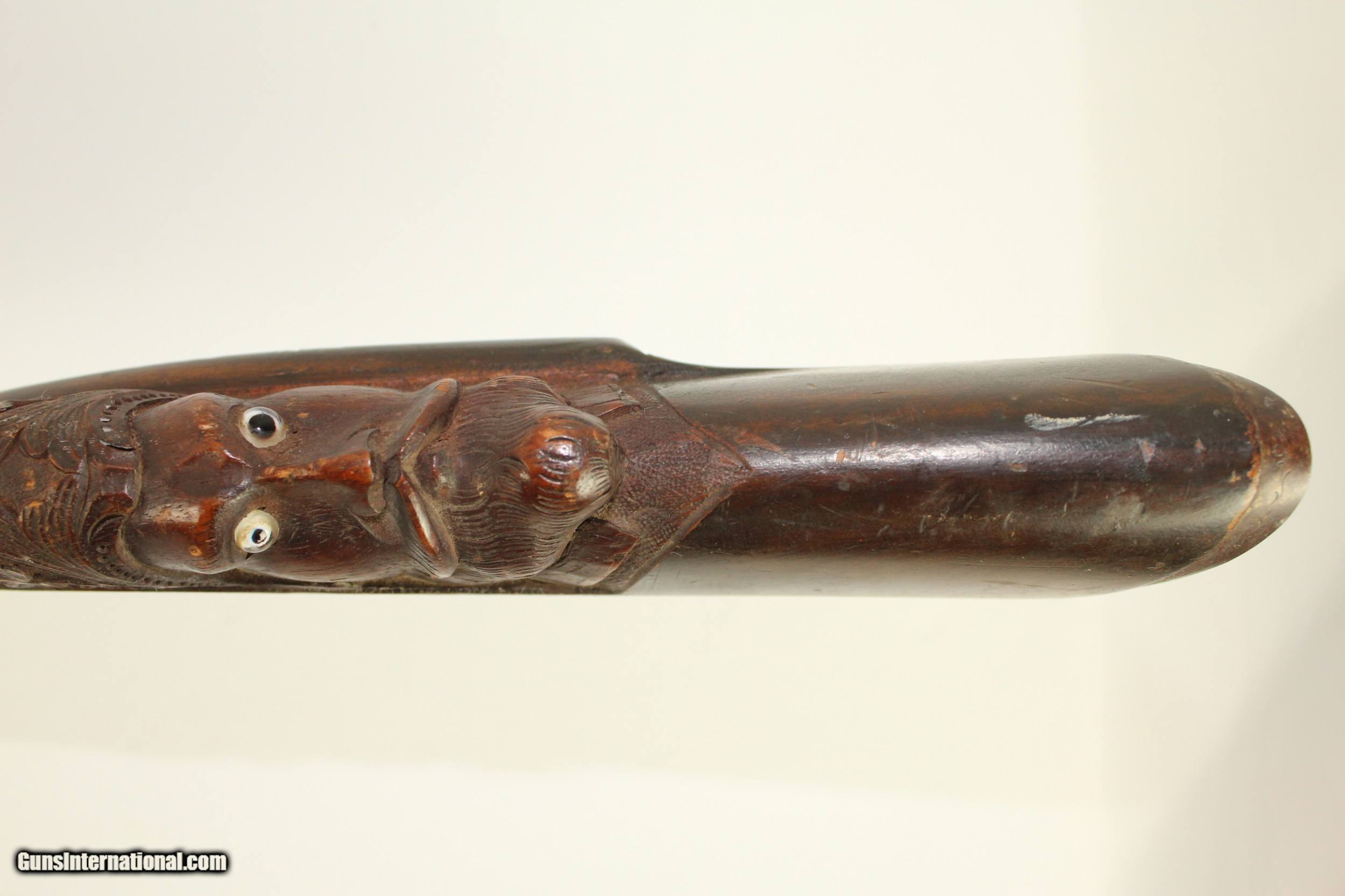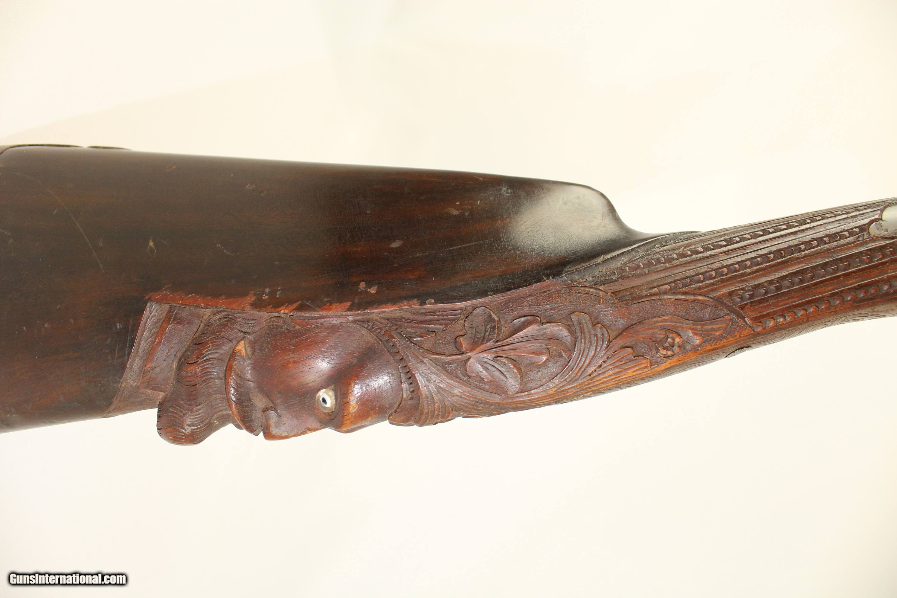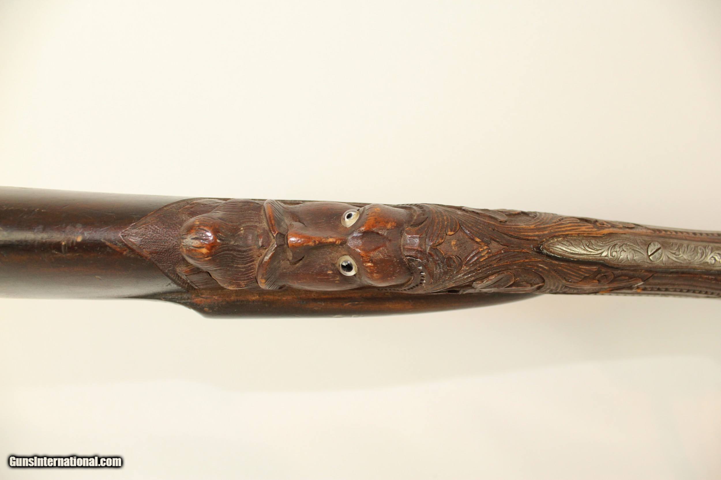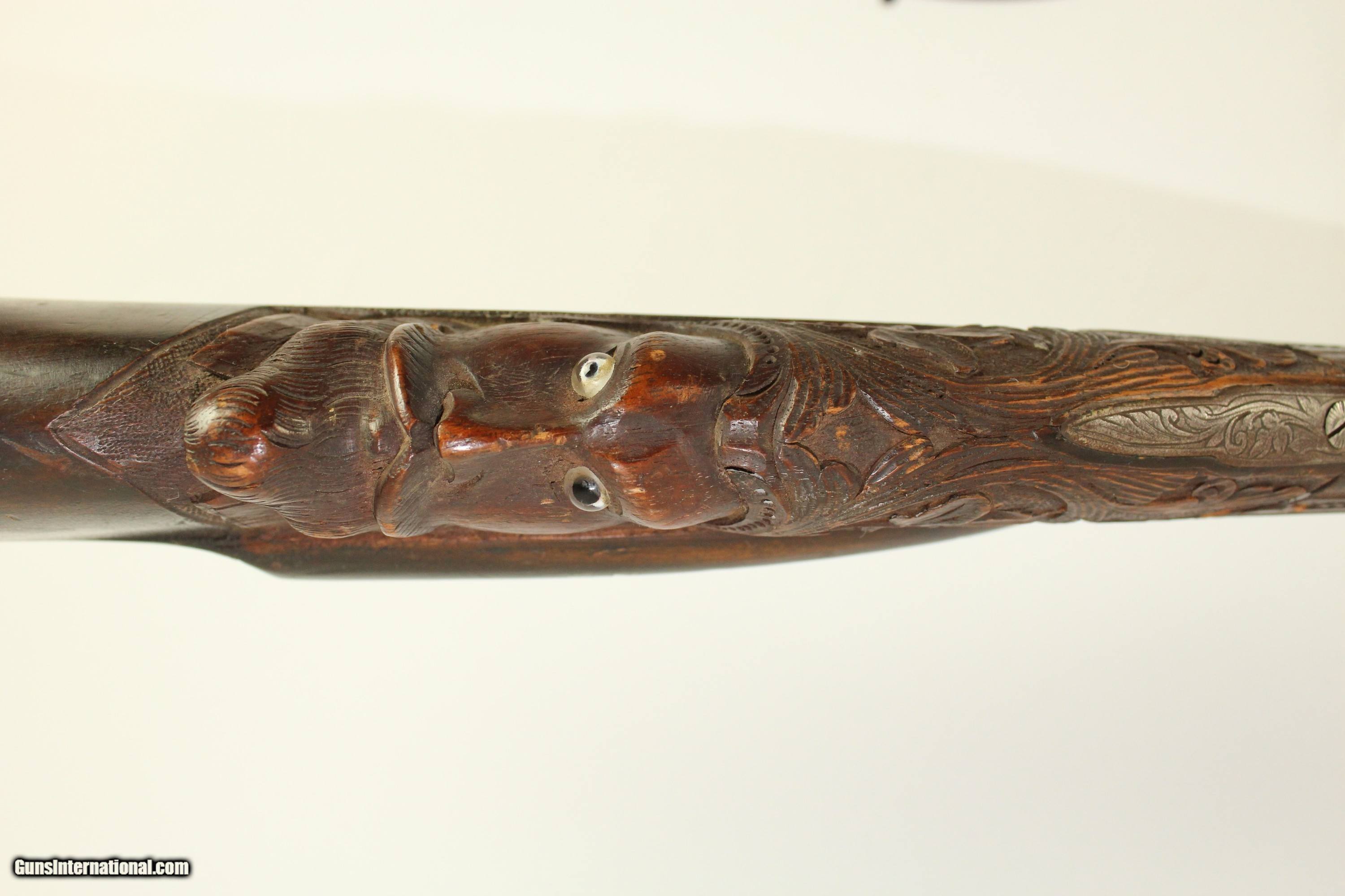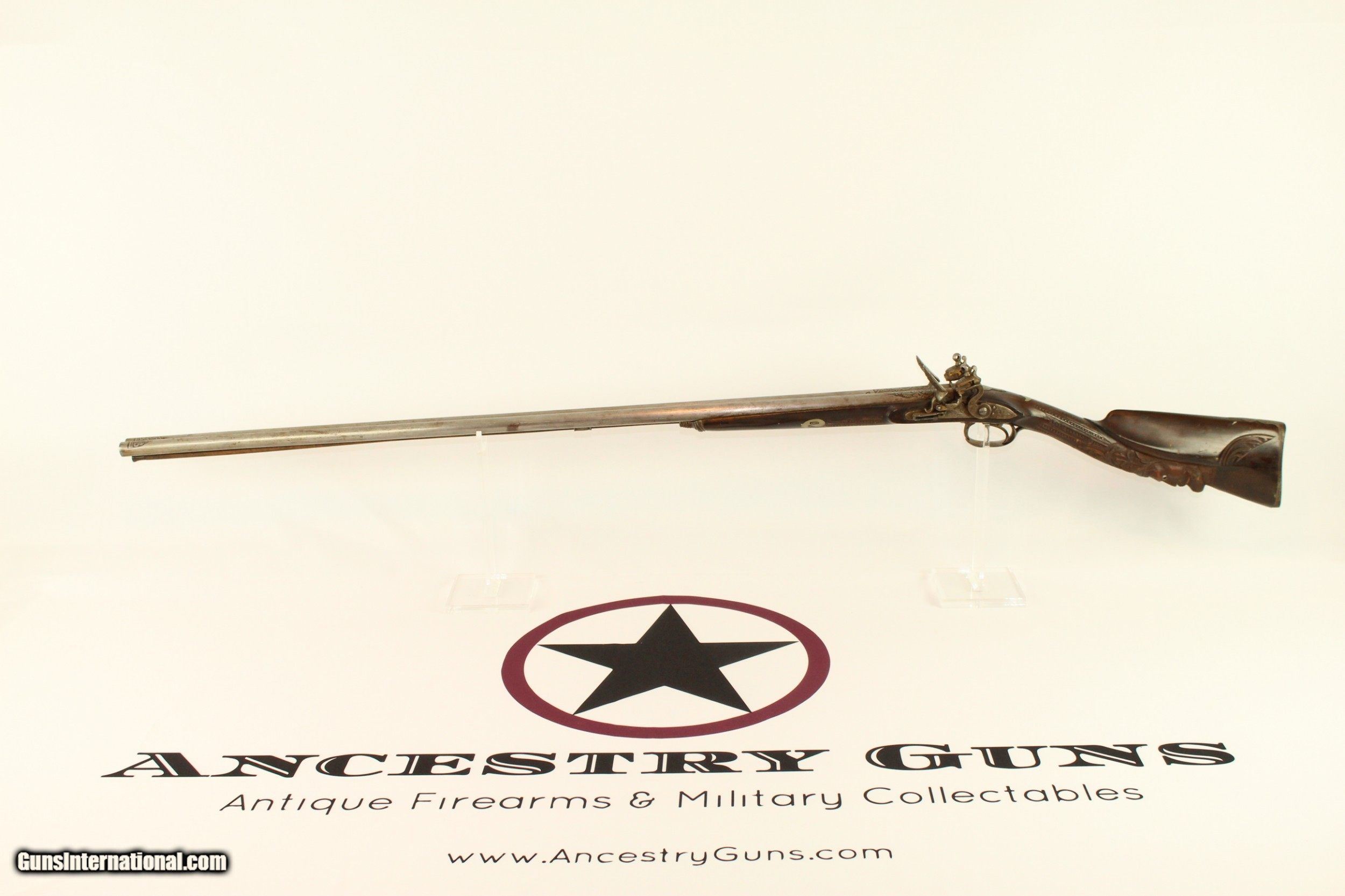 Description: 1700s Engraved Belgian FLINTLOCK Double Barrel Shotgun with Carved Stock ABSOLUTELY UNIQUE & EXQUISITE Here we offer the most unique 18th century flintlock double barrel shotgun that we have ever seen! The item is simply breathtaking and the photos (while impressive) simply cannot convey the impact that holding and displaying this firearm in person will create! This is a legitimate antique and not a reproduction. It is rare to find such an 18th century flintlock double-barrel under $10,000 and here we offer significantly under that mark with the intricate carving as a bonus. Barrel is 39 3/8 inches in length. Caliber: 20 gauge Marked with "crown/JJ" at the breech end of each barrel and with Belgian proofmarks on the bottom. Bore is in good condition and the firearm is in good working order with all parts functional Overall condition as seen in photos. Own this UTTERLY UNIQUE & EXQUSITE item for your collection. Very Fast. Very Safe. FREE SHIPPING WORLDWIDE. Delivered directly to your door by express mail! Guaranteed AUTHENTIC & Includes CERTIFICATE OF AUTHENTICITY. ancestryguns $7500 #10191 SOLD Antique: Yes |