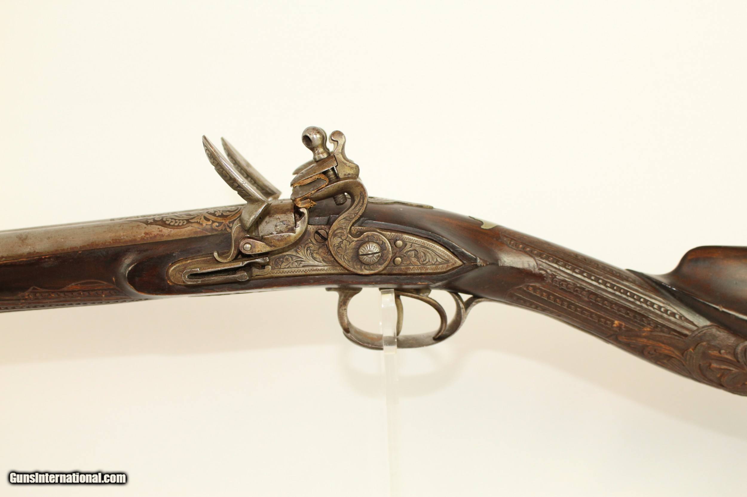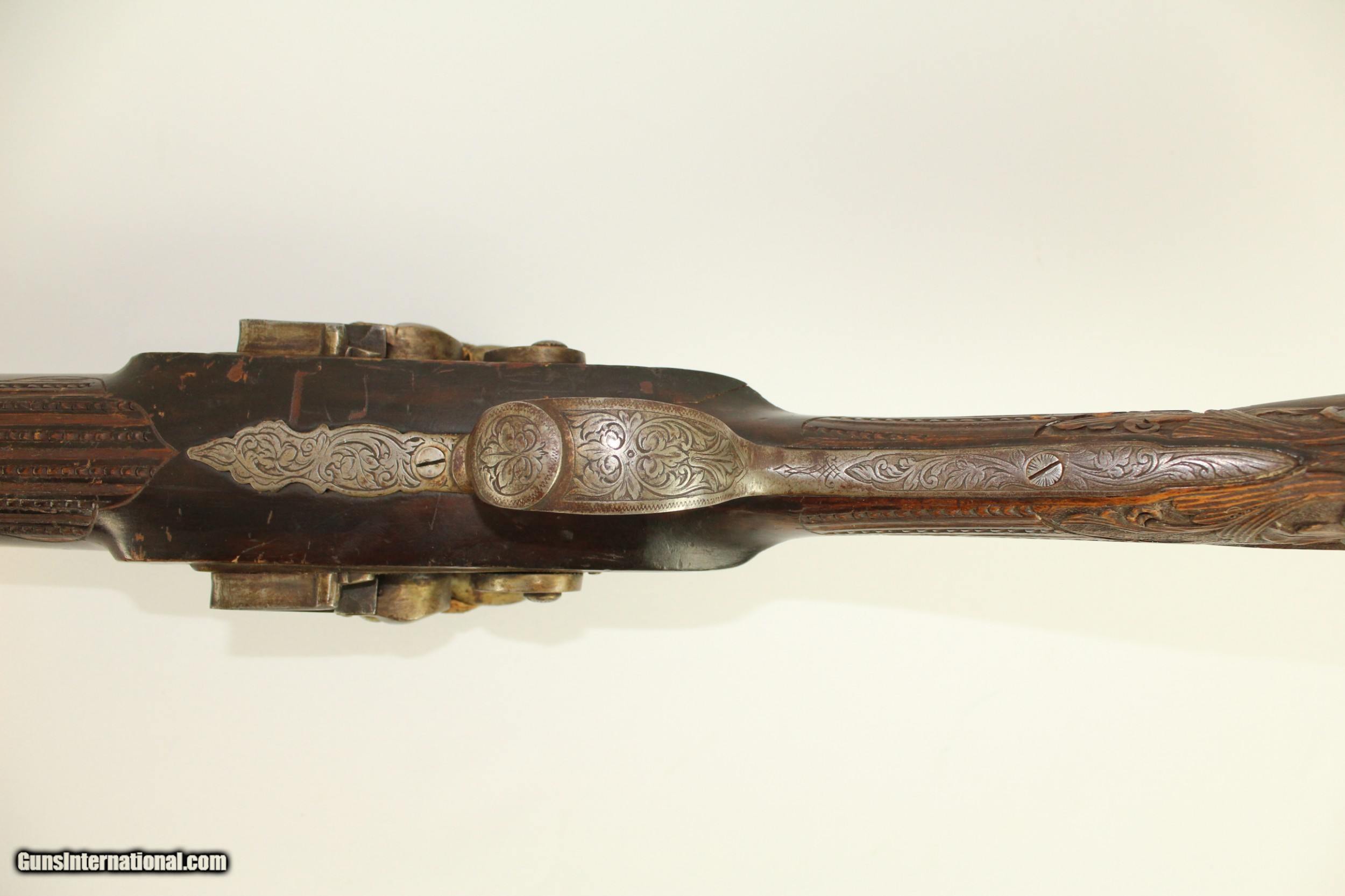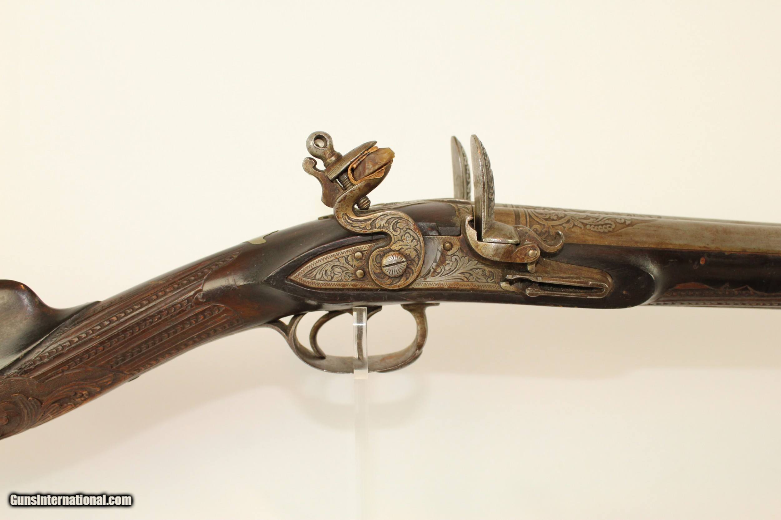 1700s Engraved Belgian FLINTLOCK Double Barrel Shotgun with Carved Stock ABSOLUTELY UNIQUE & EXQUISITE