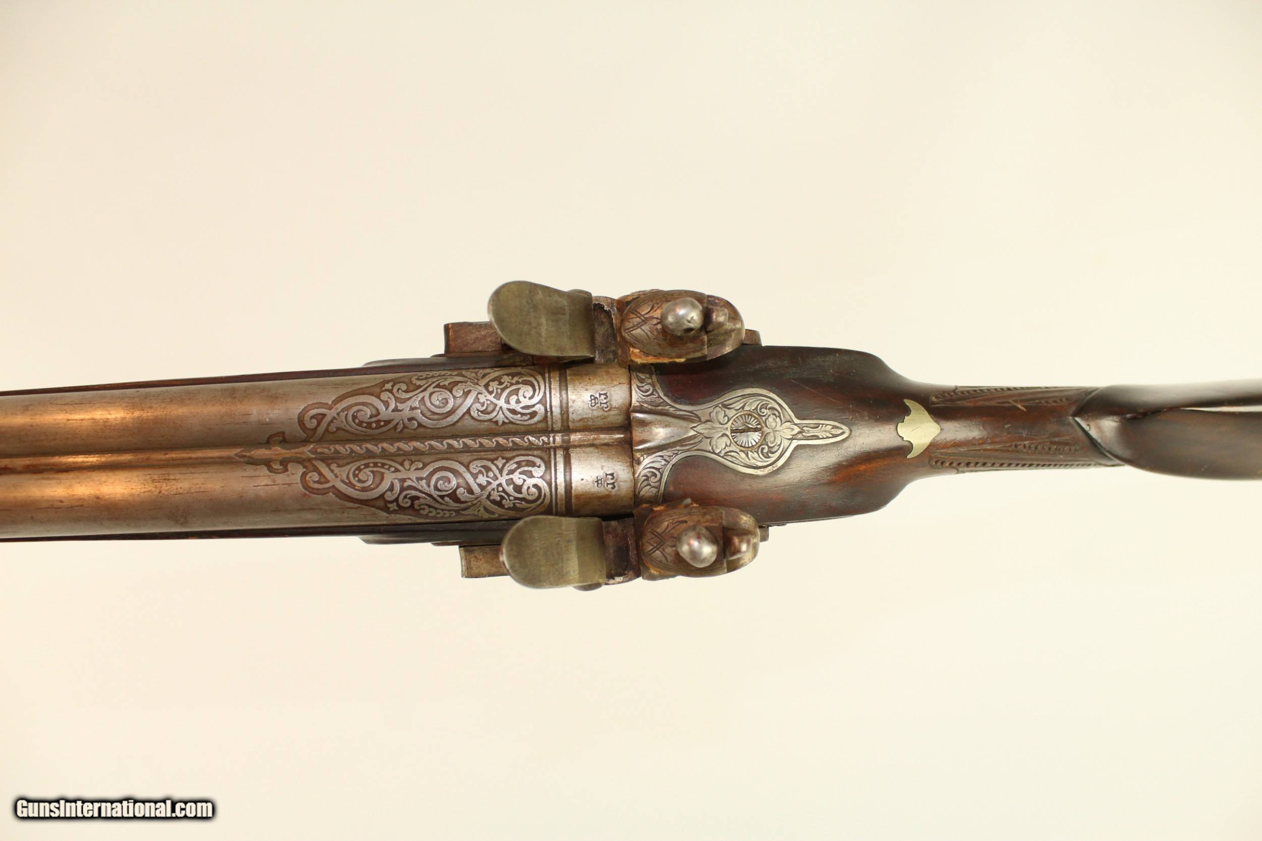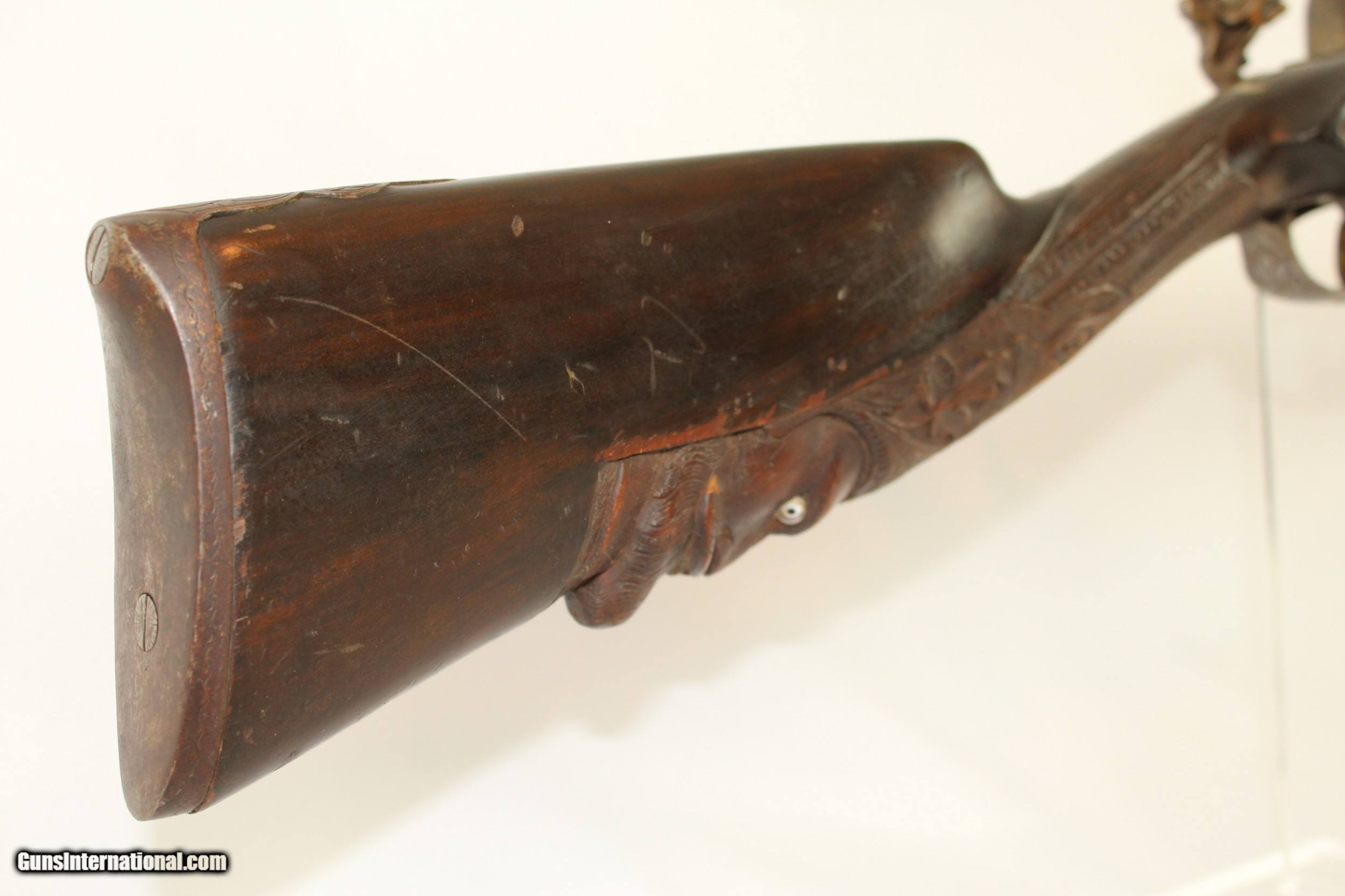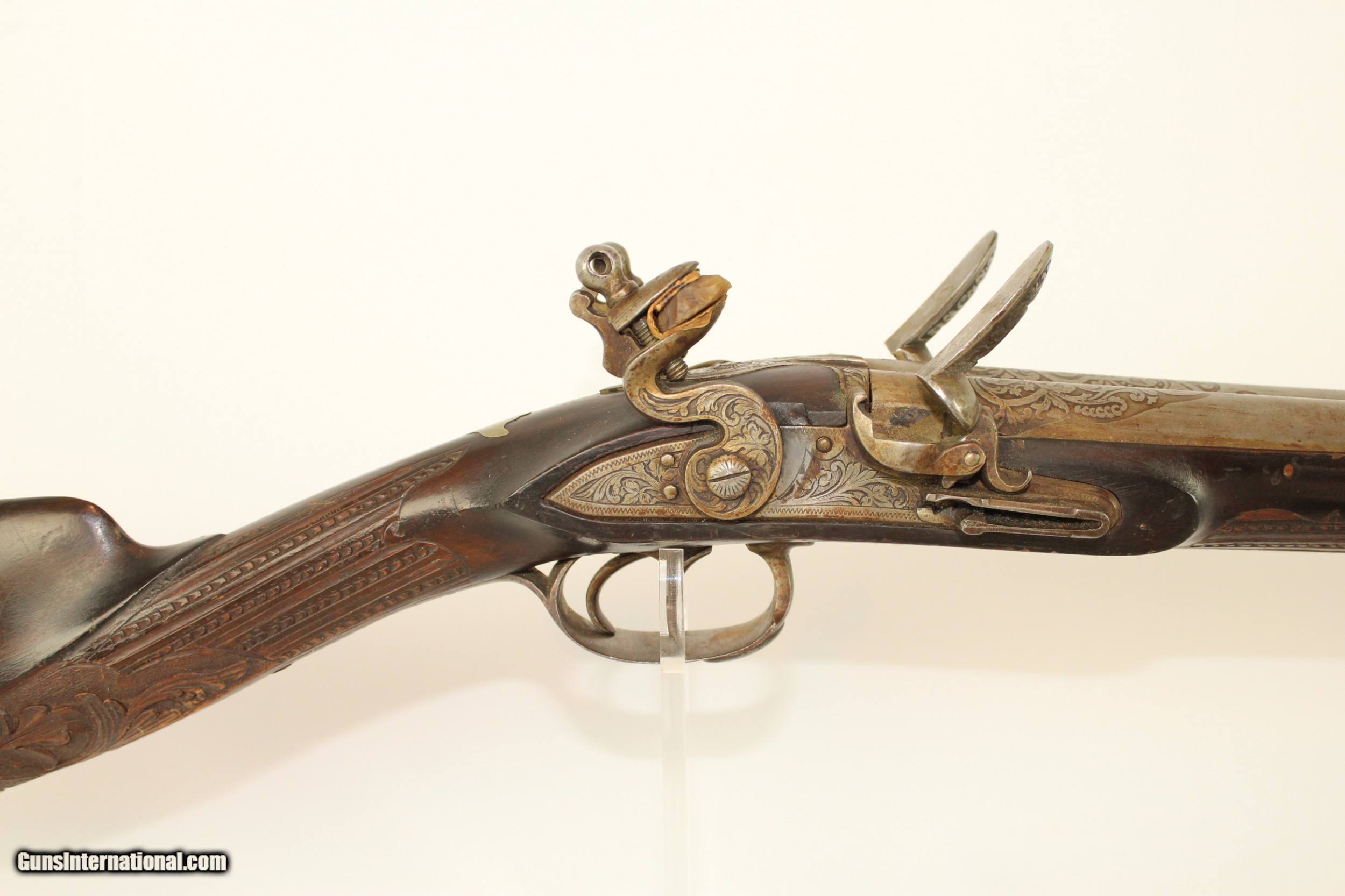 1700s Engraved Belgian FLINTLOCK Double Barrel Shotgun with Carved Stock ABSOLUTELY UNIQUE & EXQUISITE