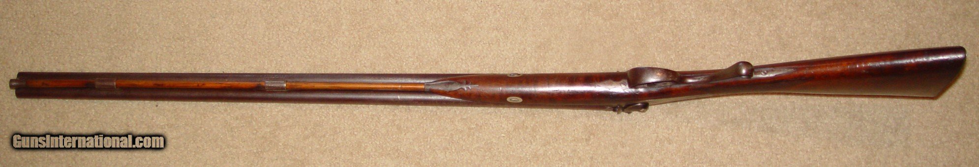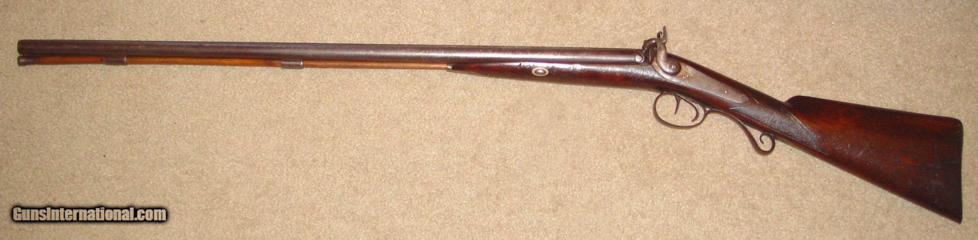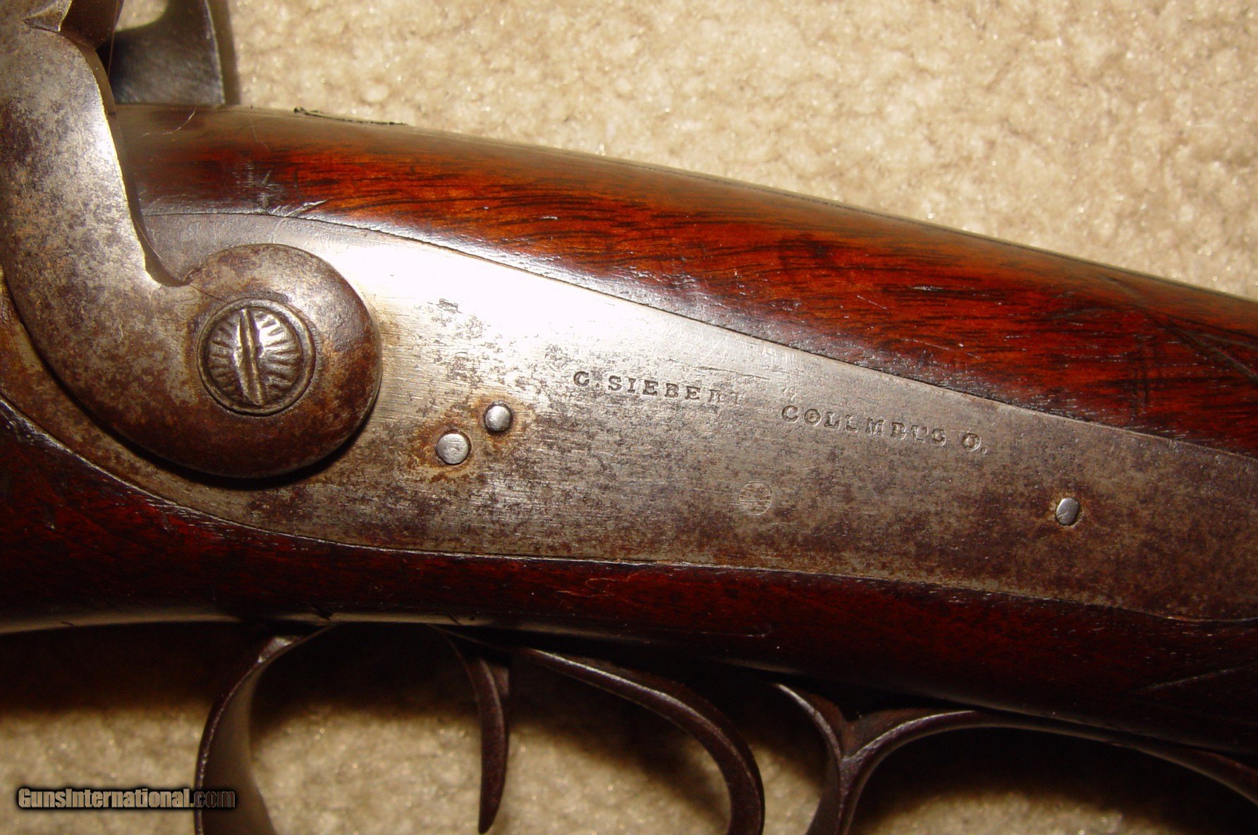Description: At offer is a circa 1840's C. Siebert of Columbus, Ohio 20 gauge, side by side double barrel percussion shotgun. This is a beautiful iron mounted piece that is in good working condition. The hammers don't match exactly and it appears that the right hammer is a period replacement. The top rib has just a bit of play in it that I did not even notice until taking the photos. It also retains the original ramrod. I do not accept trades but am happy to consider serious offers. Please look closely at all the photos as they are a very important part of the description and you are purchasing what is pictured. $50.00 SHIPPING IS TO THE LOWER 48 STATES AND NO PO BOXES. A SIGNATURE WILL BE REQUIRED. Please email me prior to with any questions or requests for additional photos prior to : daveatjohnxaol SOLD Antique: Yes Shotgun Gauge: 20 Gauge Manufacturer: C. Siebert Model: Side by Side Barrel Length: 31 Condition: Very Good Metal Condition: very good Wood Condition: very good Bore Condition: good Triggers: double Manufacture Date: 1840 - 1860 |