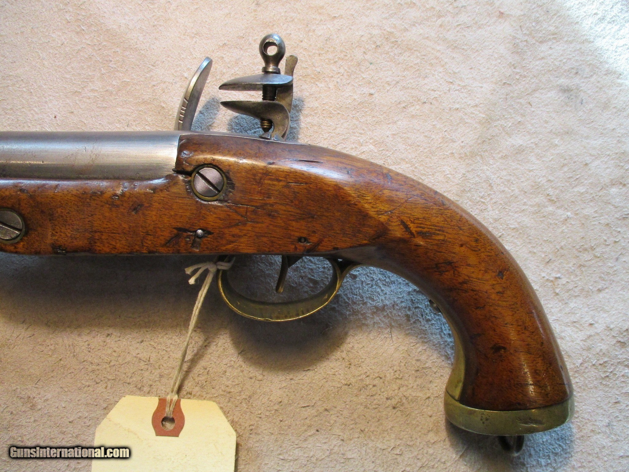 Description: Here you go! this does not find its way through my shop very often (If at all!). I think the gun is either Belgium or English, it has a crown over a DN on the lock plate. Barrel is about 9" long, and is about 16ga (11/16 diameter). Everything works, and the lock spring has a ton of pressure! The brass pistol grip cap is stamped "1815". I am no expert, but everything on the gun looks correct to me! Hammer falls with no problem when pulling the trigger! feel free to email me if you know more about this very interesting piece!!! Email me if you would like these pics sent to you, they will come through bigger and better than on the listing page here. Email me for any questions. I am a store front dealer, and I will close s if the gun sells locally. Once ahas reached my reserve, I will pull it from my shelves. Please check your local laws to confirm it is legal to own in your state! Buyer pays $25 shipping and insurance to you, in the lower 48. AK, HI is extra. Buyer has a 3 day unconditional return right, from the day UPS delivers to you. Buyer pays shipping both ways if the gun comes back. I will ship to California, but you need to confirm the gun is legal where you are, California or other. I will leave feedback as soon as the buyer leaves feedback on me. Email me with any questions, and good luck! SOLD Antique: Yes |