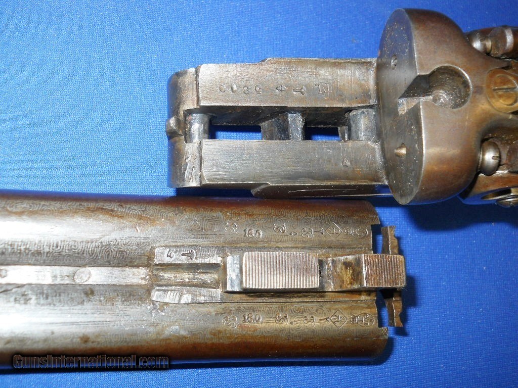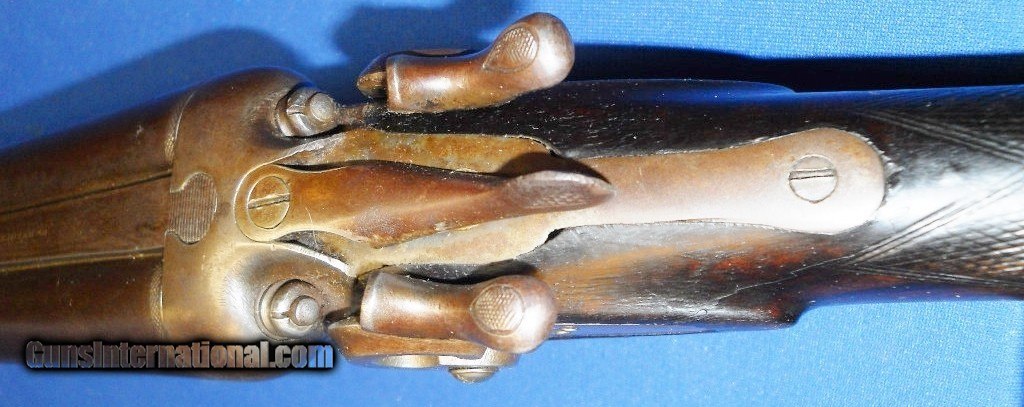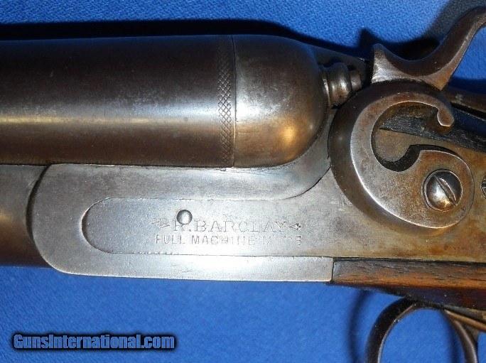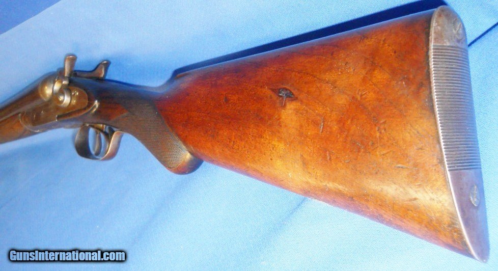 Description: ANTIQUE 1890s ERA 12 GAUGE DOUBLE SxS HAMMER SHOTGUN. MATCHING SERIAL NUMBERS. 30" BARRELS, BOTH CHOKED IMP-MOD, ORIGINAL FINISH OVER 95%, FEW STAINS & LIGHT WEAR MARKED "BELGIUM DAMACUS FINISH" WITH NUMEROUS PROOF MARKS. REALLY GOOD BORES, BRIGHT, MINIMAL FROSTING or MINOR PITTING & TIGHT RIBS. FRAME & LOCKPLATES MARKED "R. BARCLAY, FULL MACHINE MADE" STILL SHOW SOME ORIGINAL AGED CASE COLORS BLENDING WITH BROWN PATINA. WALNUT STOCKS RATE VERY GOOD, MOST OF THE ORIGINAL FINISH HAVING MINIMAL HANDLING MARKS or WEAR. LOP 14 1/4" OVER ORIG. METAL BUTTPLATE. LOCKS ARE CRISP & ROBUST WITH REBOUNDING HAMMERS AND SNUG BARREL FRAME LOCK-UP. MUCH BETTER IN HAND THAN PICS SHOW. SHOULD MAKE A GOOD USEABLE BLACK POWDER SxS WITH QUALIFIED APPROVAL, AS PICTURED. SHIPS DIRECT TO U.S. BUYER ANYWHERE THAT'S OK $45.00 PRIORITY INSURED EAST OF THE BIG RIVER. $50.00 BEYOND. SOLD Antique: Yes |