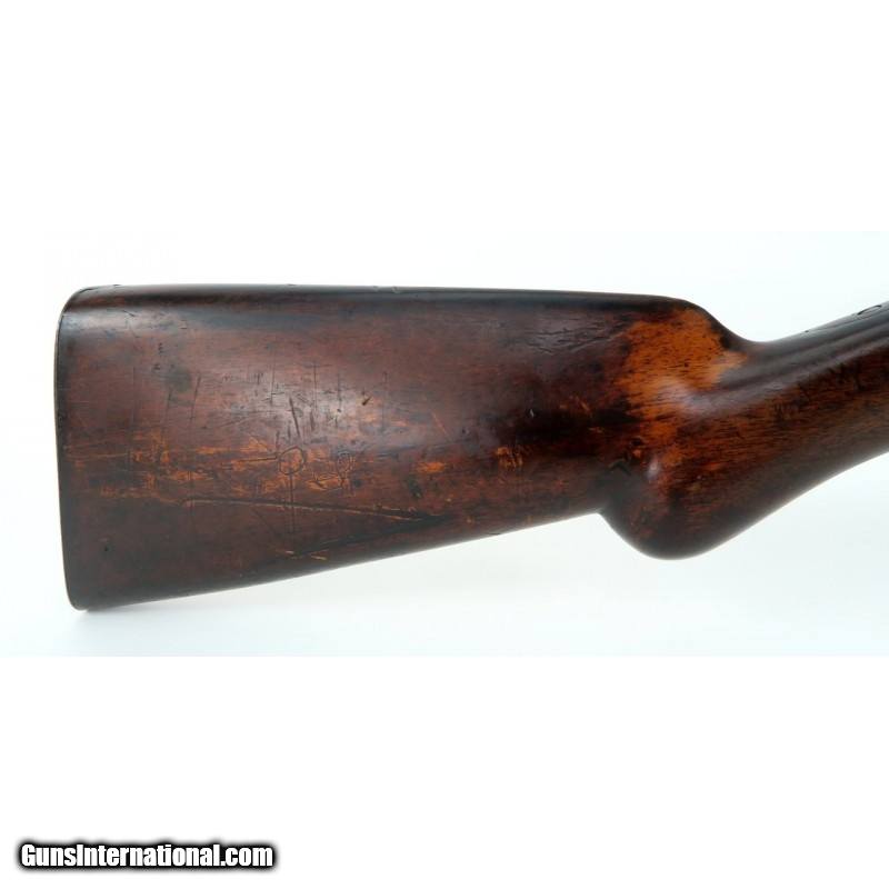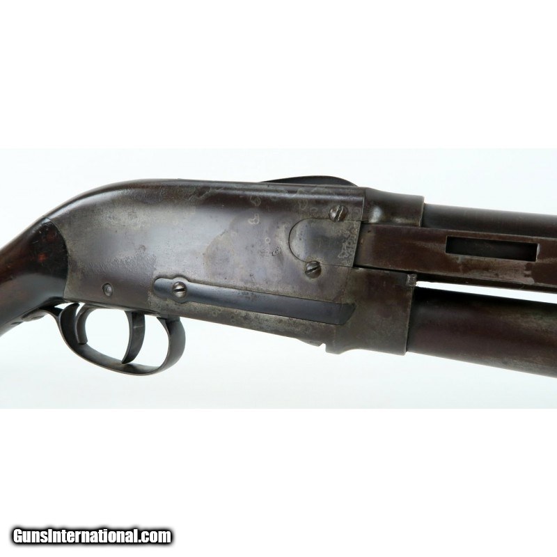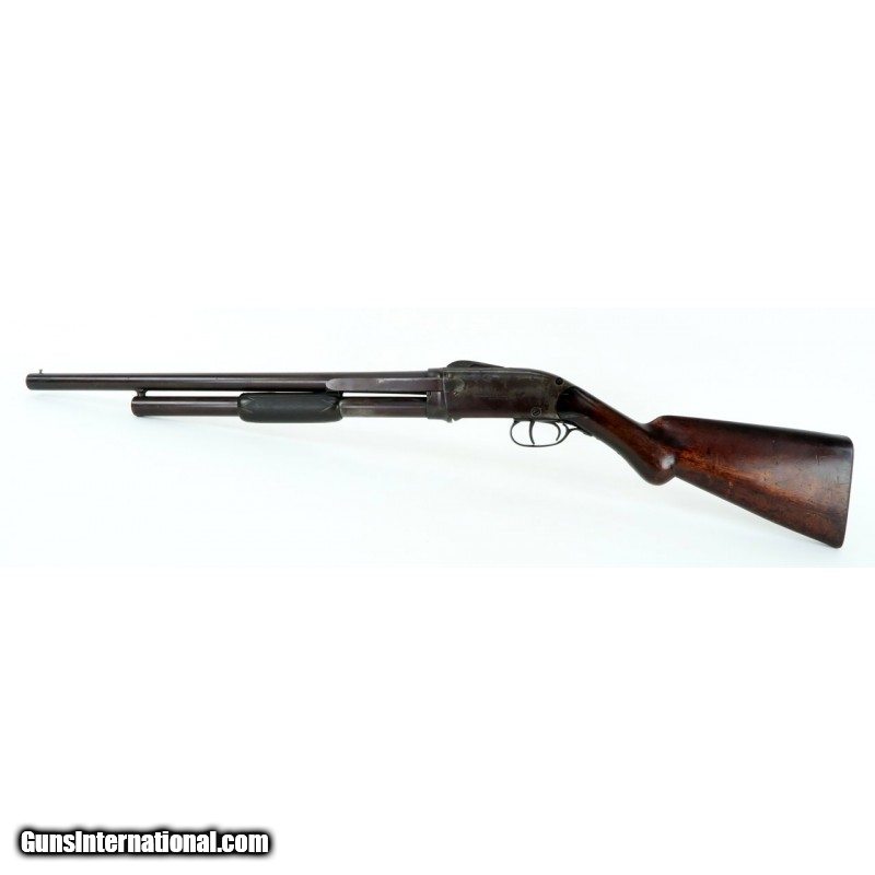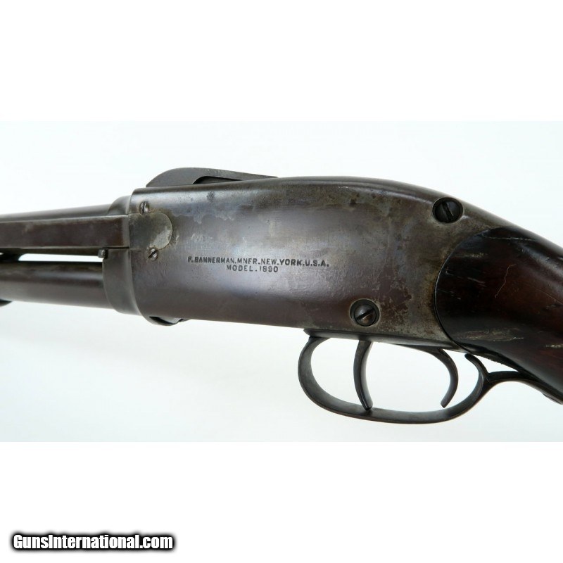 Description: "Spencer 1890 12 Gauge shotgun. Pump Shotgun made by Bannerman. Has 21" barrel. The metal has brown patina, the wood shows wear but is sound with no major damage. The forend pump has a repaired crack. Bore is very good. SOLD Antique: Yes |