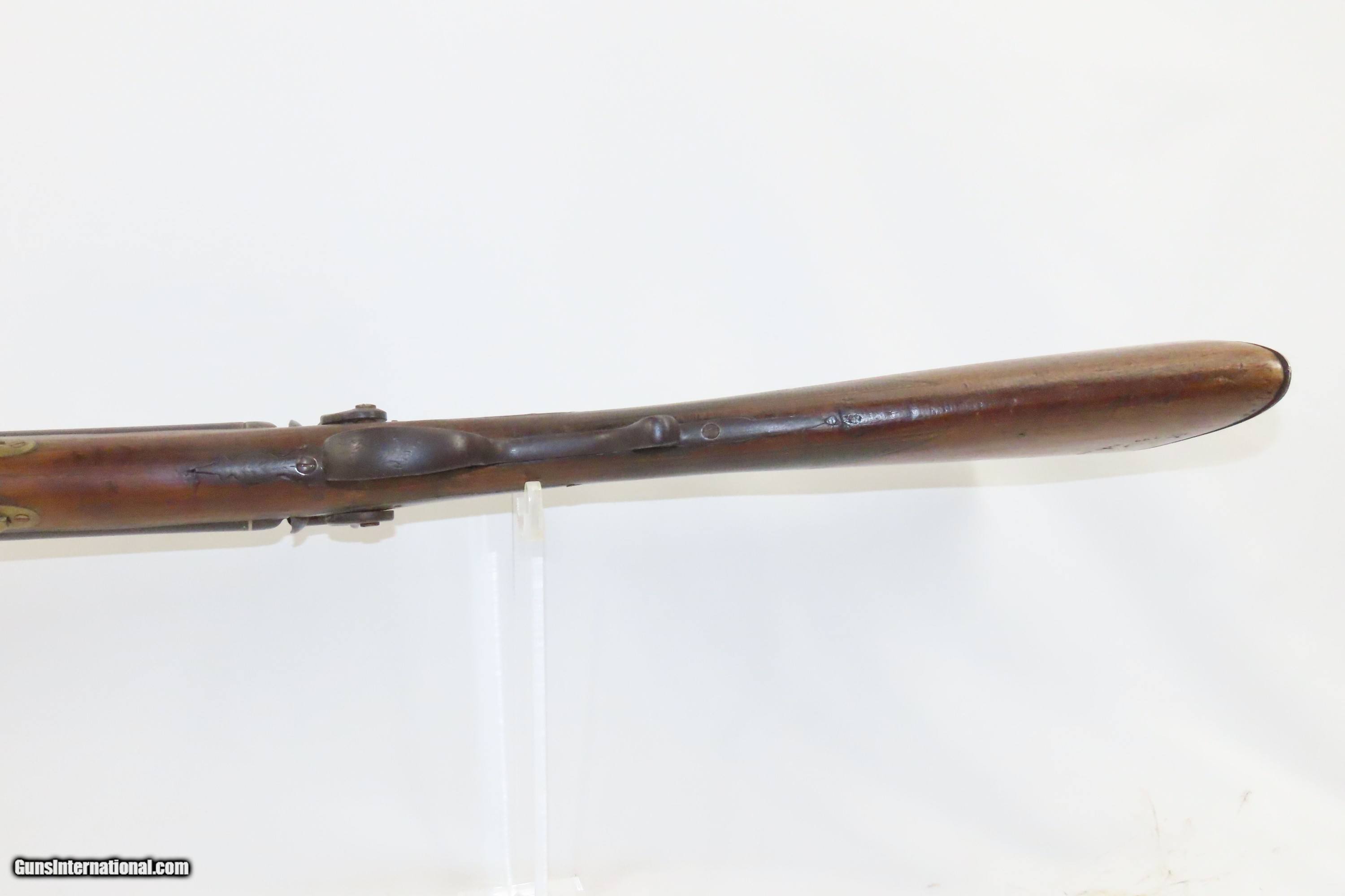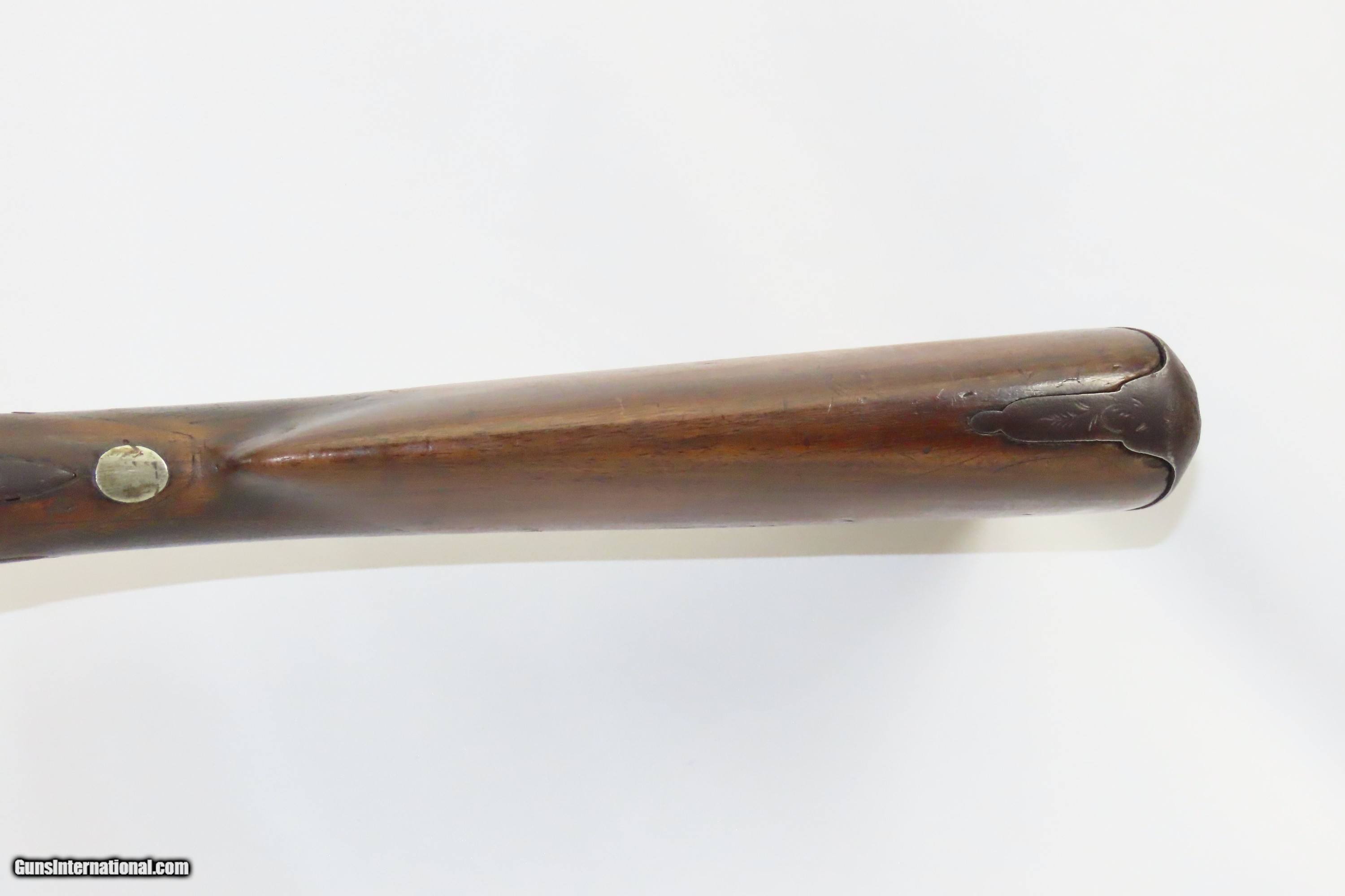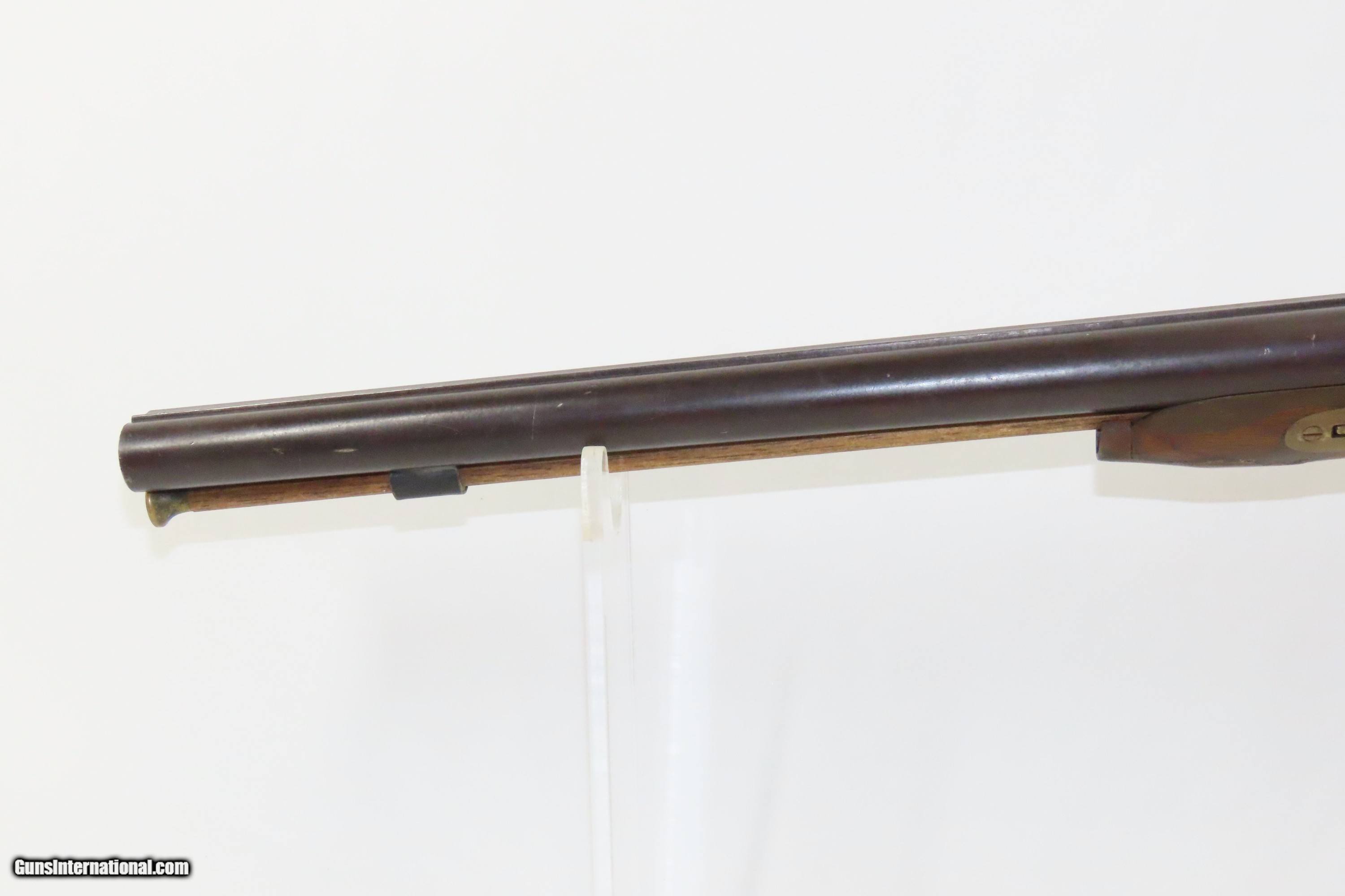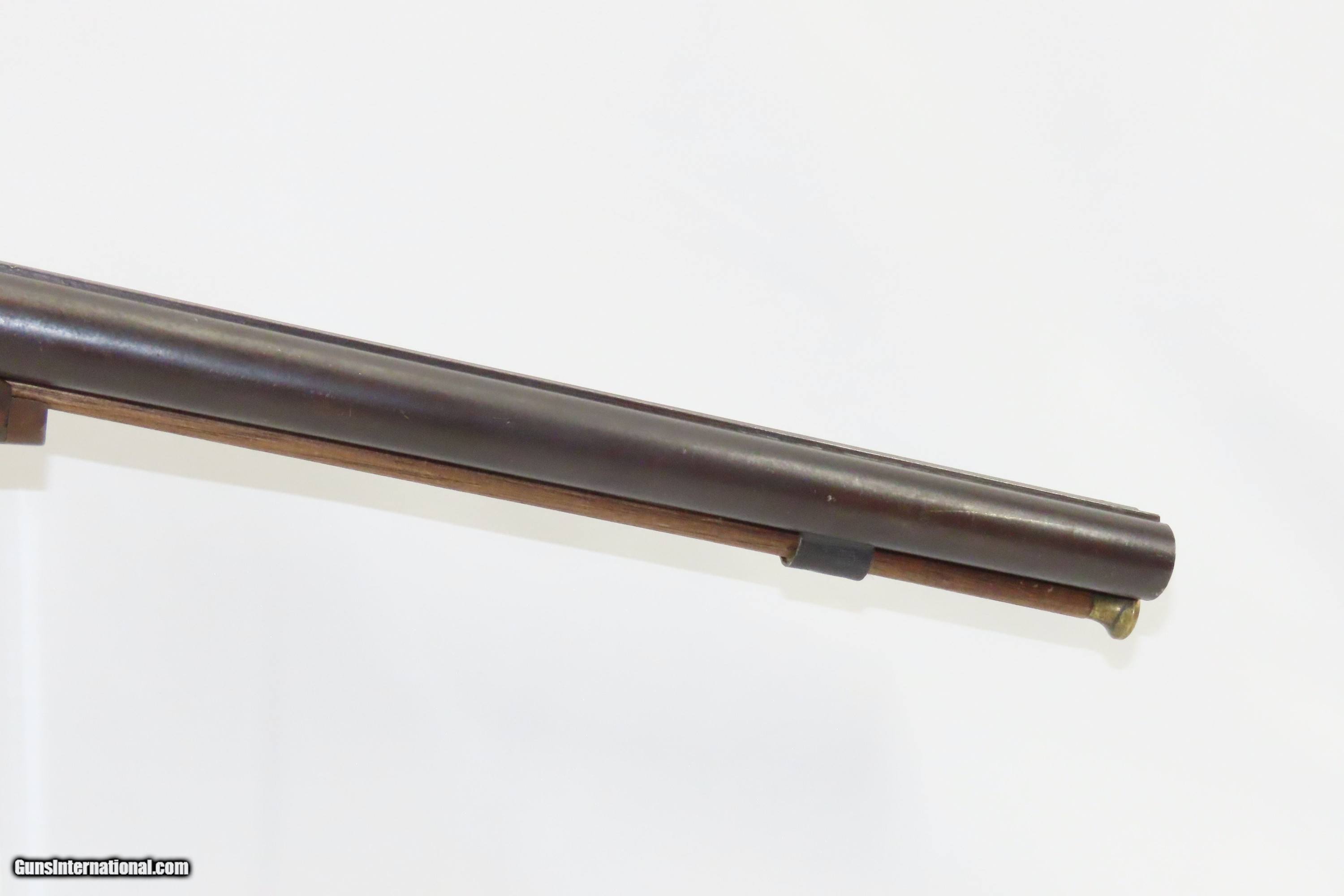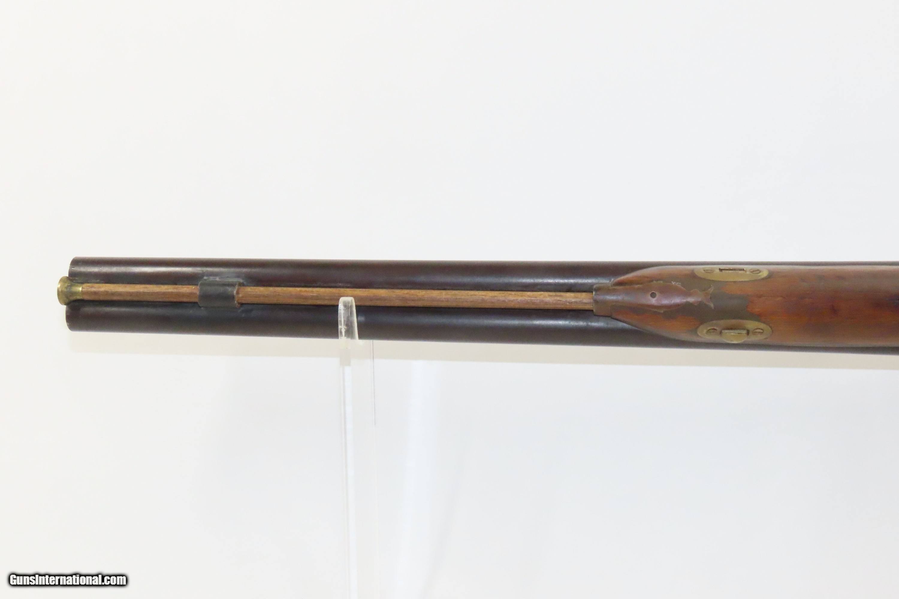 Description: “STELLA’S SILVER STAR SALOON” Antique BELGIAN SHOTGUN 16 Ga Double Barrel Bar Style Percussion Shotgun c1860s Here we present an antique Belgian Double Barrel Side by Side Percussion Shotgun, marked “STELLA’S SILVER STAR SALOON”, manufactured circa the 1860s in Liege, Belgium. During this era, there were many English and Belgian gunmakers who were capitalizing on the eager markets in the United States. This 16 gauge scattergun is marked “Stella’s Silver Star Saloon” on the buttstock. Shotguns, shortened ones especially, were used to keep the peace in many a saloon back in the Wild West days. When not being used to corral drunk cowboys, it would have been a staple of most homesteads hanging over the mantle during the tumultuous times of the mid-1800s or riding “shotgun” on coaches by couriers. The overall condition is fair. Dark patina throughout. The actions are strong. The bores are dim and smooth. Barrels shortened. The stock has been extensively repaired with epoxy in the forend, around the locks, and repaired at the wrist. Own the original! This is a legitimate antique and not a reproduction. Barrel: 18-1/2 inches. Caliber: 16 Gauge Overall condition as seen in photos. Very Fast. Very Safe. FREE SHIPPING WORLDWIDE. Delivered directly to your door by express mail! ancestryguns $1400 #234083 SOLD Antique: Yes |