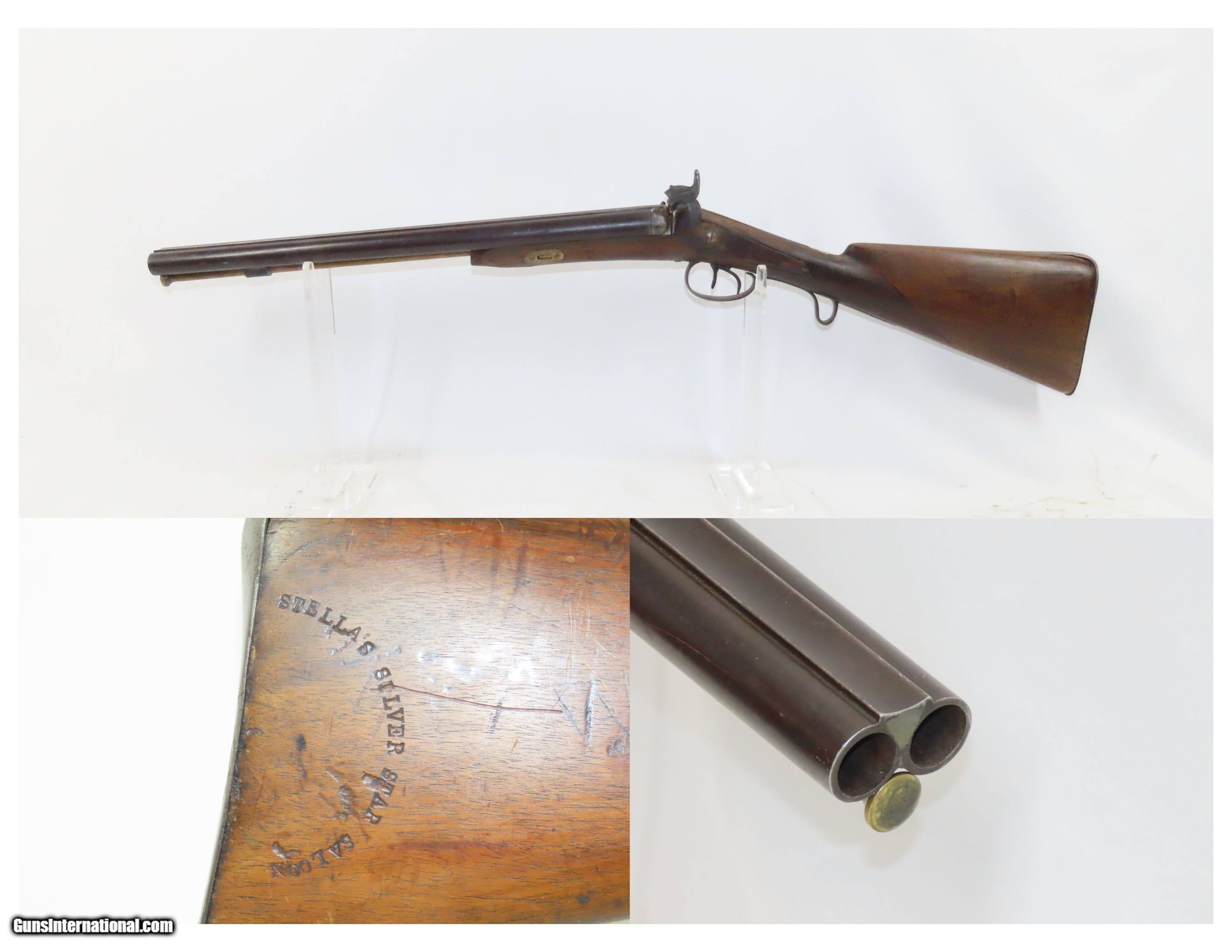 “STELLA’S SILVER STAR SALOON” Antique BELGIAN SHOTGUN 16 Ga Double Barrel Bar Style Percussion Shotgun c1860s