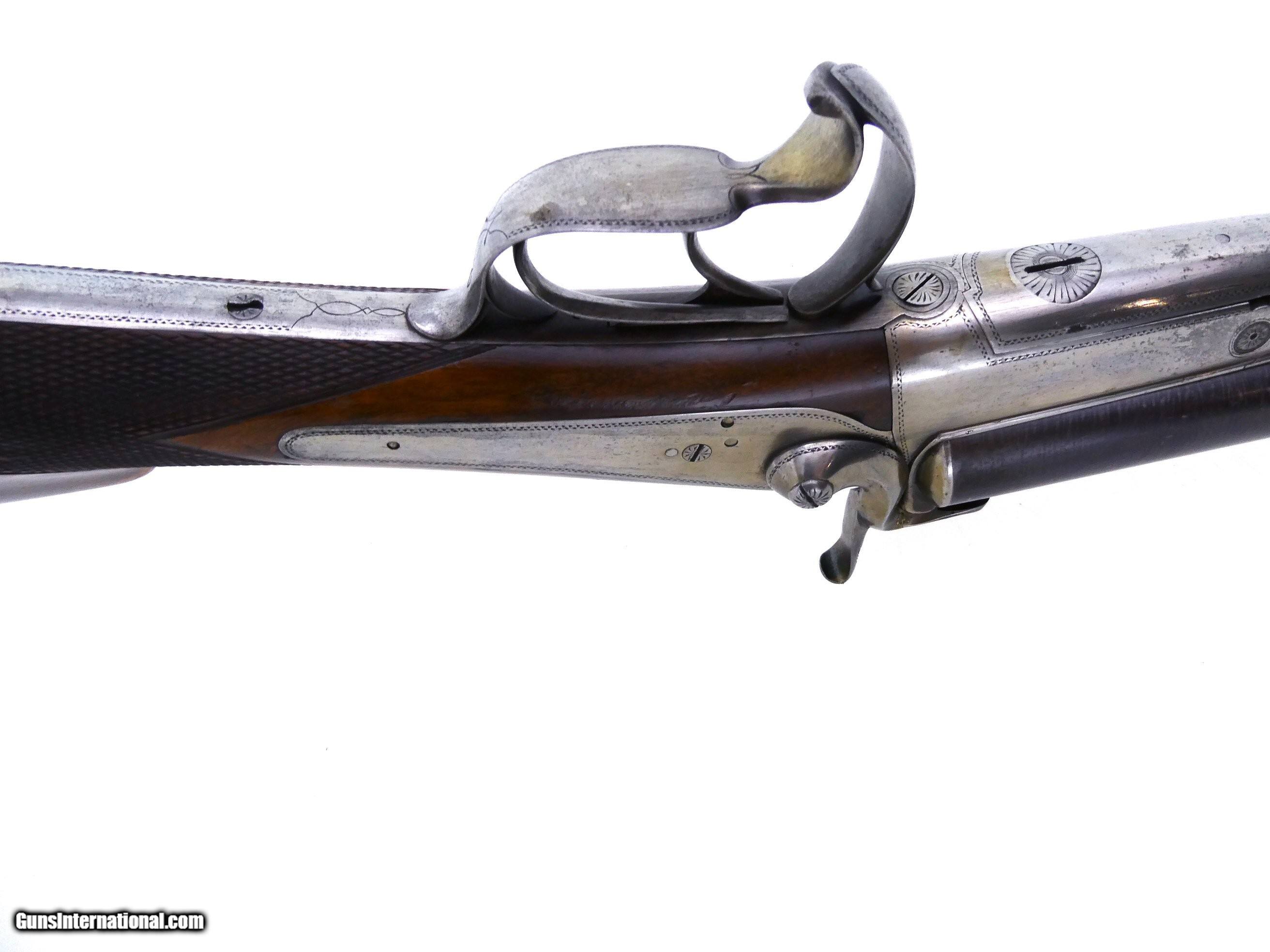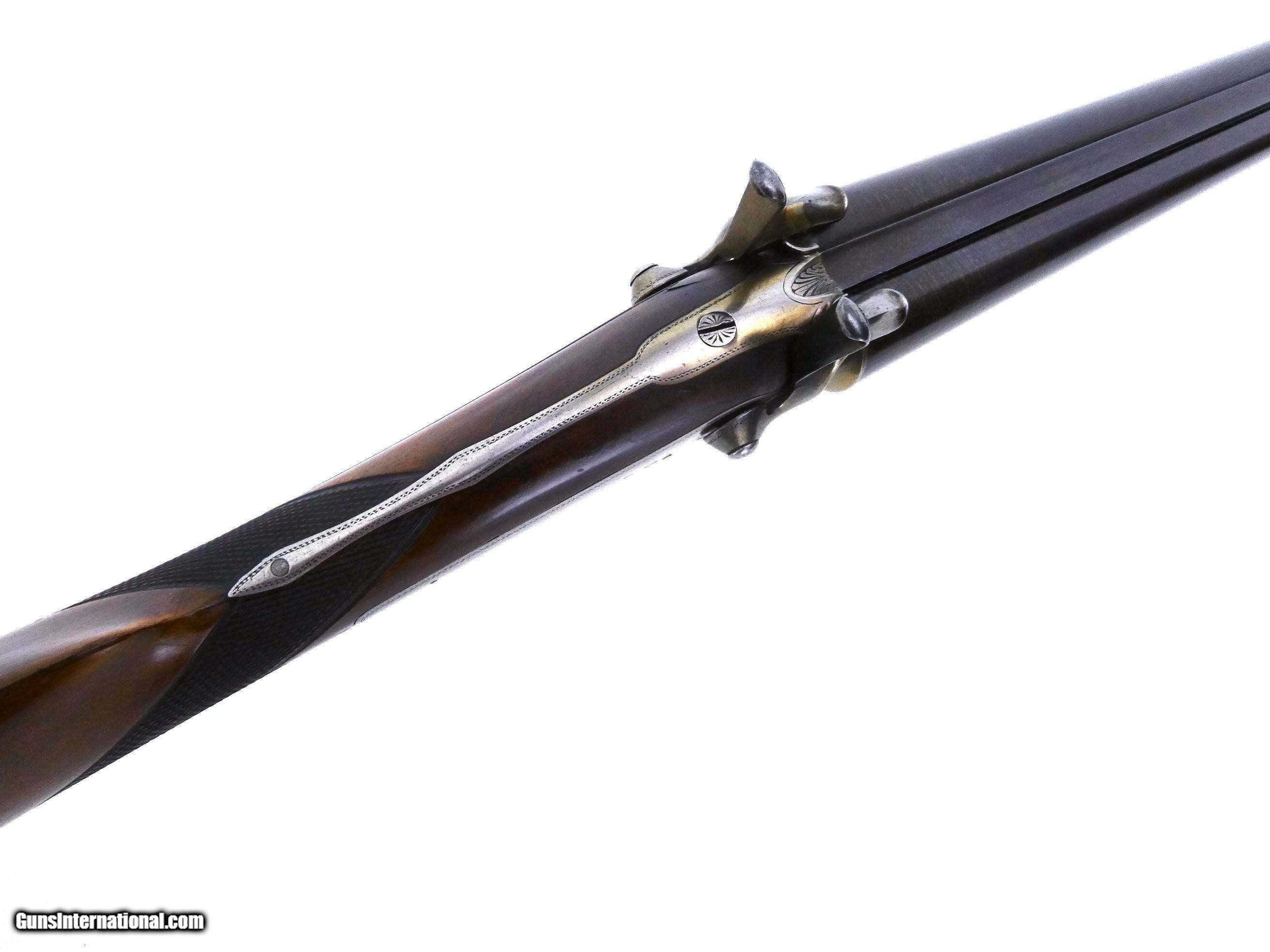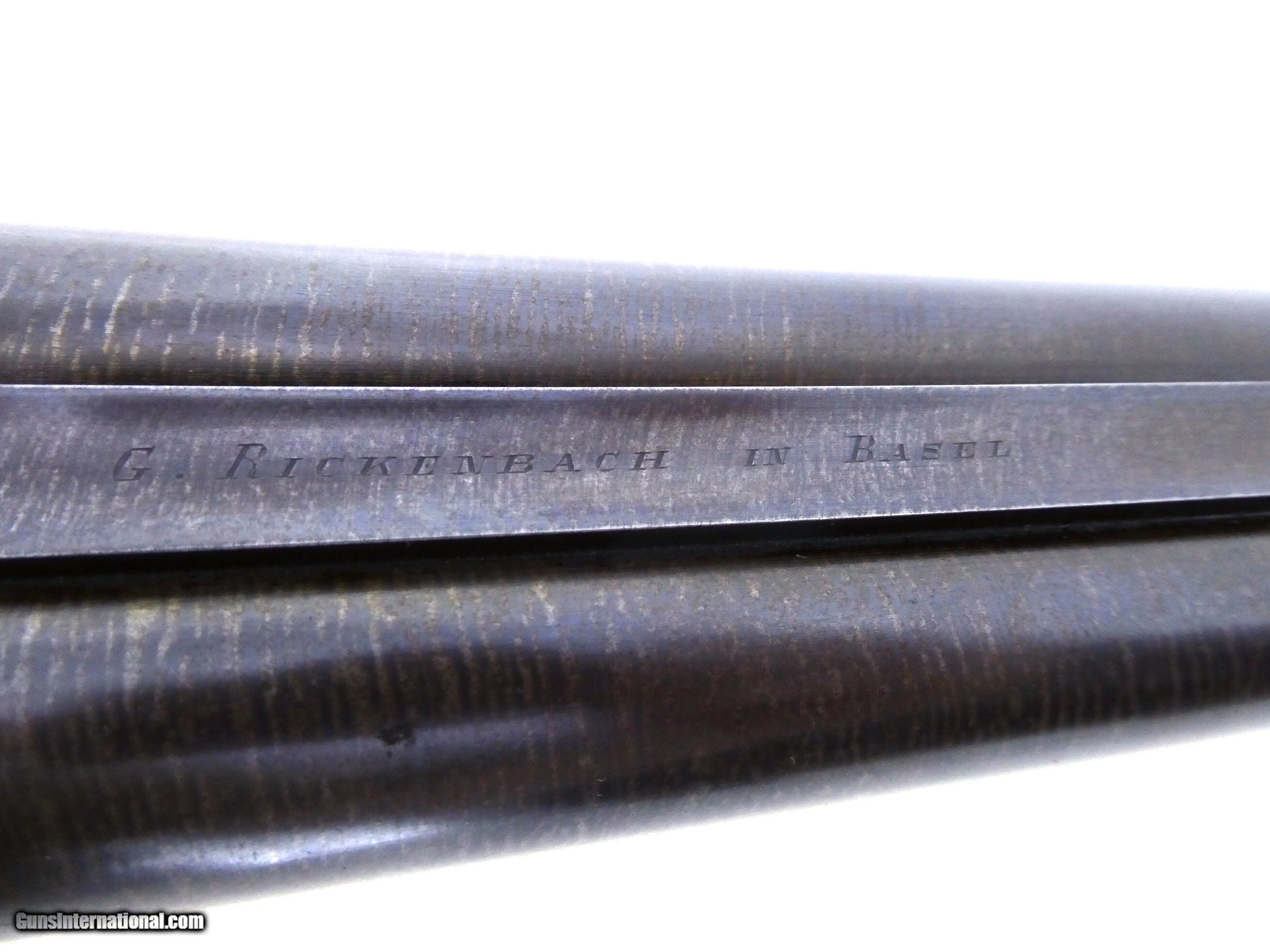 1870's Gottlieb Rickenbach 16GA Lefaucheux Damascus SxS Shotgun
