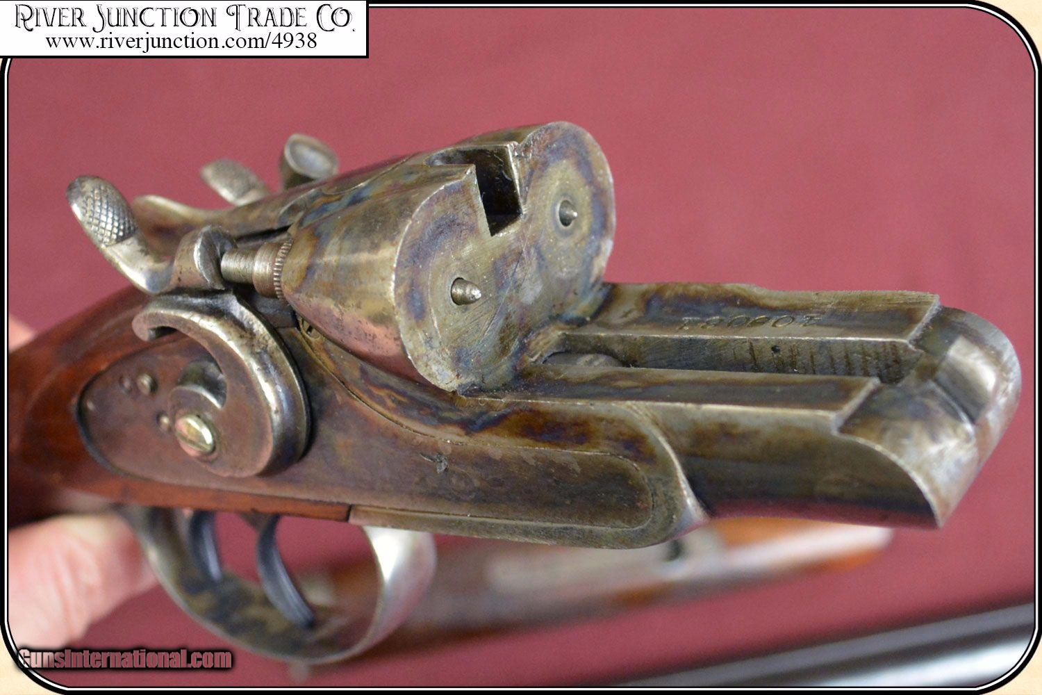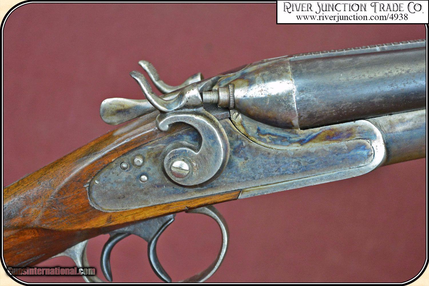 Description: Coach Gun / Saw off shot gun / Street Howitzer / Scatter Gun. The Coach Gun received its many moniker on the stagecoaches and streets of the Wild West. Stagecoach companies quickly implemented the use of guards to ride along side the driver carrying a weapon that allowed for some leeway in accuracy as they bounced along the y trails. Cut-down versions of the Stagecoach Shotgun were also popular among Marshals and Sheriffs for their mobility and lenient accuracy at close quarters. Thumb the locking lever and you can break open the gun to reveal the lead-spitting barrels of this close-quarters defense weapon. These barrels are bright and shinny a rarity, in these old double hammer guns. Close and lock the barrels and cock both hammers. Finger the double triggers one at a time and the hammers will fall. On the plains of the late 19th century there was nothing else like the sound of a shotgun hammer. The feel and action of this legendary Old West tool will transport you back to the Dakota Territory, when your trusty shotgun was your last and best line of defense. Features Overall Length: 35", barrels 18 1/2 inches. Lock up is very tight and secure. Between the original dark blue barrels there runs a matt finished rib. The bores are bright and clean with almost no pitting. Gutta Percha butt plate on a stock with no cracks or chips showing most all of its original finish. Marked "CRESCENT FIRE ARMS CO. Norwich Conn." on the left lock. Both locks show most all of their original case hardening colors, and the barrels showing very strong blue. This Coach Gun is in remarkably good shape. One of the better ones we have seen and in the rare and unusual 20 gauge. This is an ANTIQUE and can be shipped directly to you. Adult signature required. Sold as an Antique ~ no guarantees, warranties, or liabilities for any actual usage. If any firearms are to be used for shooting purposes, a qualified gunsmith should inspect them first. Adult signature required upon delivery. Payment Cash, postal money order, cashiers check, personal & business checks. Can be ordered with a credit card or paypal at wxx.riverjunction,cxx just type in the number 4938 in the search box. Shipping Long Guns - $35.00 in the continental US SOLD |