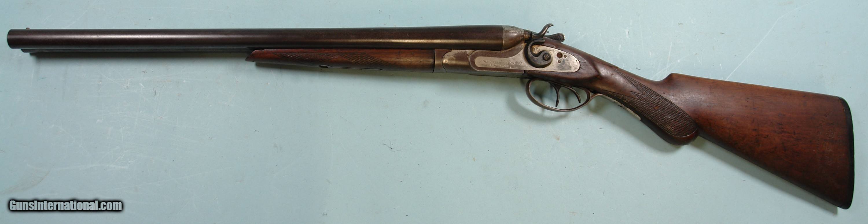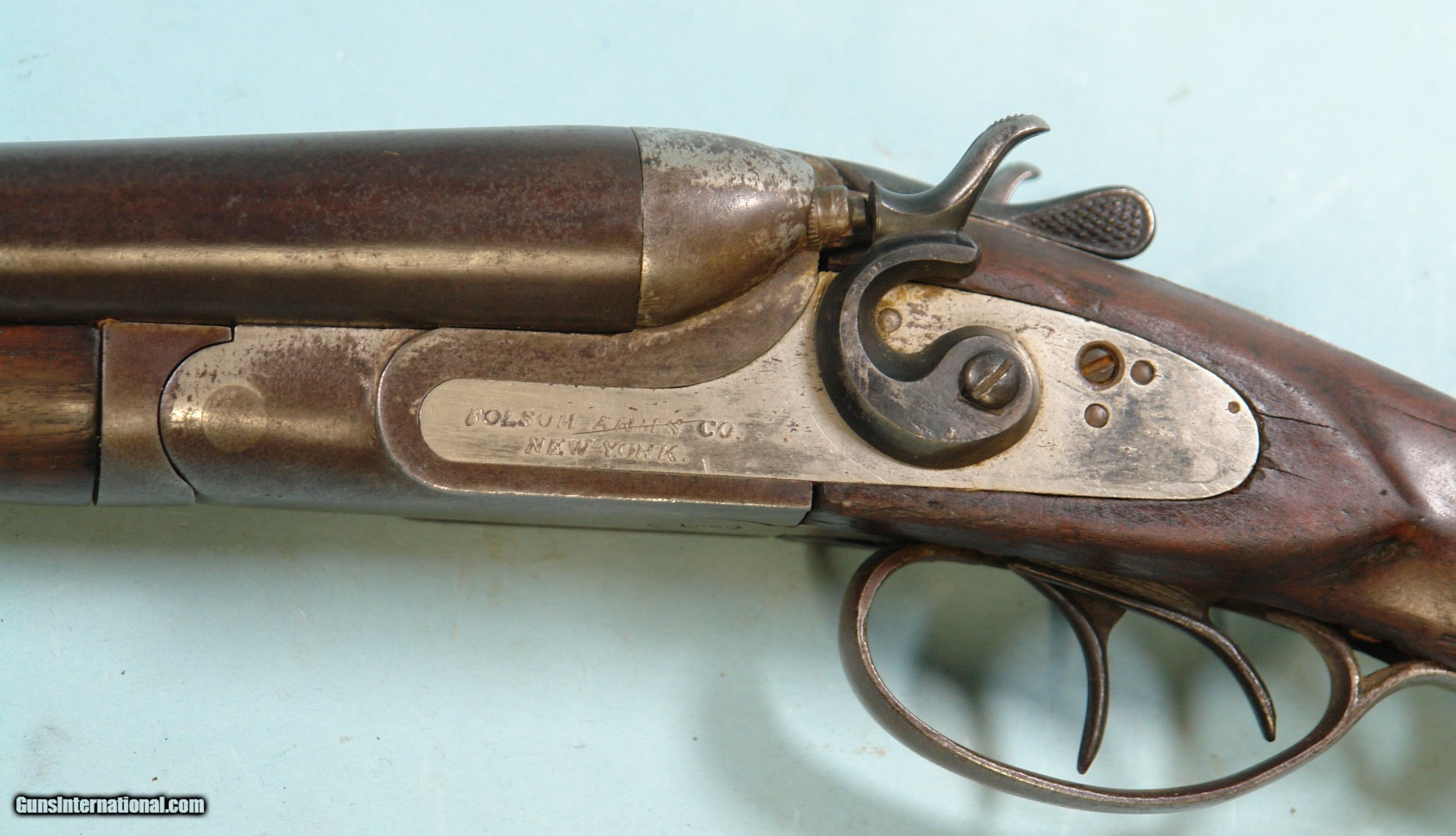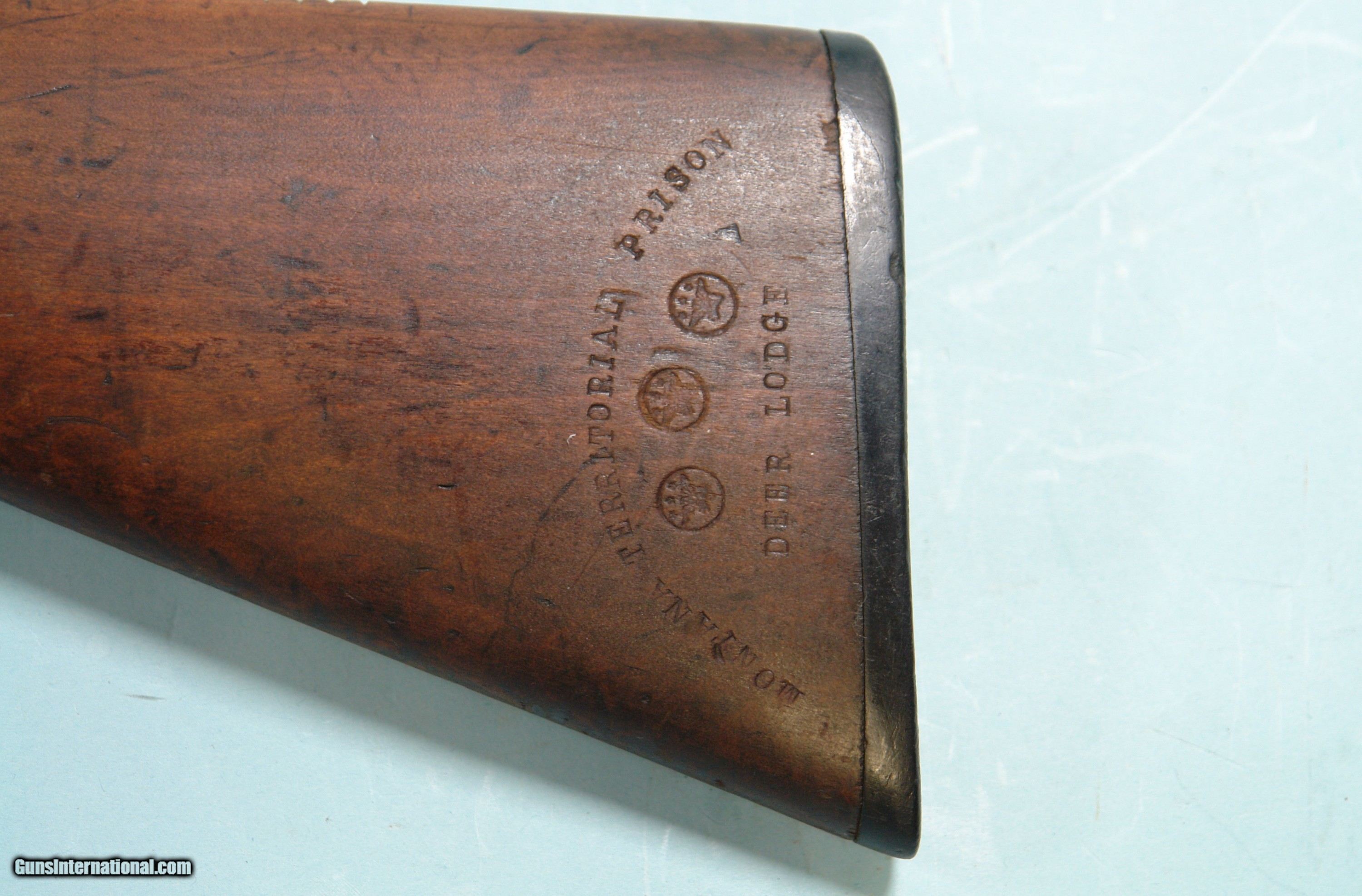 Description: 32015-FOLSOM ARMS CO. 12 GAUGE HAMMER COACH GUN MARKED MONTANA TERRITORIAL PRISON DEER LODGE CIRCA 1880’S-90’S. 19 ½” fluid steel barrels. Maker stamp on left lock plate. Shows lots of wear and nice old patina mixed with blue finish on barrels and nickel plating on locks and frame. Wood with moderate wear and old small repaired hairline crack at upper tang. Very colorful and old original. Working order and very good bores. Stock stamped on left side of butt “MONTANA TERRITORIAL PRISON/DEER LODGE”. SOLD Antique: Yes Shotgun Gauge: 12 Gauge |