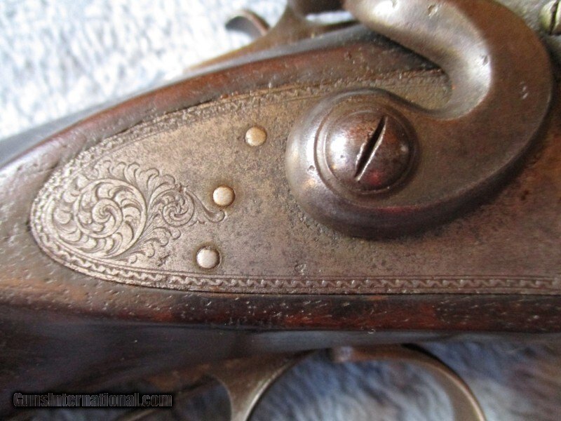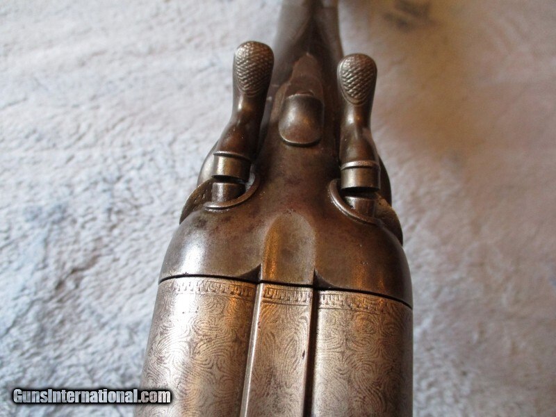 Description: 32" Barrels. Exposed Hammers. Damascus. Serial #2633. A fair amount of engraving. There have been a few of these on Gun broke her, all much higher than my price, and none as nice as mine. Bores were video-scope inspected by a trustworthy gunsmith I use, and he says the barrels are good to go, just stick with the black powder rounds it was built for. I make my own black powder rounds and the gun works fine. I've only put 10 rounds through it but it hasn't given me any operational issues. There is a fraction of side-rock to the closed action, but that is common to the old side swing guns and it locks positively otherwise. Outer metal has grey to brown patina. Some wear on the engraving on the trigger guard. Bores are shiny and in good shape but have some expected light pitting patches here and there throughout the length, as is typical to firearms pushing 140 years old. The stain has darkened and the wood has handling marks, but no gouges, and no cracks except one short one (3/4") that is in the far pointed end of the forehand wood, which isn't a spot that is subject to shock from recoil so it must be a natural dry crack and so should be a non-issue. I will provide lots of hi-res photos and a video clip of the firearm in operation to any SERIOUS buyer. Terms are as per this Description section and our correspondence. Cash only for Local sale. For local sale I will only sell to anyone who is verified to purchase a firearm so I would need to see either a FFL, or Neb. Firearm Purchase Certificate, and ID, just like it's done at most auuctions/shows. Neb. Concealed Carry Permit works as well. If you are from out of state but can make the drive, there is an FFL in Lincoln that will do the transfer for 25 bucks. I will ship to an FFL. Since I myself do not have an FFL, I will need to ship to an FFL to any out of state buyer regardless that this firearm is possibly exempt due to being antique. If you do not have your own FFL you must contact your FFL provider and ensure that they will accept firearms that come from a private individual like me that does not have an FFL. I can provide them a copy of my ID. I will also need contact info for your receiving FFL so that I can arrange shipping with them. Payment for the firearm and shipping combined is by Bank Cashier's Check ONLY. Shipping is to only the lower 48 and due to length and weight of this gun is 75 dollars. Shotgun Gauge: 10 Gauge Butt Pad: Metal Price: $1,075.00 Shipping: $75.00 Contact Seller |