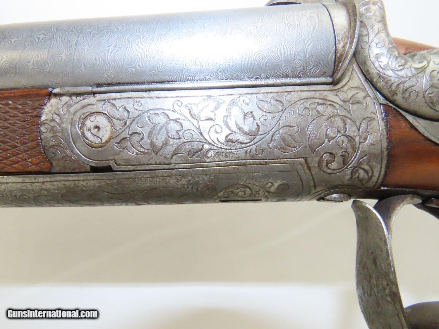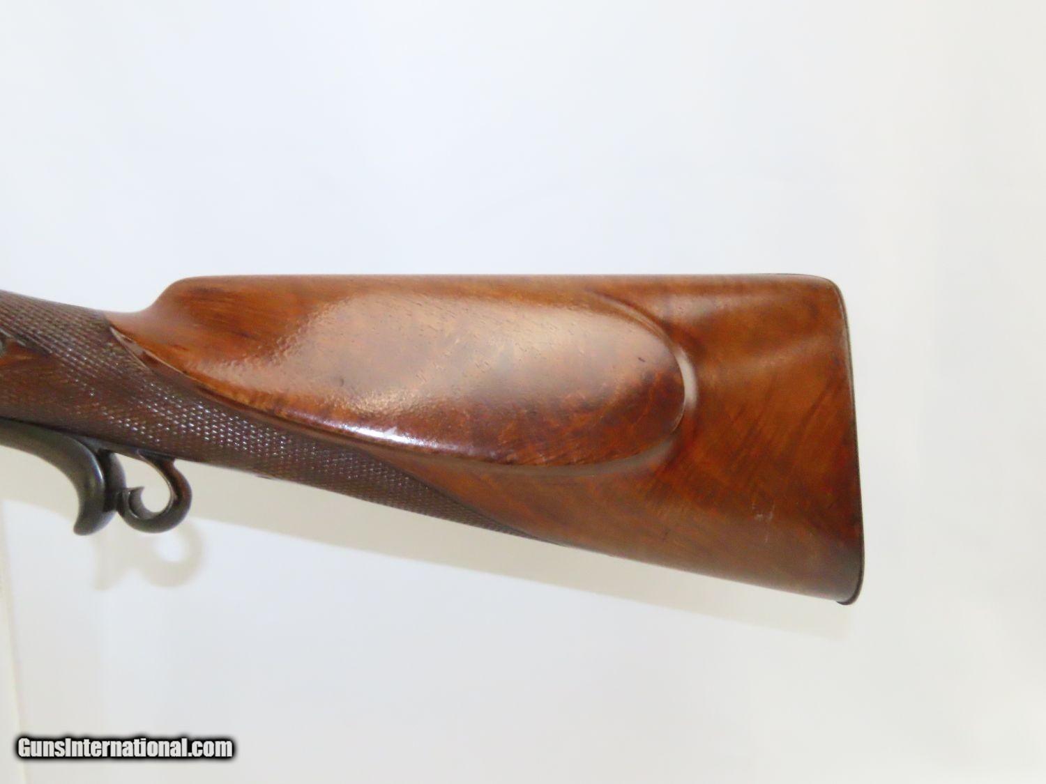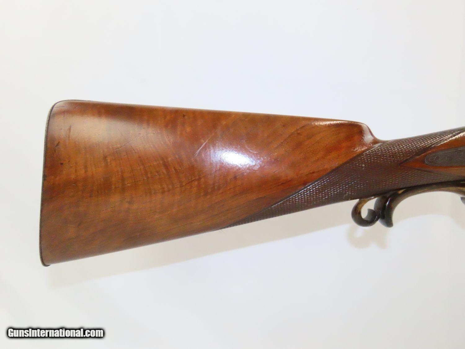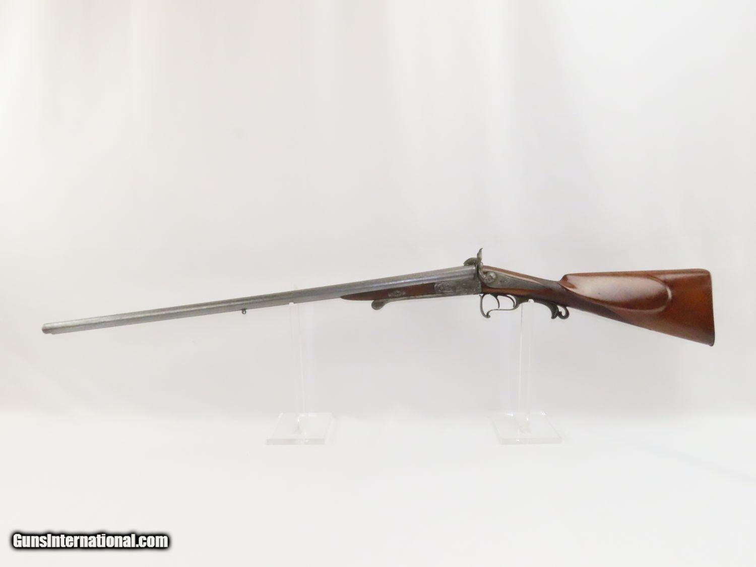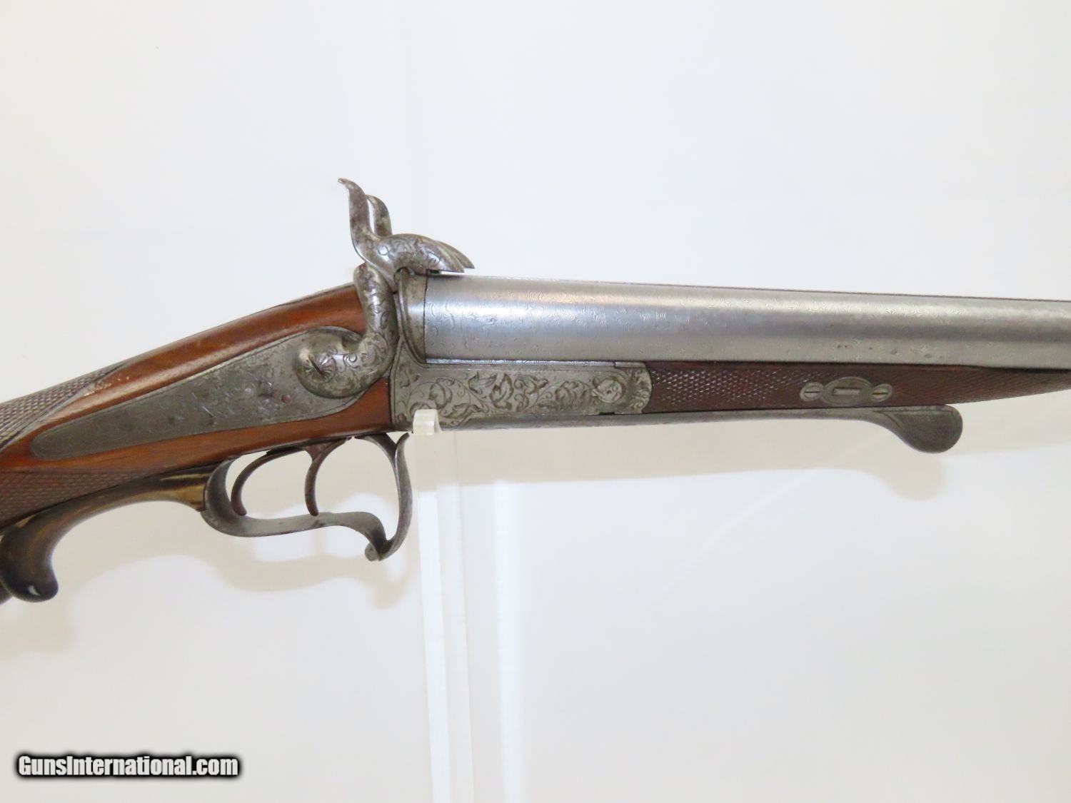 Description: Antique BELGIAN 16 Gauge PINFIRE Side x Side Double Barrel HAMMER Shotgun Nicely ENGRAVED 16 Gauge HAMMER GUN! Here we present a Belgian made Pinfire Side by Side Hammer Shotgun, manufactured circa the 1850s in Belgium. This shotgun is nicely engraved with checkered stocks. The pinfire cartridge was invented by Casimir Lefaucheux in 1836 and is considered to be the first self-contained firearm cartridge. It enjoyed a relatively long life compared to other cartridges developed only a few years later. The overall condition is near fine. The action is strong and tight. The bores are shiny and smooth. Great Damascus pattern. Own the original! This is a legitimate antique and not a reproduction. Barrels: 29-3/4 inches. Caliber: 16 Gauge Pinfire Chambers: 2-1/2 inches Length of Pull: 13-3/4 inches Overall condition as seen in photos. Very Fast. Very Safe. FREE SHIPPING WORLDWIDE. Delivered directly to your door by express mail! Guaranteed AUTHENTIC & Includes CERTIFICATE OF AUTHENTICITY. ancestryguns $1300 #20767 SOLD Antique: Yes |