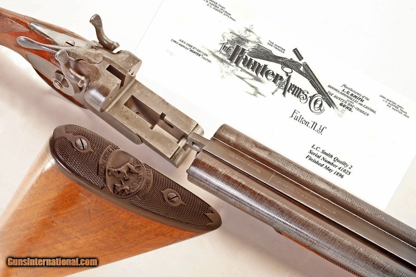ANTIQUE L.C. SMITH DAMASCUS SIDE BY SIDE 12GA 22" BARREL HAMMERED SHOTGUN. NO FFL