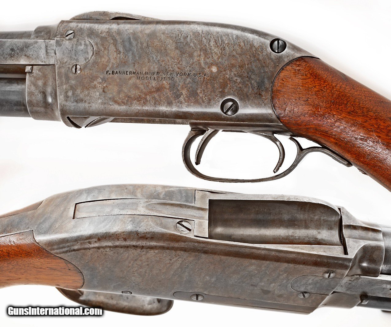 ANTIQUE SCARCE BANNERMAN SPENCER MODEL 1890 PUMP-ACTION DAMASCUS 12 GA SHOTGUN EXCELLENT. NO FFL.