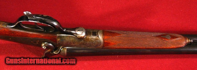 Description: Belgium guild 12 gauge on a Jones Underlever action built in 1946 with 28 5/16" [72cm] IC/F nitro steel barrels with 2 3/4" chambers and so proved. Bores are excellent. The Jones Underlever is one of the strongest actions ever designed. The reciever retains approximately 90% vivid case colors. The breechface shows minimal signs of being fired. Rebounding hammers. Barrels tight and on face and ring like a chime. Bores are .726 right and left and chokes .005 right and .037 left. Stocked in a nice piece of European Walnut. Buttstock and forend both solid and without cracks or repairs. LOP is 14 1/4" to a color case hardened steel buttplate. DAC-1 1/2" DAH 2 1/4" Neutral cast. 6lb 12oz This is a neat "modern Vintager' that is a veritable 1946 time capsule with modern nitro proofs and stock dimensions. With the Jones Underlever it will last for generations. SOLD |