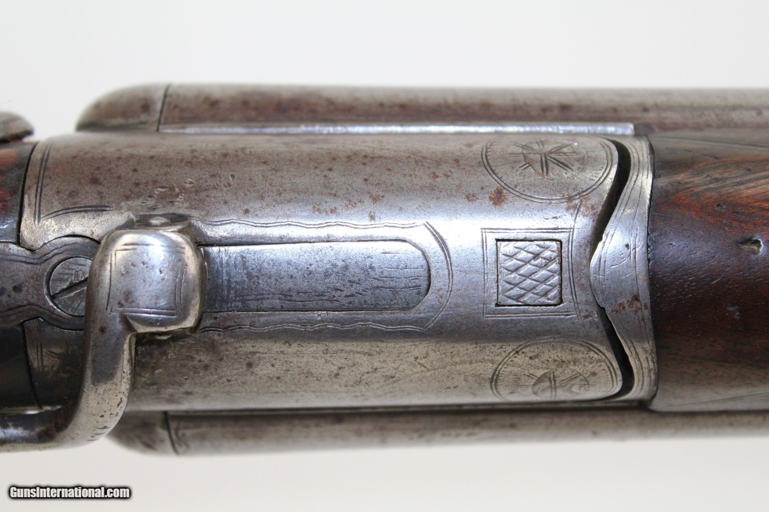 Description: BRITISH Antique JOSEPH MANTON SxS Shotgun 19th Century 10 Gauge European Double Gun Here we present an antique Joseph Manton Side by Side Hammer Shotgun in 10 Gauge, made circa the late 19th Century. The locks are marked “J. MANTON & CO.” The top of the barrels is marked “LAMINATED STEEL”. The overall condition is fair. The metal surfaces have a gray patina. The markings are clear and legible. The stock shows significant use. The bores are smooth and semi-bright. The lug and bottom rib have been repaired with a good amount of solder just under the splinter forearm. Rear breech tang screw absent. The action on this shotgun is functioning, the right lock is stronger than the right. This old double gun may not be fit for the field any more, but it would make a great piece to live over the fireplace. Own the original! This is a legitimate antique and not a reproduction. Barrel is 32 inches. Caliber: 10 Gauge Overall condition as seen in photos. Very Fast. Very Safe. FREE SHIPPING WORLDWIDE. Delivered directly to your door by express mail! Guaranteed AUTHENTIC & Includes CERTIFICATE OF AUTHENTICITY. ancestryguns $550 #7470 SOLD Antique: Yes |