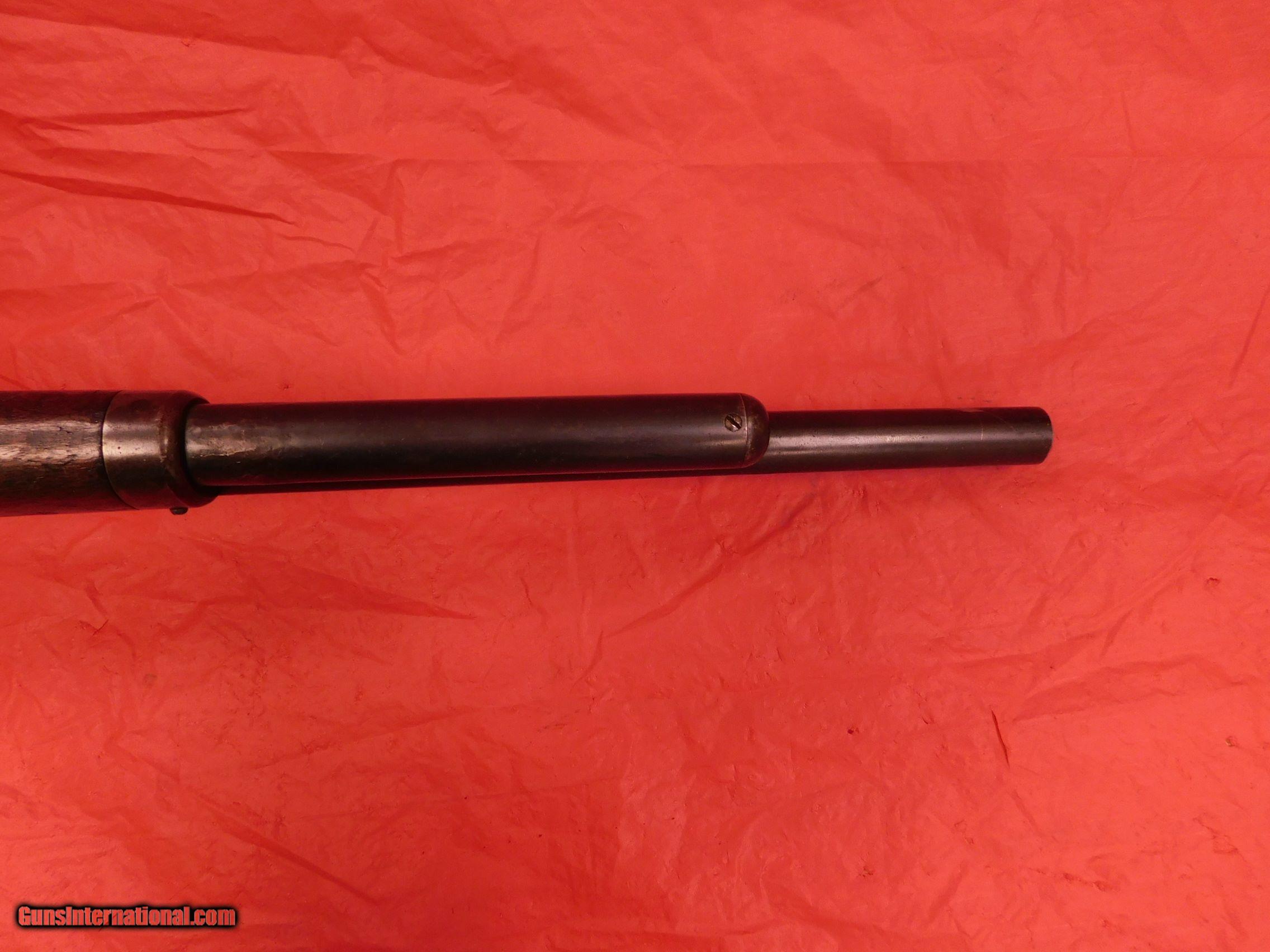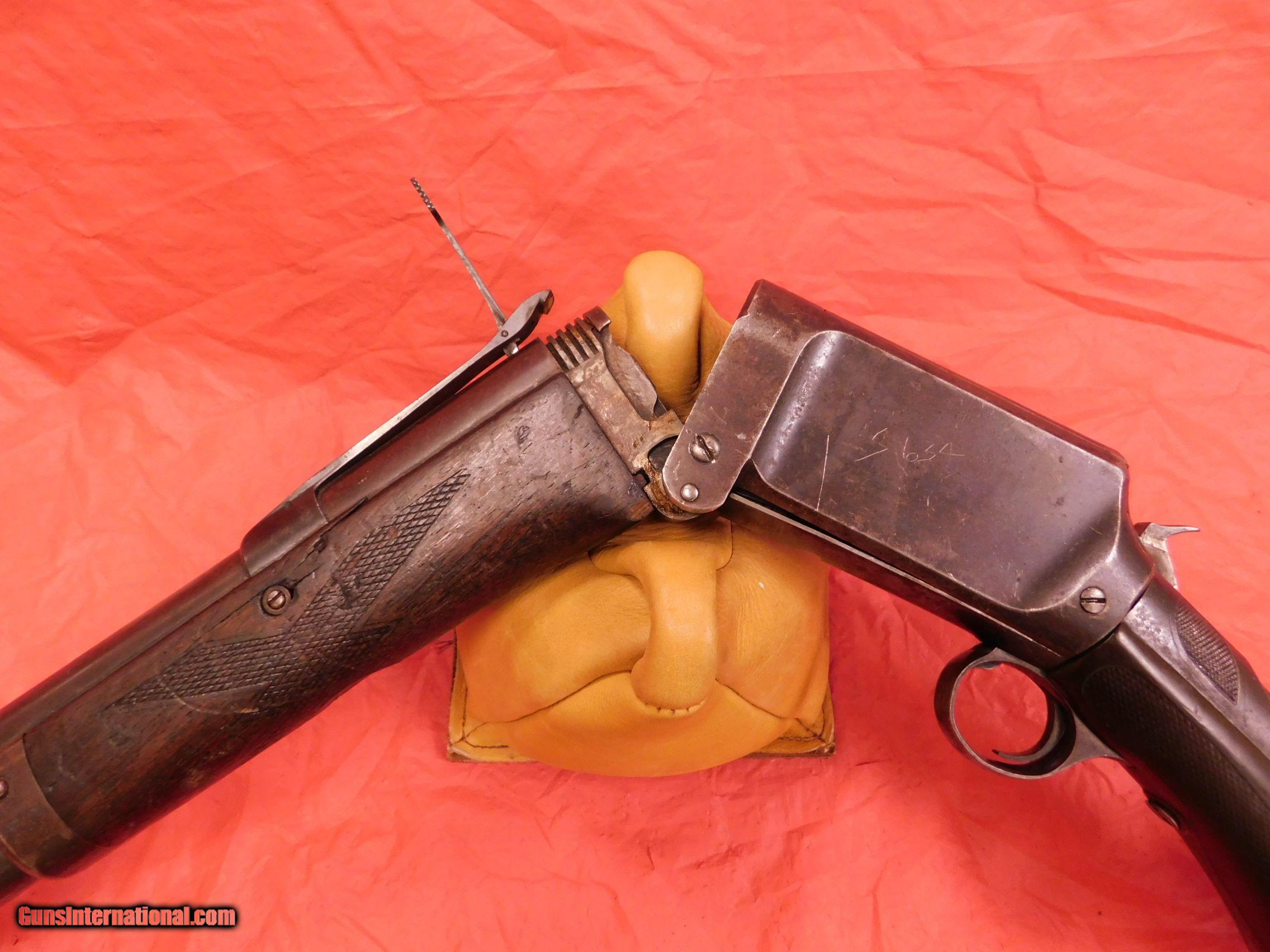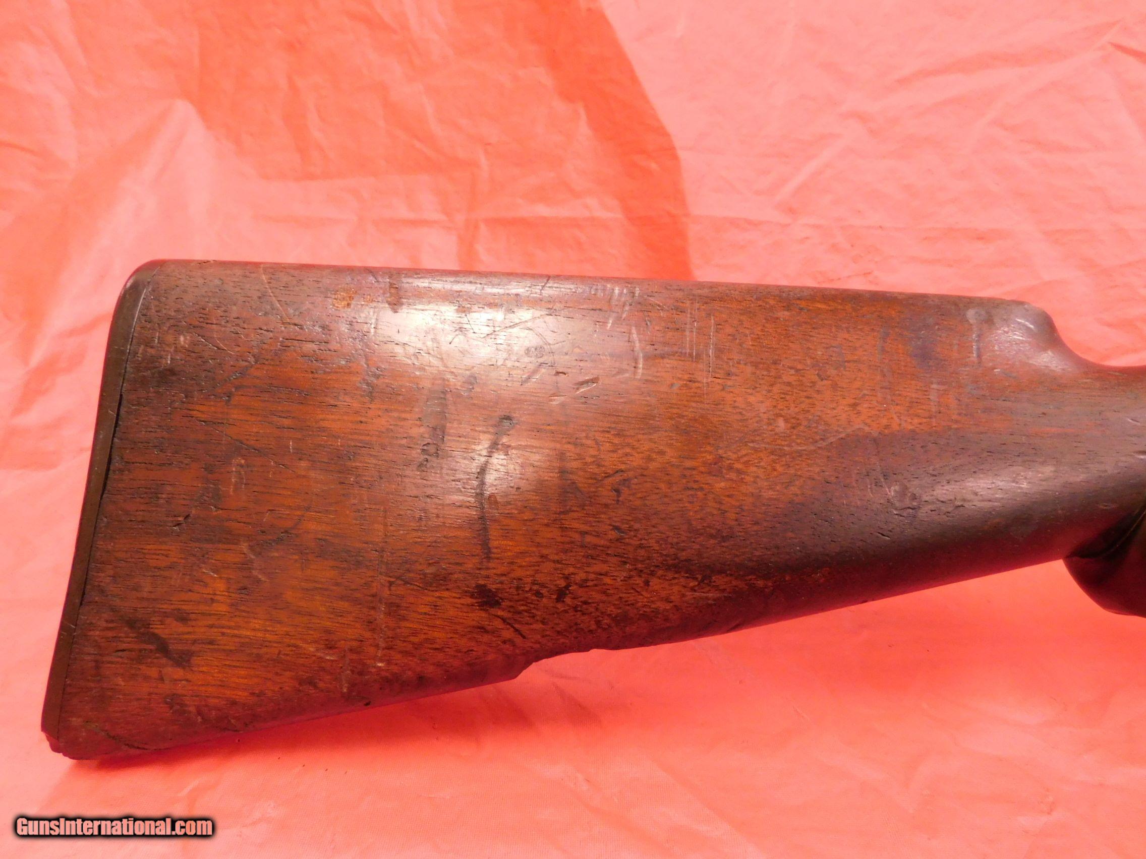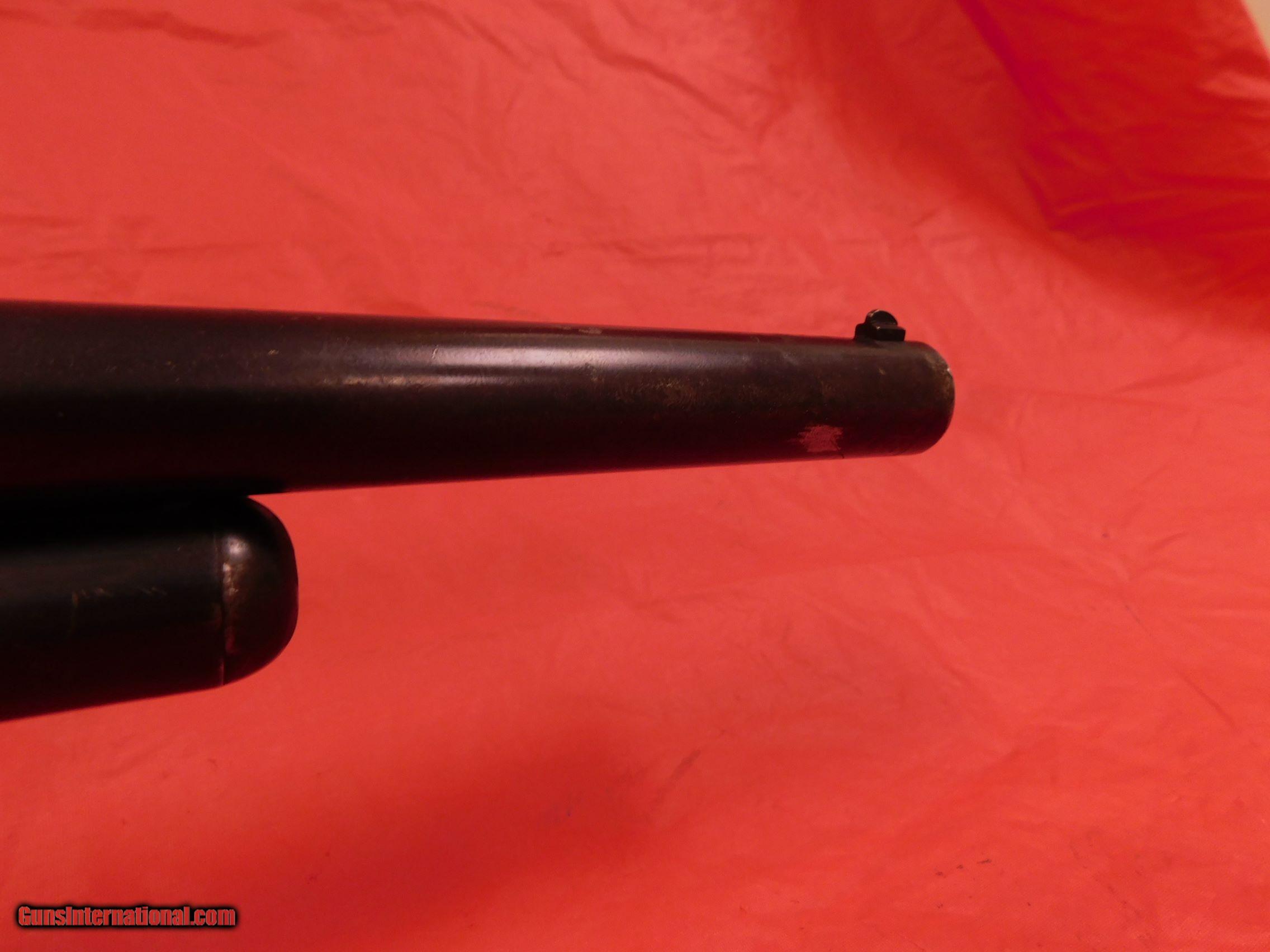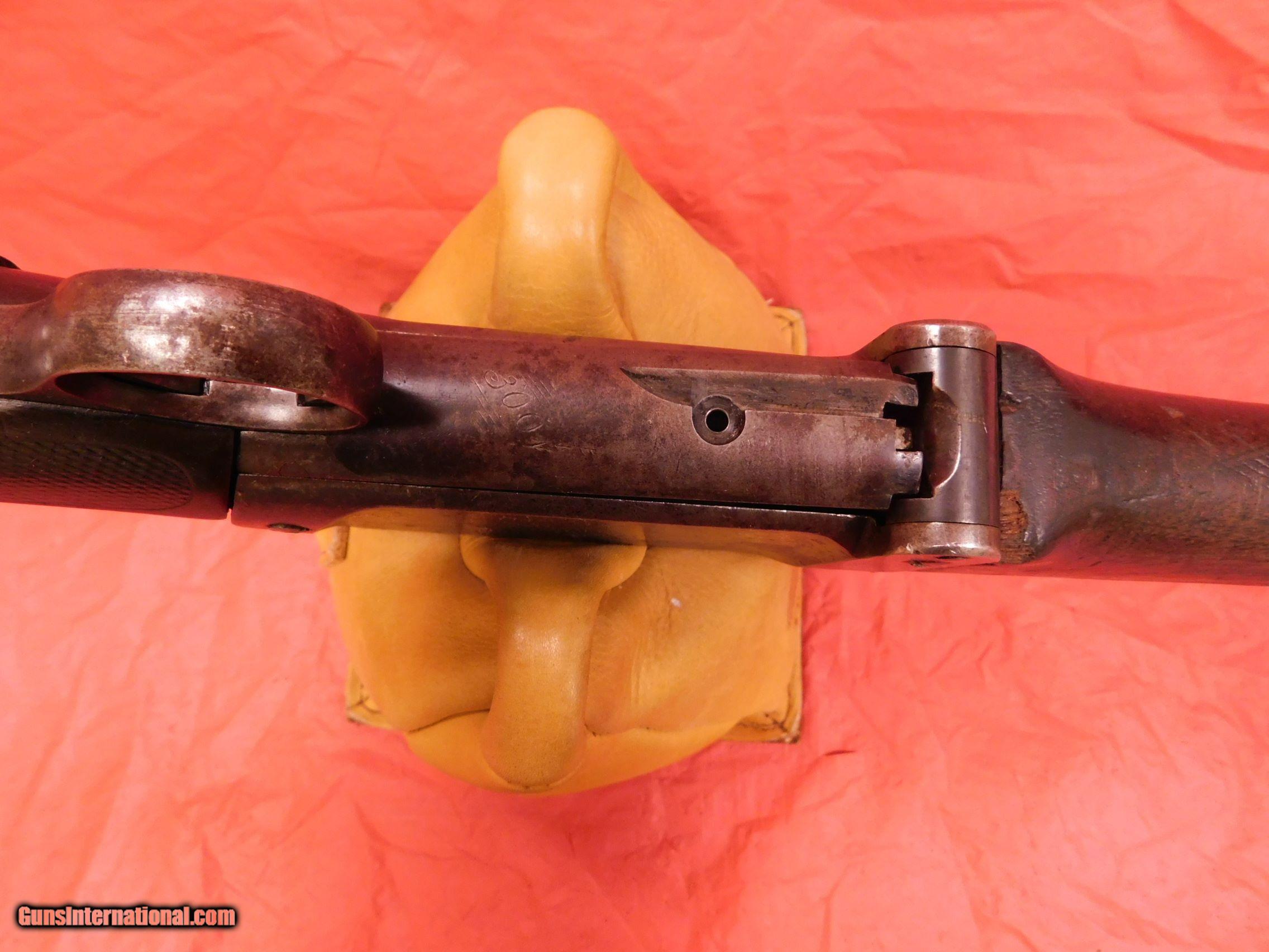 Description: Manufactured by the Burgess Gun Co. of Buffalo, New York circa 1892 to 1899. It is unknown what the total number manufactured is, however, it is estimated to be only a few thousand. This shotgun has the unique design invented by American Inventor Andrew Burgess, who established himself in business in 1892 to manufacture this unusual repeating shotgun which has an iron sleeve over the stock wrist that activates the bolt and breech mechanism when slid backwards. Burgess was also noted for his Lever Action rifles made by Colt and Whitney. This particular "Folding Gun" has a 19 1/2 inch barrel and is hinged on the underside of the receiver with a lift lever on top which releases the barrel so that it can be folded in half. A unique "quick draw" waist holster was made to go with it (not included). The shotgun was advertised as being especially adapted for police service, express messengers, U.S. Marshals, prison and bank guards. The underside of the receiver is marked with the three-line patent and reissue dates and the matching serial number is stamped on the front left edge of the receiver, and on the underside of the receiver. Blade front sight and there is a groove in the top of the barrel release lever that serves as the rear sight. All blue finish and mounted with a multi-point checkered walnut forearm and pistol grip stock with a checkered hard rubber Burgess Gun Co. Dog's head logo buttplate. Parts are missing, stock and forend cracked. Most of the bluing is there. Good wall hanger. Not recomended to be fired. Only $700 $45 shipping and NO cc fees. Even though this is an antique, we will only ship to an FFL. NO C&R License accepted. Please ask for Steve 716-833-2581 or 716-835-1546. SOLD Manufacturer: Burgess Model: Slide action Folding Shotgun Condition: used Barrels: 19 1/2 Gauge Info: 12 |