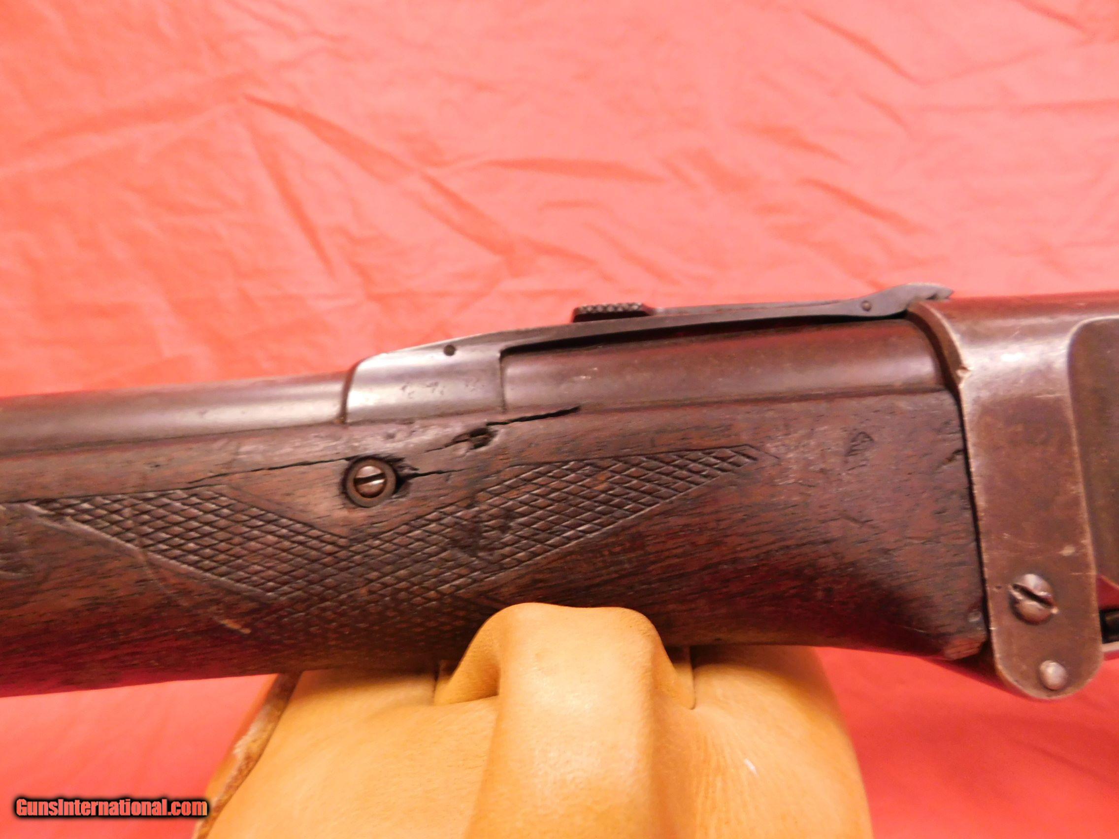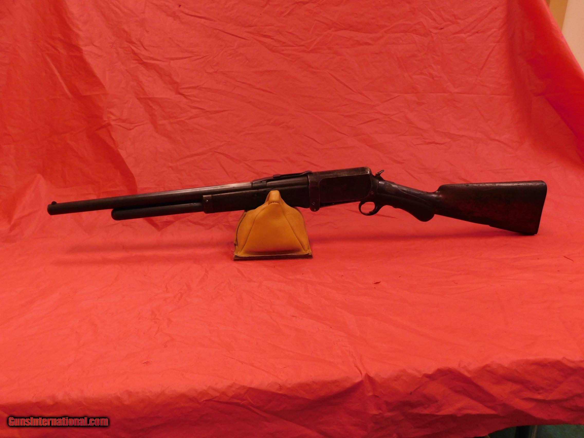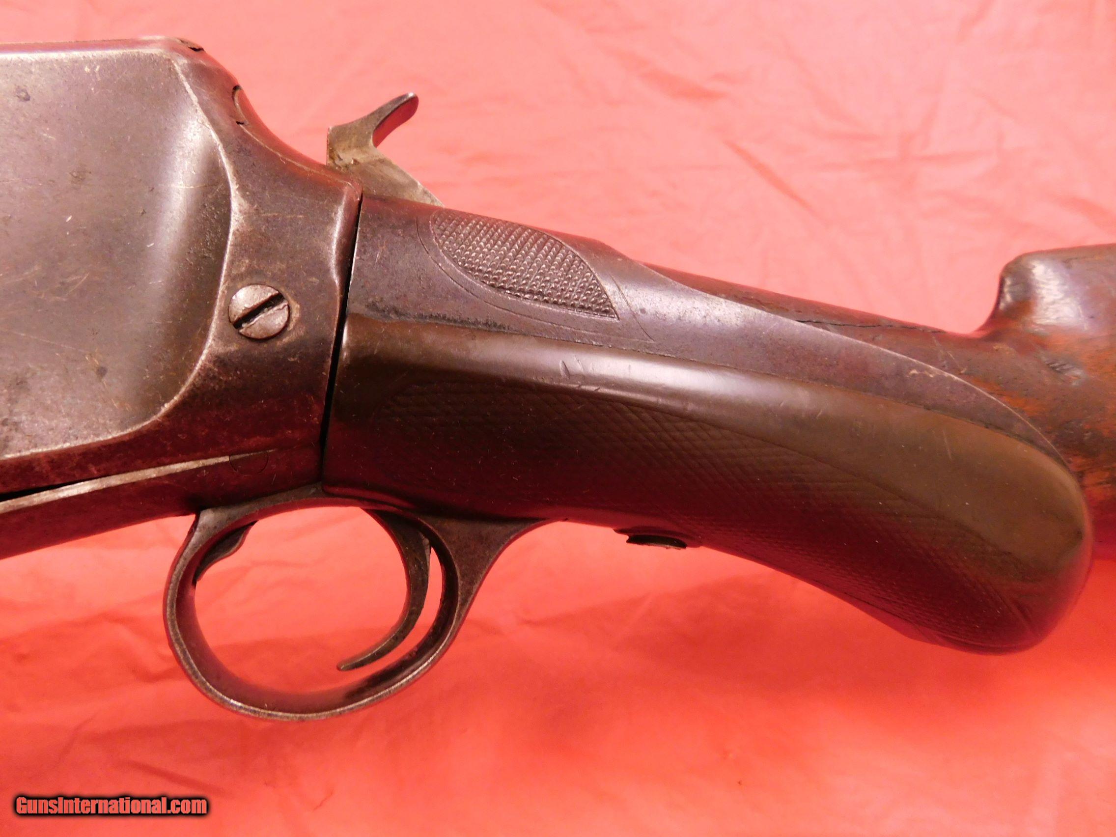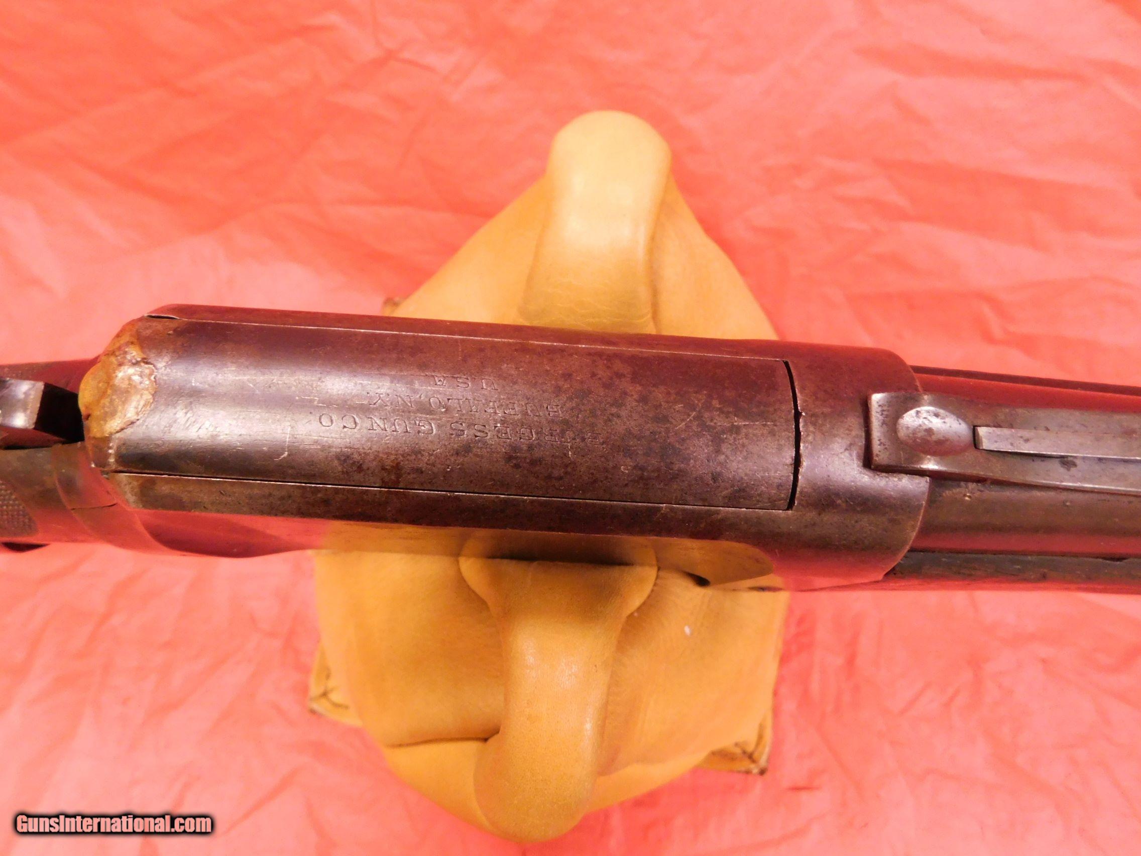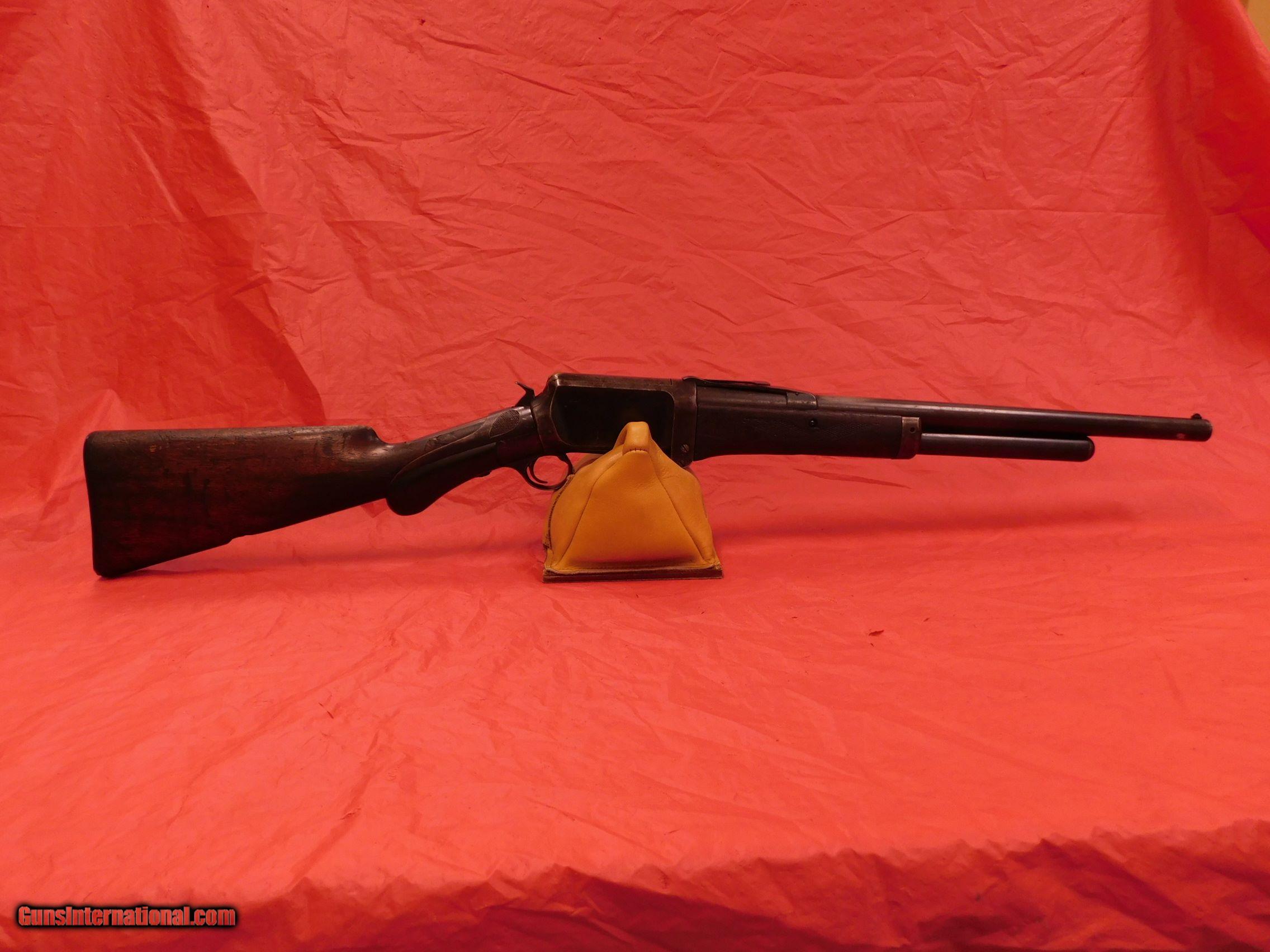 Description: Manufactured by the Burgess Gun Co. of Buffalo, New York circa 1892 to 1899. It is unknown what the total number manufactured is, however, it is estimated to be only a few thousand. This shotgun has the unique design invented by American Inventor Andrew Burgess, who established himself in business in 1892 to manufacture this unusual repeating shotgun which has an iron sleeve over the stock wrist that activates the bolt and breech mechanism when slid backwards. Burgess was also noted for his Lever Action rifles made by Colt and Whitney. This particular "Folding Gun" has a 19 1/2 inch barrel and is hinged on the underside of the receiver with a lift lever on top which releases the barrel so that it can be folded in half. A unique "quick draw" waist holster was made to go with it (not included). The shotgun was advertised as being especially adapted for police service, express messengers, U.S. Marshals, prison and bank guards. The underside of the receiver is marked with the three-line patent and reissue dates and the matching serial number is stamped on the front left edge of the receiver, and on the underside of the receiver. Blade front sight and there is a groove in the top of the barrel release lever that serves as the rear sight. All blue finish and mounted with a multi-point checkered walnut forearm and pistol grip stock with a checkered hard rubber Burgess Gun Co. Dog's head logo buttplate. Parts are missing, stock and forend cracked. Most of the bluing is there. Good wall hanger. Not recomended to be fired. Only $700 $45 shipping and NO cc fees. Even though this is an antique, we will only ship to an FFL. NO C&R License accepted. Please ask for Steve 716-833-2581 or 716-835-1546. SOLD Manufacturer: Burgess Model: Slide action Folding Shotgun Condition: used Barrels: 19 1/2 Gauge Info: 12 |