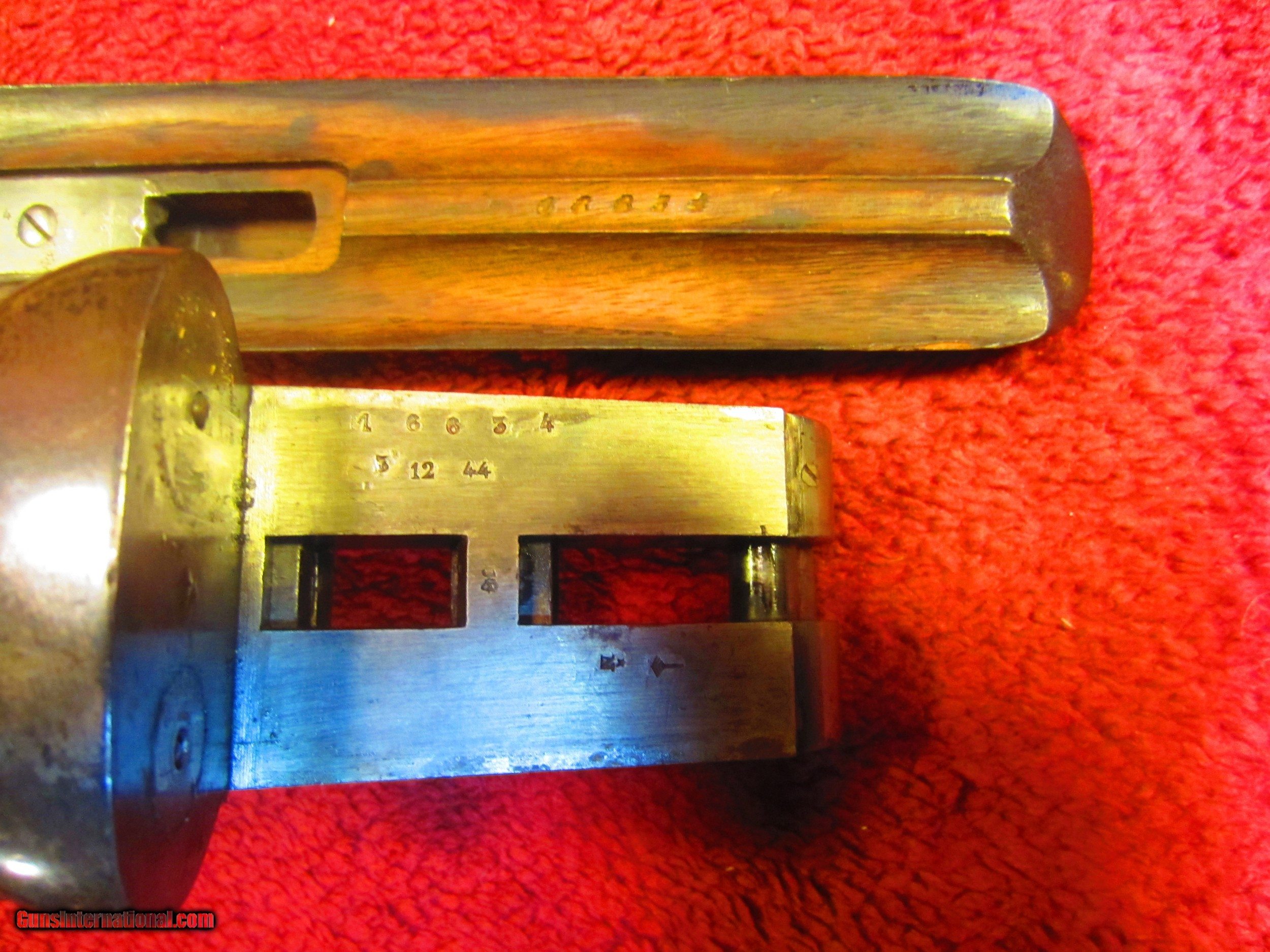 Description: CAPE GUN MADE BY H. PHIELER IN BELGUIM DATES 1890S RIGHT BARREL CHAMBERD FOR 44-40 WCF LEFT BARREL 12GA CHAMBER LENGTH 2 1/2" IMPORTED BY SEARS AND ROEBUCK IN THE 1890S CONDITION OF BORES EXCELLENT OUTSIDE FINISH ALL OF 80% OR BETTER TIGHT LOCK UP. WOOD VERY GOOD . WANT TO PURCHASE CALL SHOP 716-941-3946 SOLD Antique: Yes |