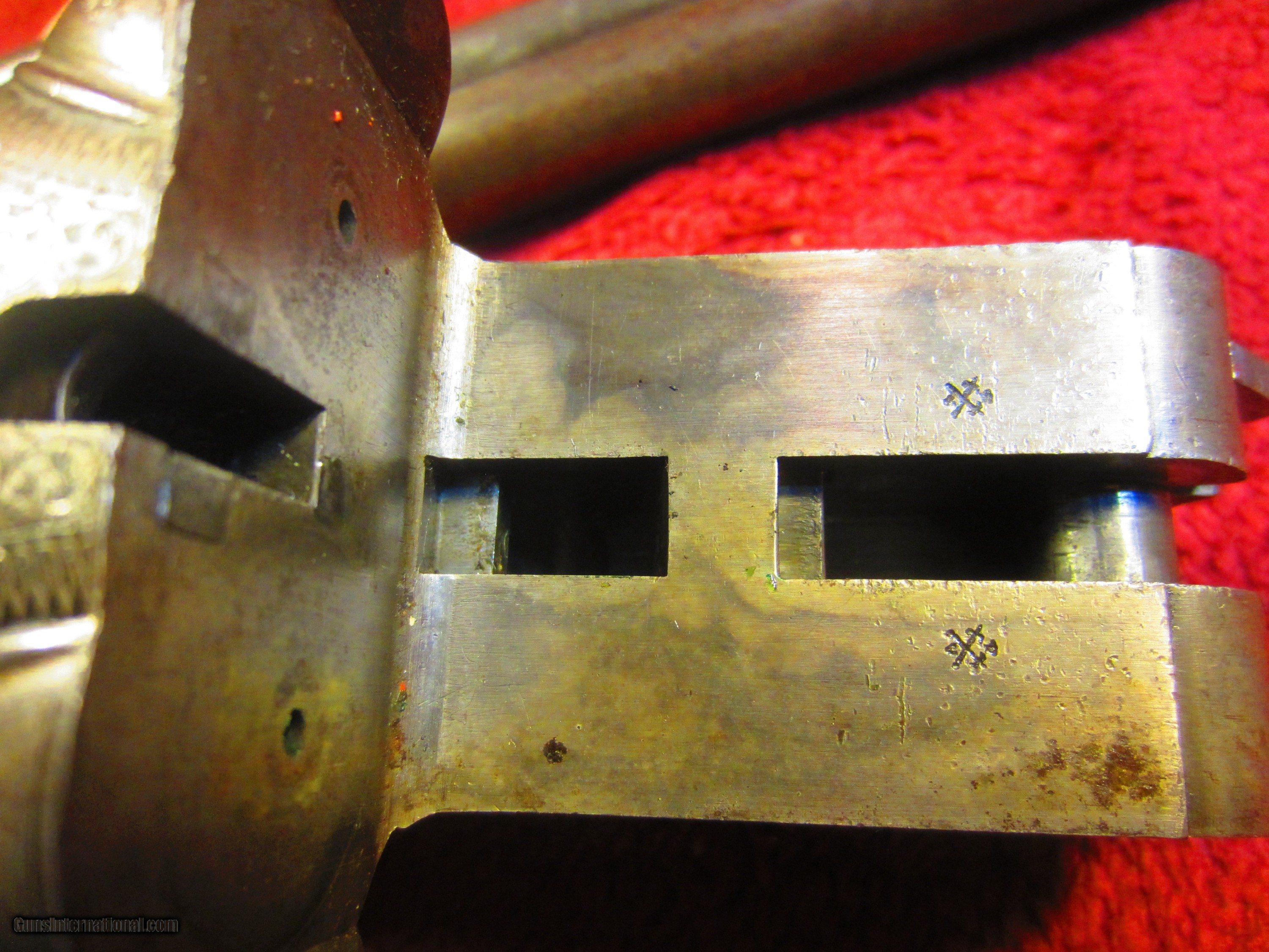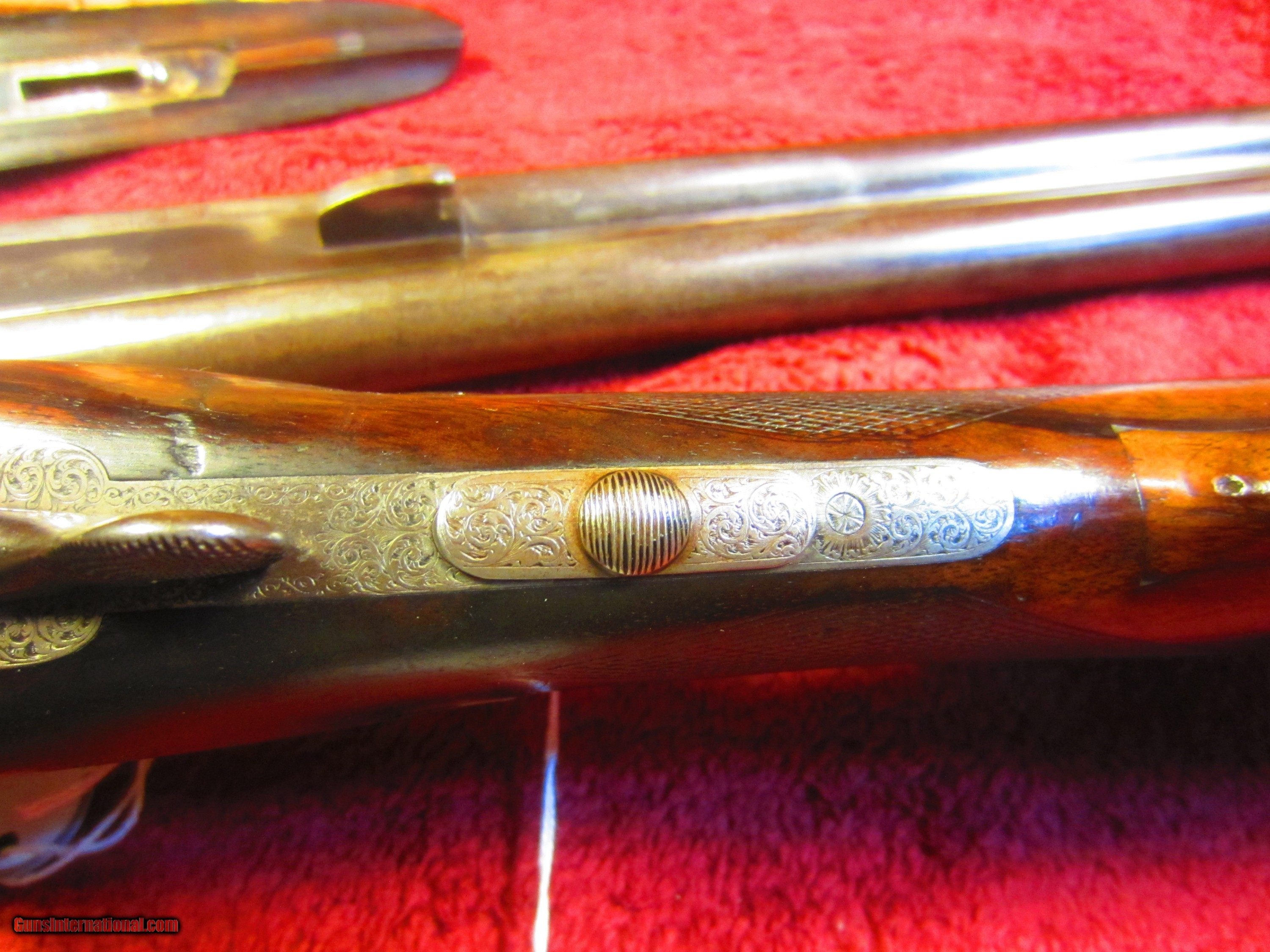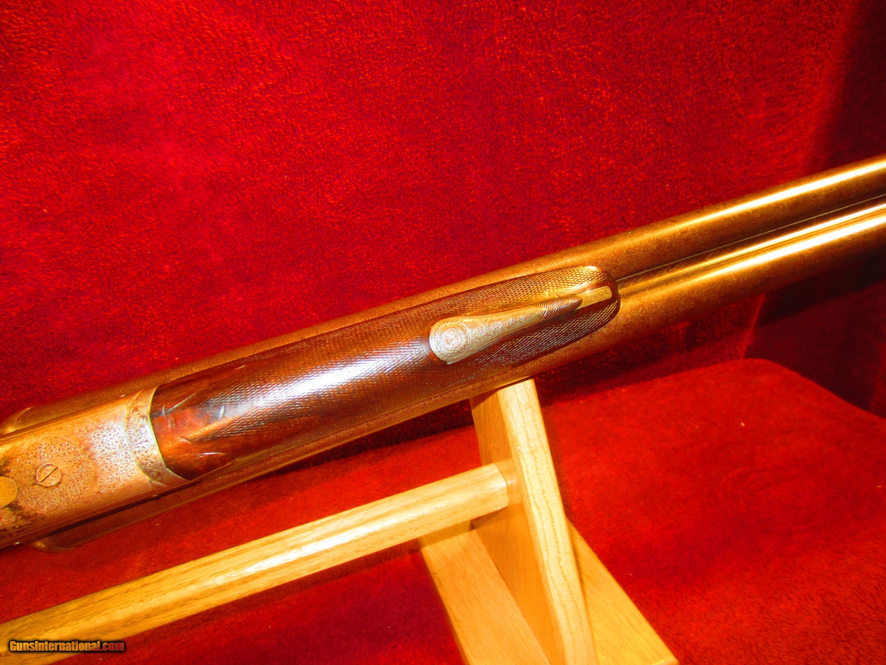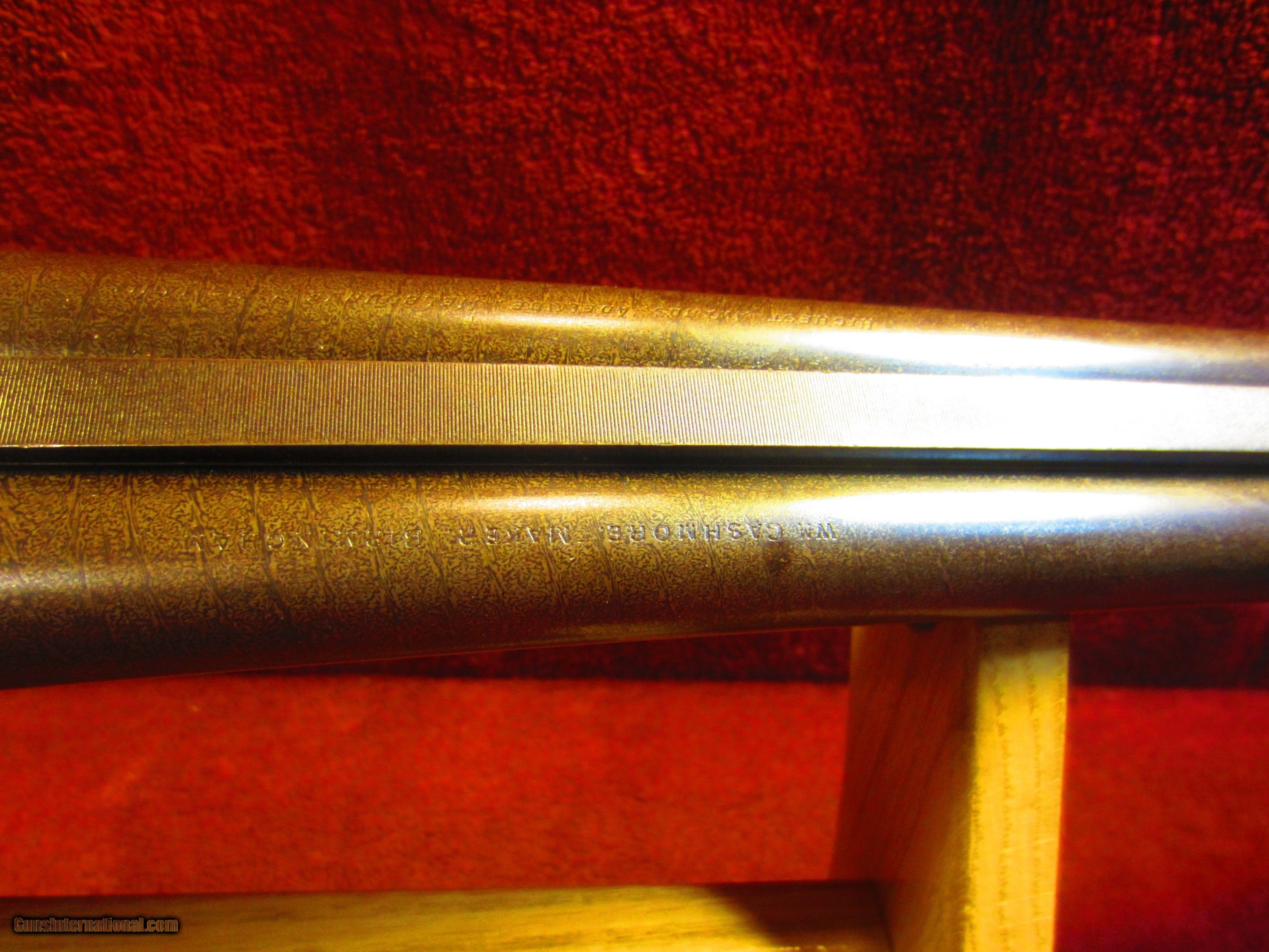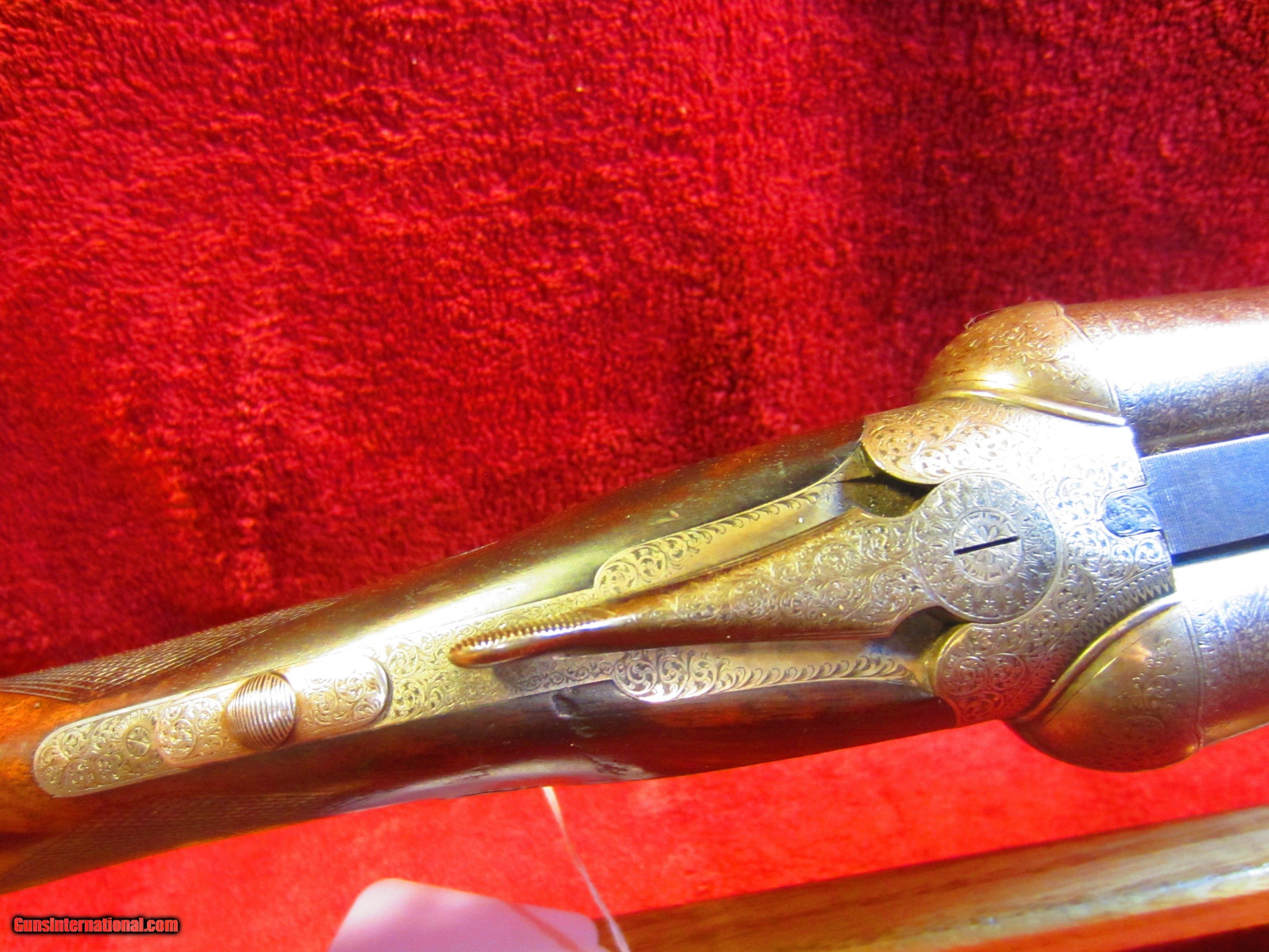 Description: CASHMORE DOUBLE BARREL 12GA SERIAL NUMBER 9018 PRE 1898 MADE IN ENGLAND BARREL LENGTH 30 1/2" BARRELS DAMASUS RIGHT BARREL OPEN BORE LEFT BARREL IMPROVED CYLINDER. MAKERS NAME GOLD FILLED NO RUST EXCELLENT BORES. RECOIL PAD POOR CONDITION WOOD VERY GOOD FOREARM HAS CASE COLOR. ENGRAVING EXCELLLENT SHOWS NO RUST. MAKERS NAME IS GOLD FILLED. NOTE SOME OF THESE WERE MADE FOR ANTIE OAKLEY HOWEVER NOT THIS ONE. ANY INTEREST CALL SHOP 716-941-3946 SOLD Antique: Yes |