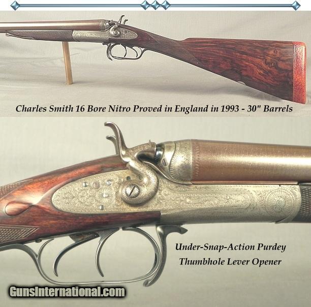 CHARLES SMITH- 16 BORE 1993 BIRMINGHAM NITRO PROVED REBOUNDING HAMMER GAME GUN- 30" Bbls.- UNDER-SNAP-ACTION PURDEY THUMBHOLE LEVER