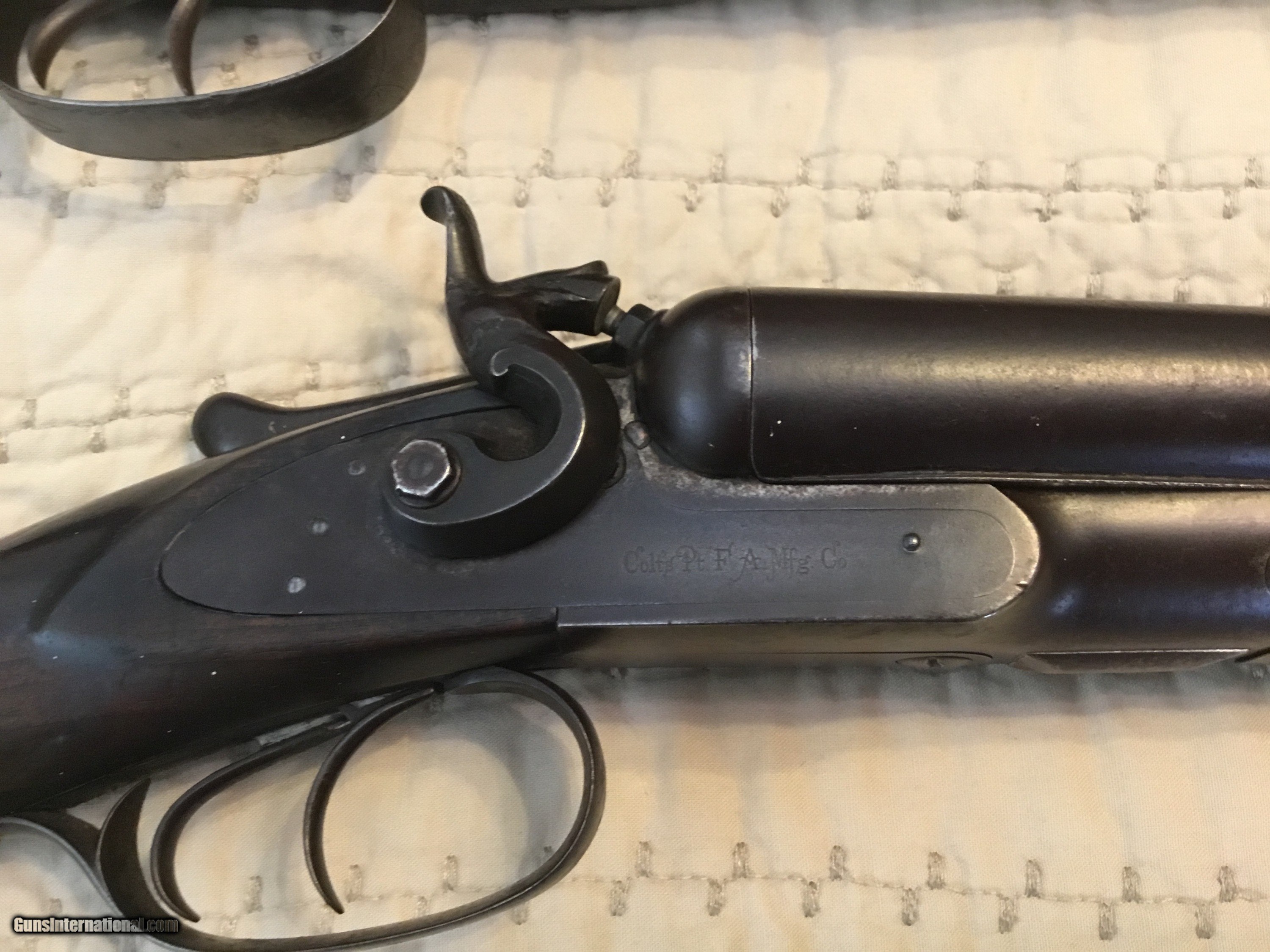 Description: Selling a pair of antique 12 ga. Colt shotguns...not pretty but who would be if you were 140 years old...tight tight and shoot very well....2.5 inch chambers....I shoot true black powder ammo from England.....1878 is the hammer gun with good bores. 1883 is the hammerless with great bores.....1878 has trim missing from hand grip....$100 for shipping to your door...questions call me...thank you.... SOLD |