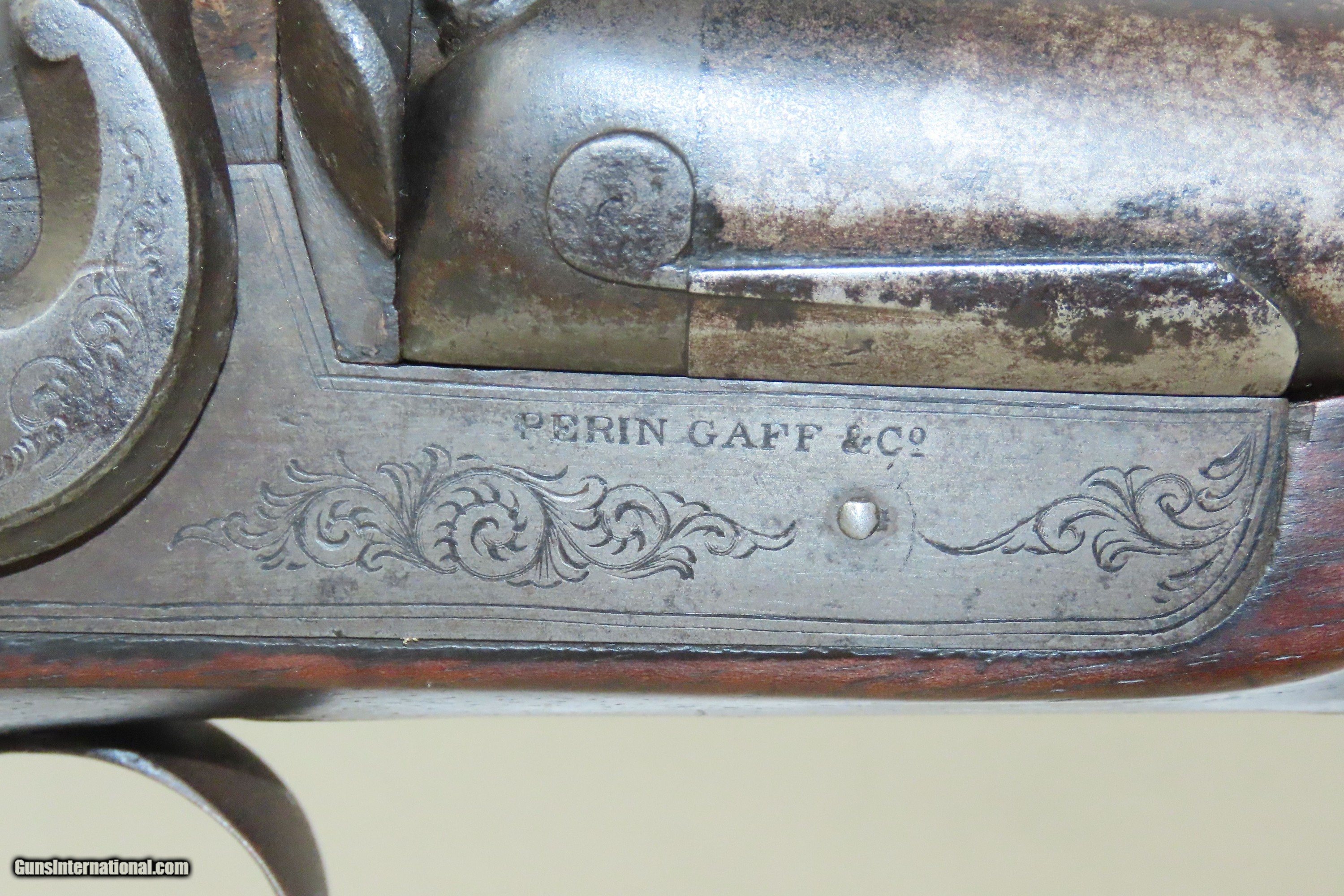 Dog Head Hammers British PERIN GAFF c1860s Antique Double Barrel SHOTGUN