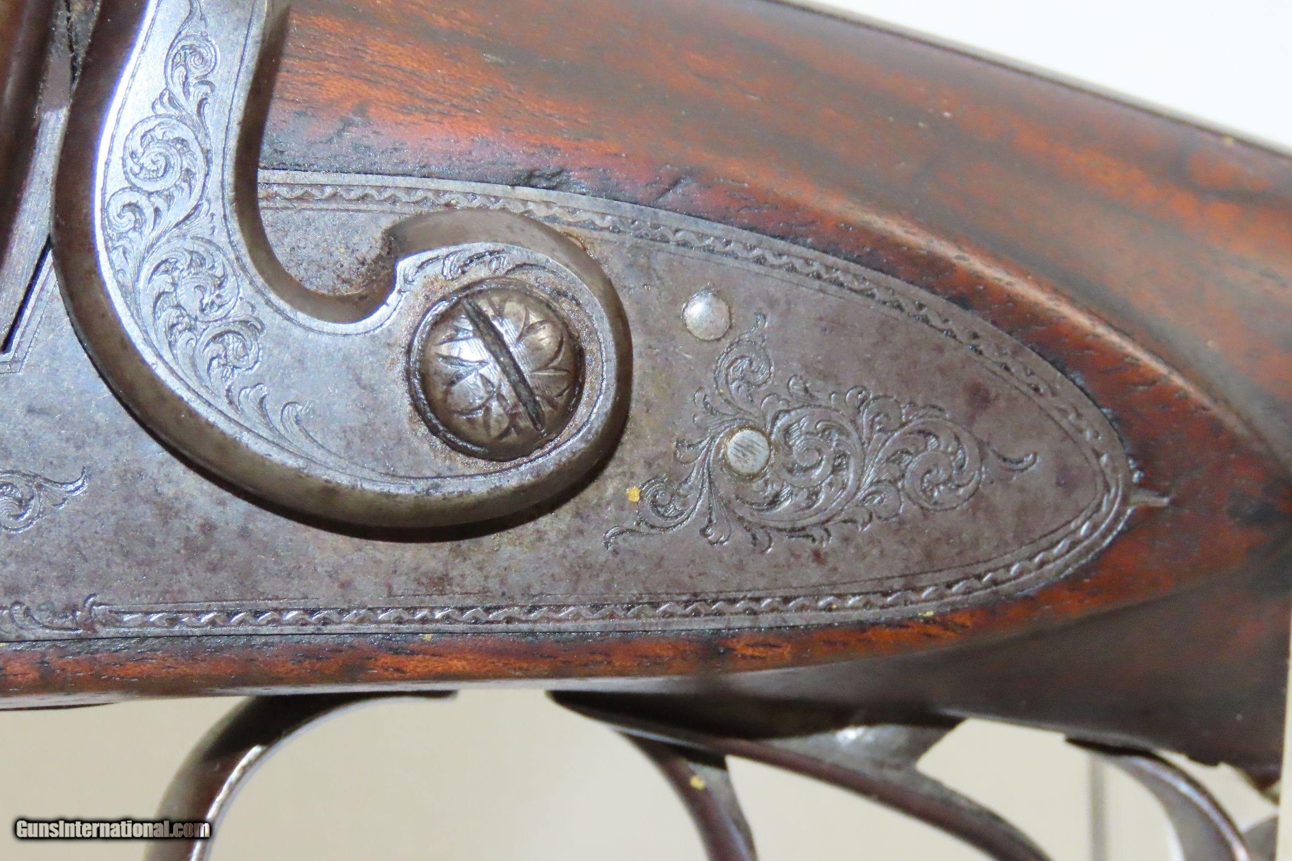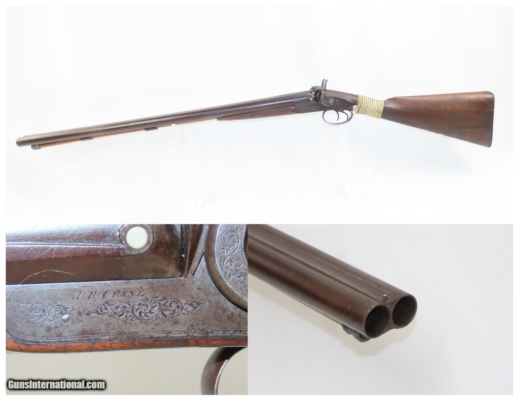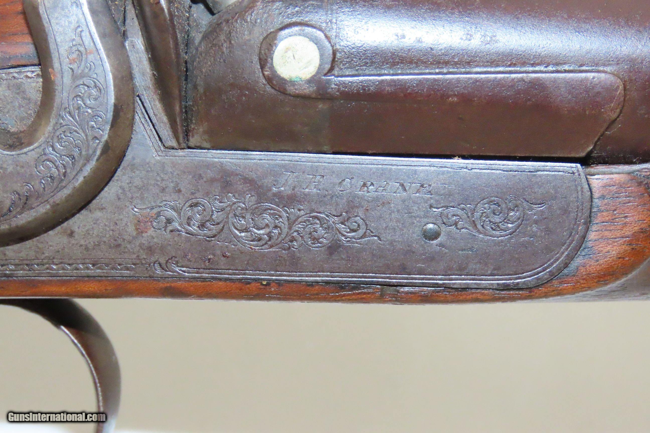 ENGLISH Antique J.H. CRANE Double Barrel 10 Gauge PERCUSSION HAMMER Shotgun Nicely Engraved LONDON Made Shotgun