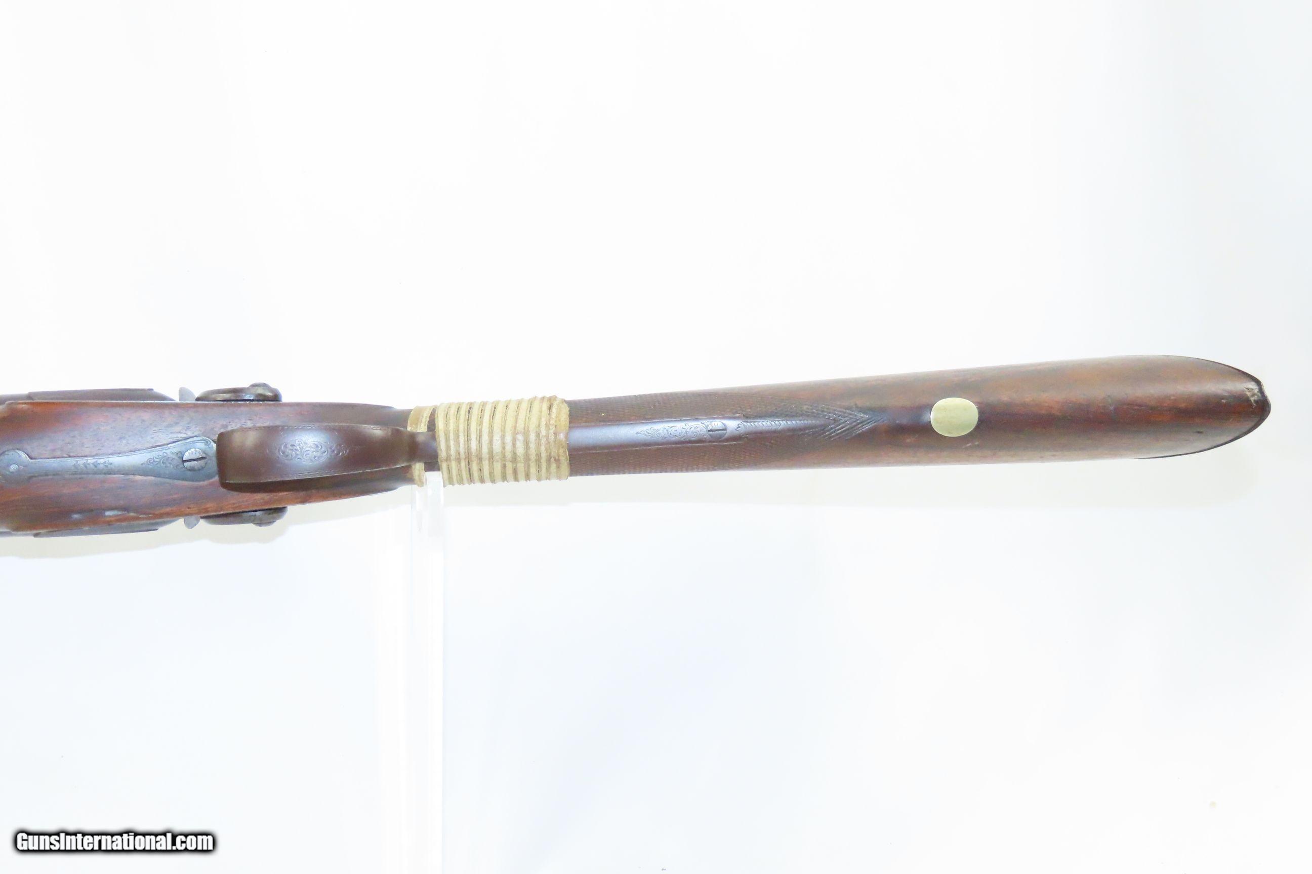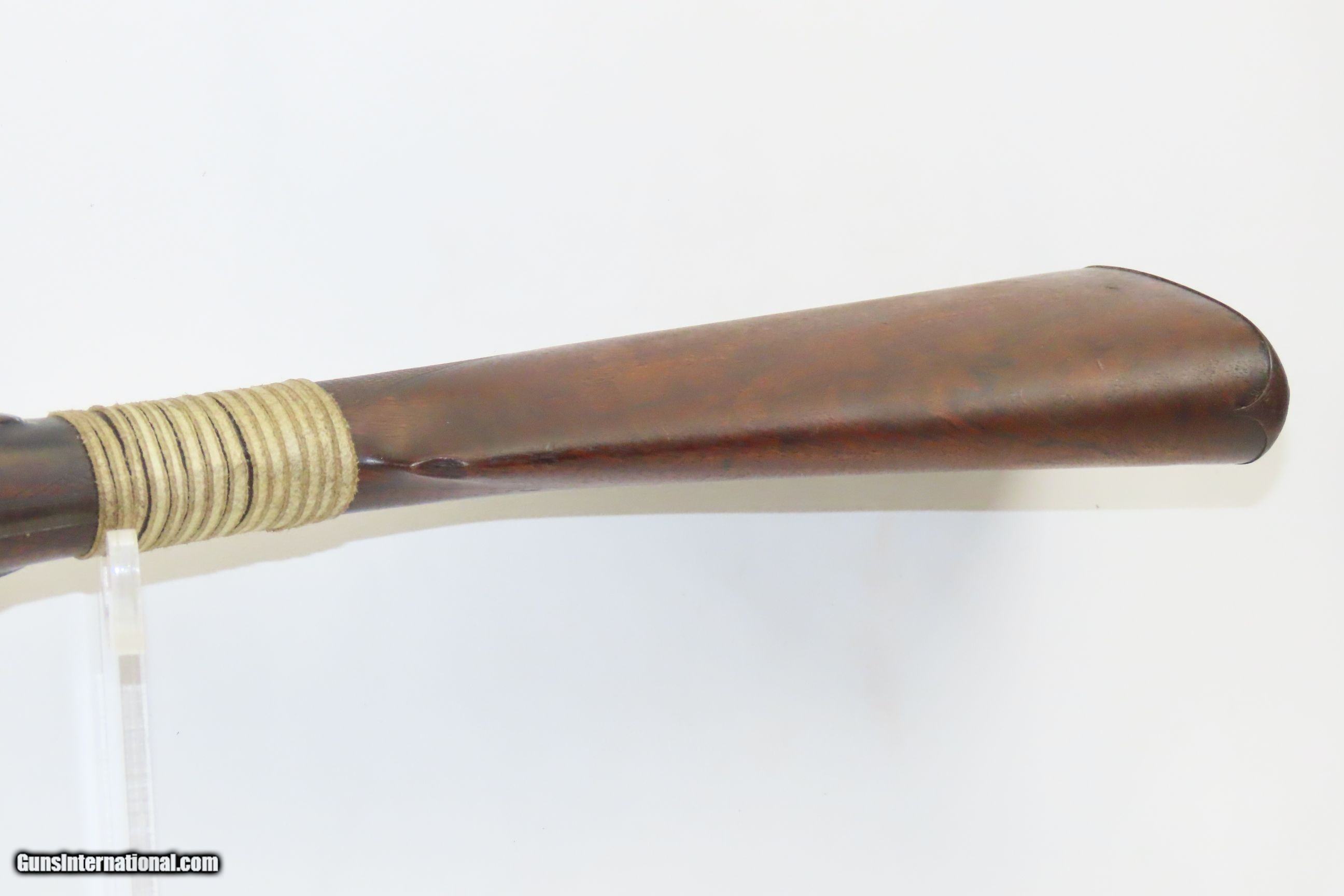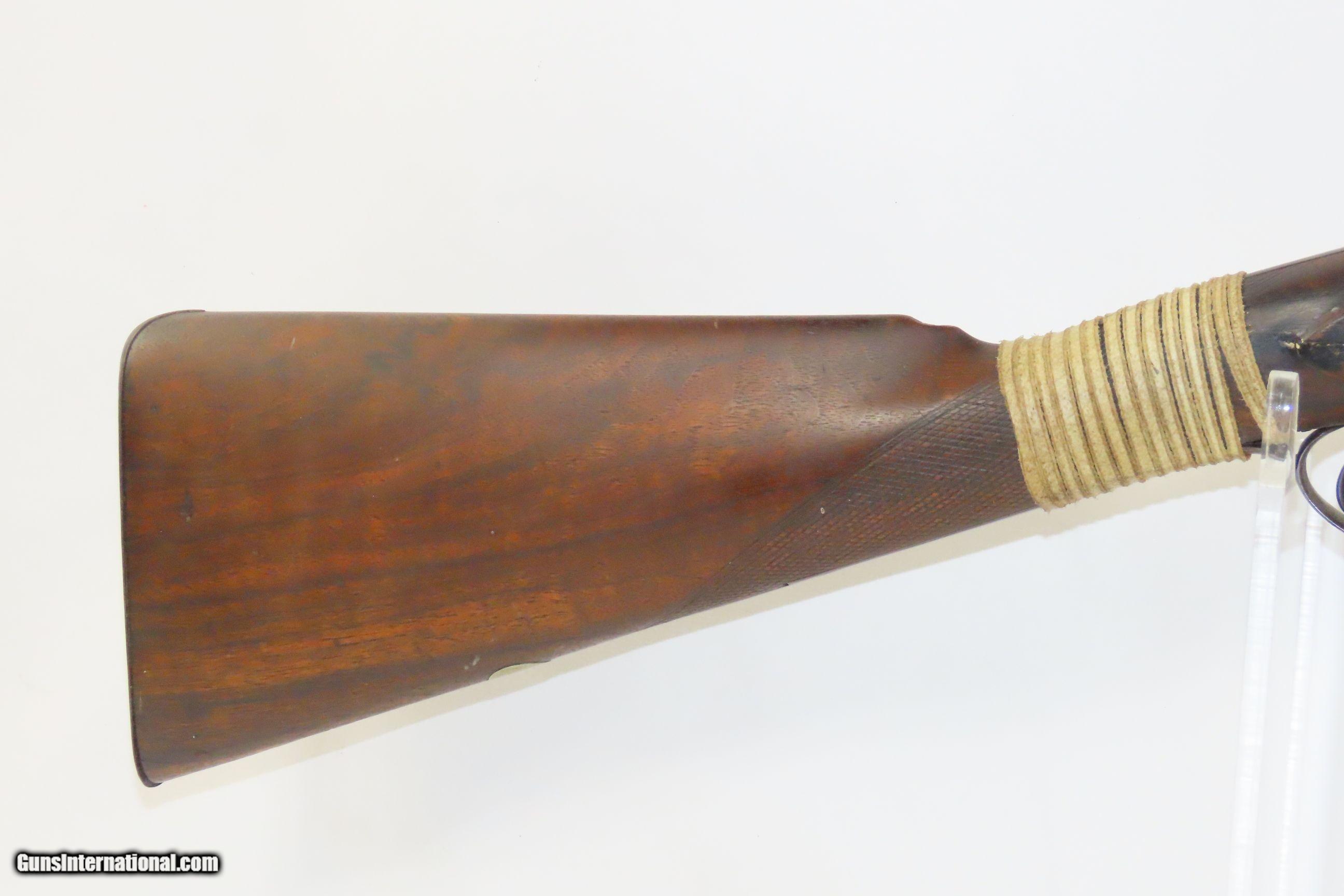 Description: ENGLISH Antique J.H. CRANE Double Barrel 10 Gauge PERCUSSION HAMMER Shotgun Nicely Engraved LONDON Made Shotgun Here we present an antique English J. H. Crane Double Barrel Side x Side Percussion Hammer Shotgun, manufactured circa the 1860s in London, England. London, along with Birmingham was the epicenter for English gunmaking all the way through the turn of the century. This is an English fowling piece that is elegant in its simplicity and practicality. This double barrel hammer gun would have been used primarily for putting game on the table or defending one’s homestead. This shotgun was manufactured somewhere around the westward expansion in the United States and was likely an export to the U.S. during a time when this type of firearm would have been a staple in the covered wagons heading into the new frontier. The overall condition is good. Strong action. Original patina. The bores are in good shape for their ages. The wrist is wrapped with a leather cord and contains a stable crack. Legible markings. Lightly engraved locks. Own the original! This is a legitimate antique and not a reproduction. Barrels: 27-1/2 inches. Caliber: Approximately 10 Gauge Overall condition as seen in photos. Very Fast. Very Safe. FREE SHIPPING WORLDWIDE. Delivered directly to your door by express mail! Guaranteed AUTHENTIC & Includes CERTIFICATE OF AUTHENTICITY. ancestryguns $1200 #220349 SOLD Antique: Yes |