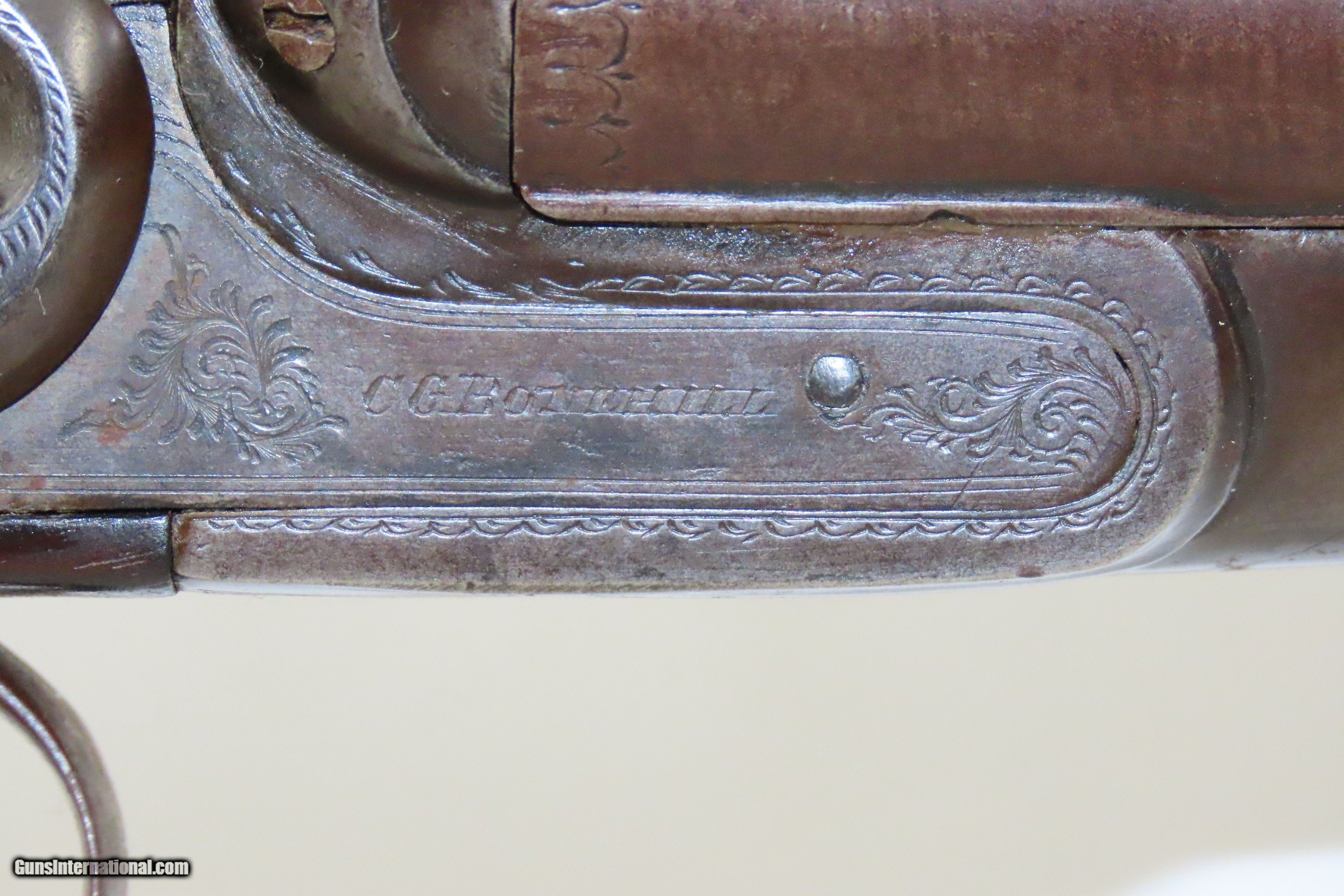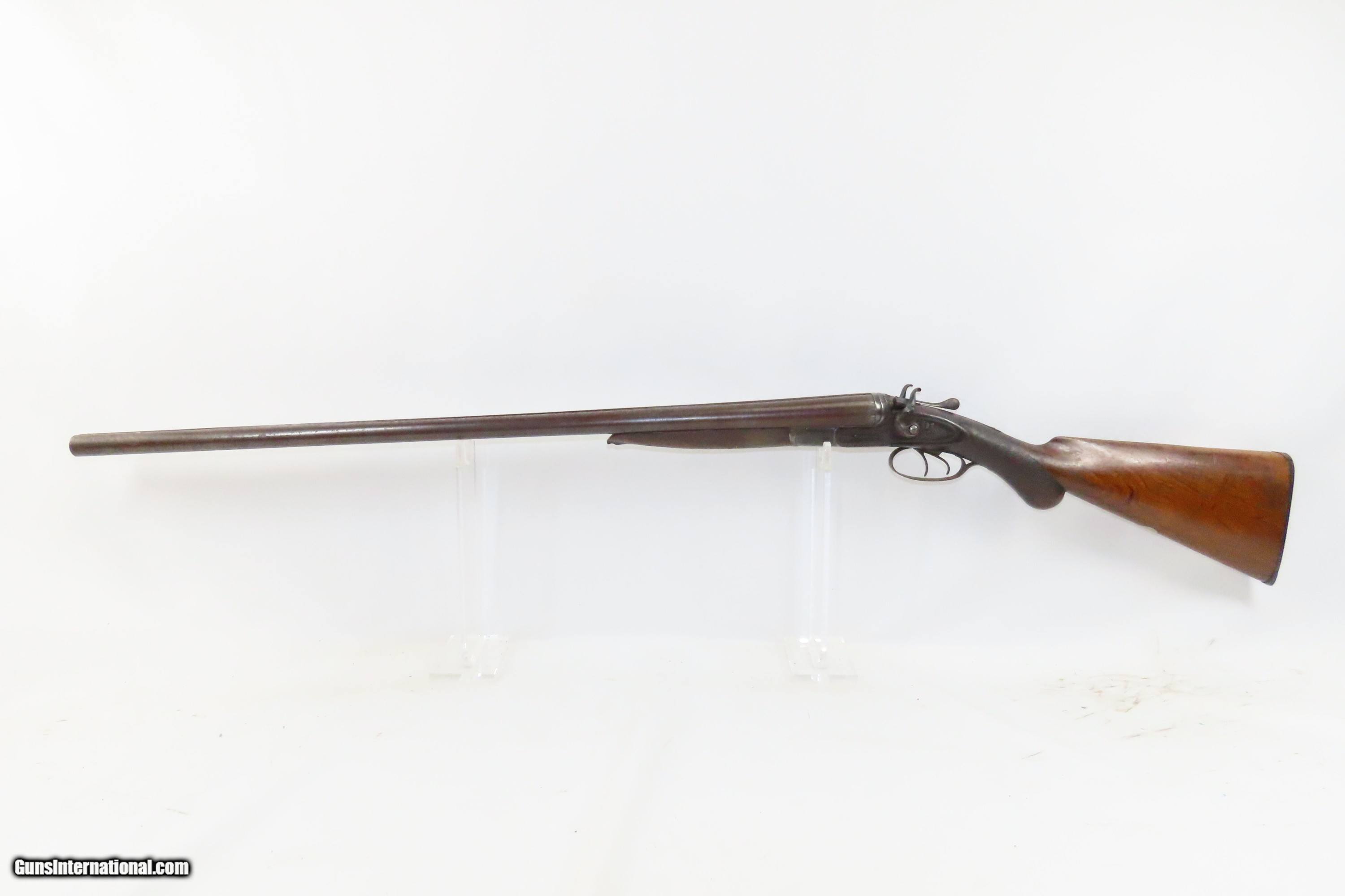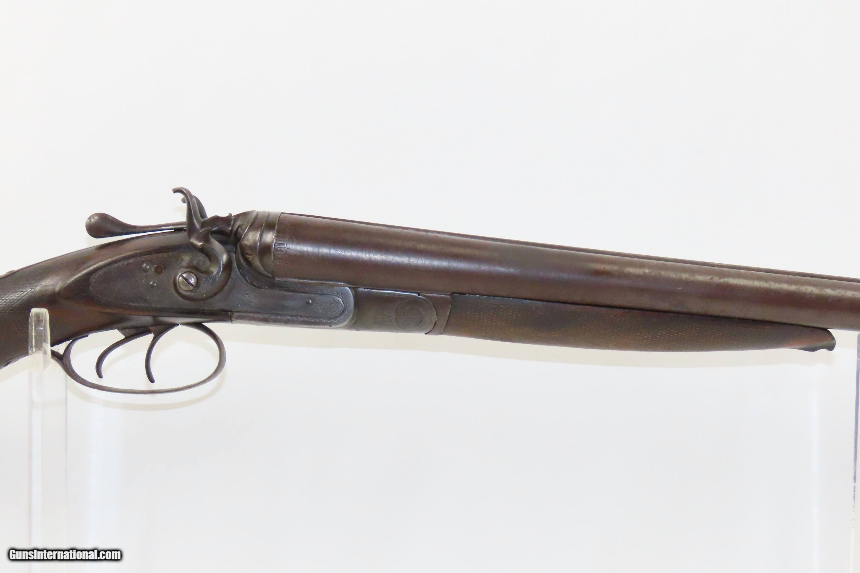 Description: ENGRAVED Antique C.G. BONEHILL New Model 1886 12 Gauge SIDE x SIDE Shotgun FACTORY ENGRAVED English Double Barrel Here we present an antique C.G. Bonehill New Model 1886 Side by Side Double Barrel Hammer Shotgun, made circa the 1880s in either London or Birmingham, England. London and Birmingham were the epicenter for English gunmaking all the way through and continuing after the turn of the century. This is an English fowling piece that is elegant in its simplicity and practicality. This double barrel hammer gun would have been used primarily for putting game on the table or defending one’s home. The overall condition is good. Original finish/patina. The barrels have good Damascus twist pattern. The right action is fully functional and strong, but the left action does not presently hold the cock notch. The left hammer has also been repaired. The bores are smooth and bright. The stock is solid throughout, though there is a small chip under the left lock that has been repaired by a small finishing nail that looks like it is brass. Own the original! This is a legitimate antique and not a reproduction. Barrels are 30 inches. Caliber: 12 Gauge Chambers: 2-3/4 with Extractor Chokes: Improved Modified/Improved Modified Length of Pull: 14 inches. Overall condition as seen in photos. Very Fast. Very Safe. FREE SHIPPING WORLDWIDE. Delivered directly to your door by express mail! Guaranteed AUTHENTIC & Includes CERTIFICATE OF AUTHENTICITY. ancestryguns $1100 #234085 SOLD Antique: Yes |