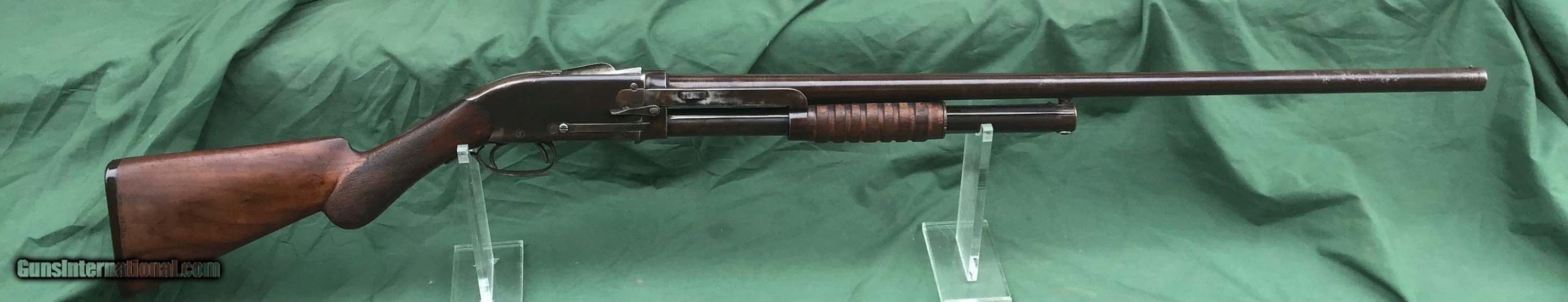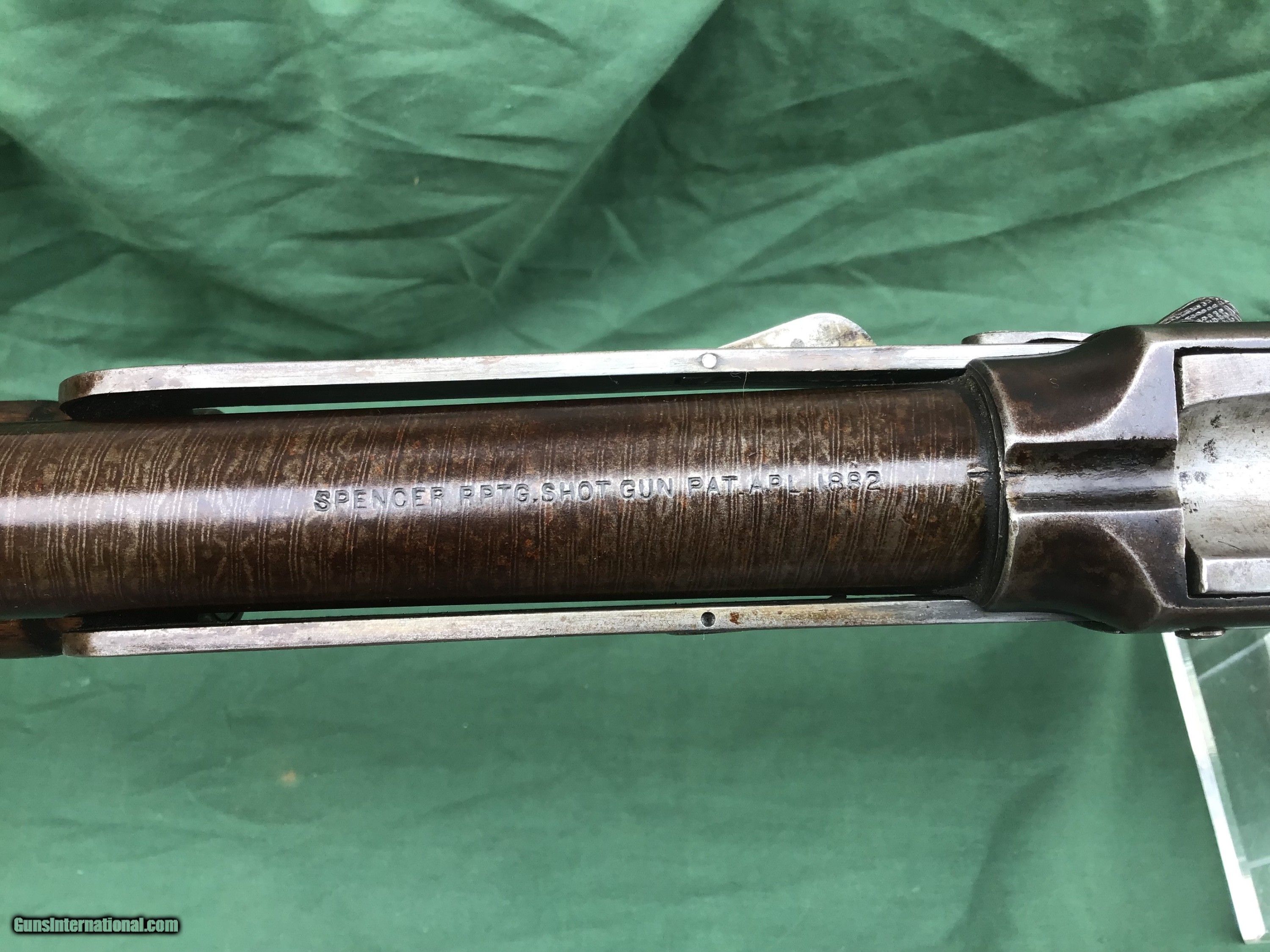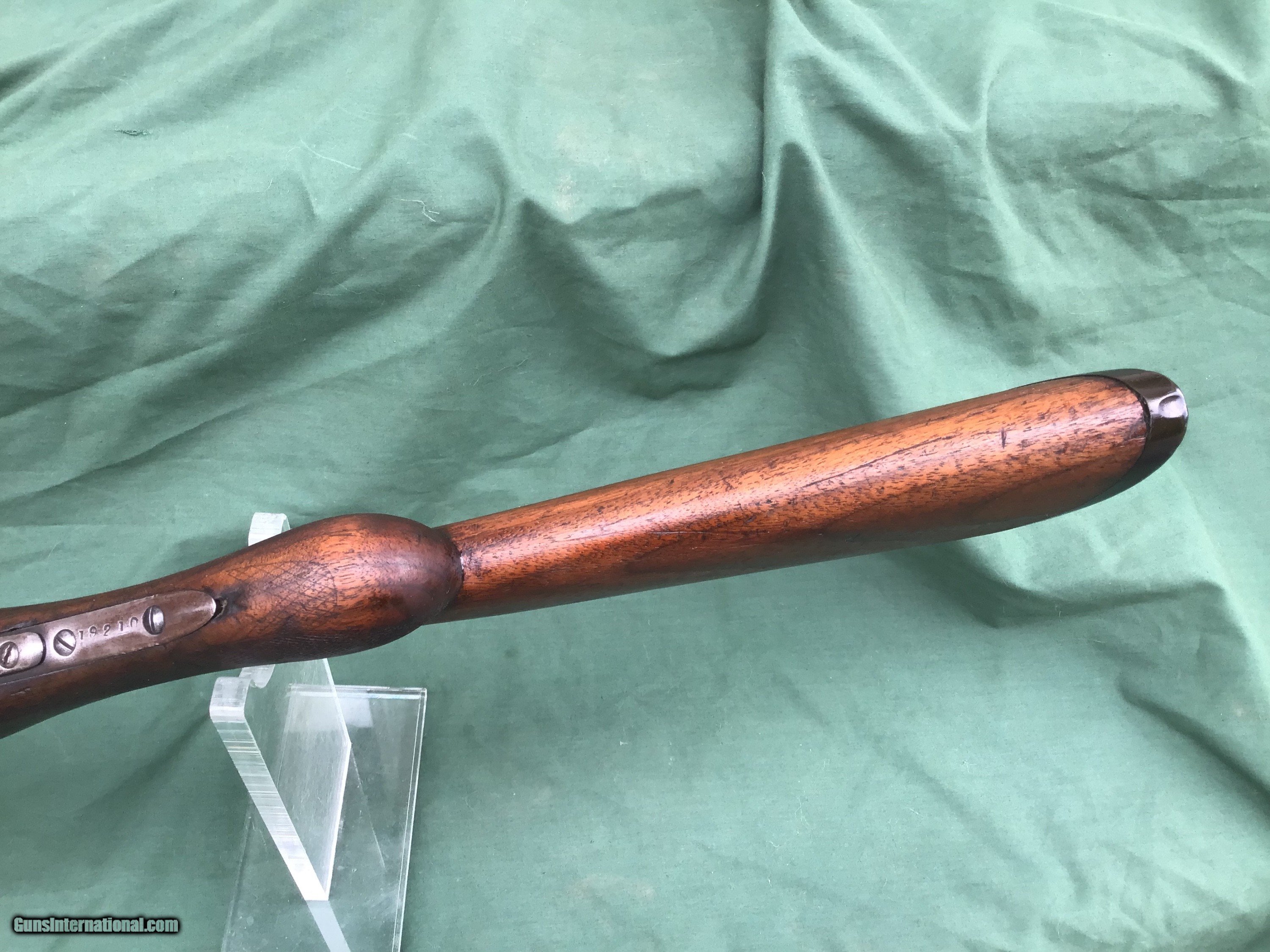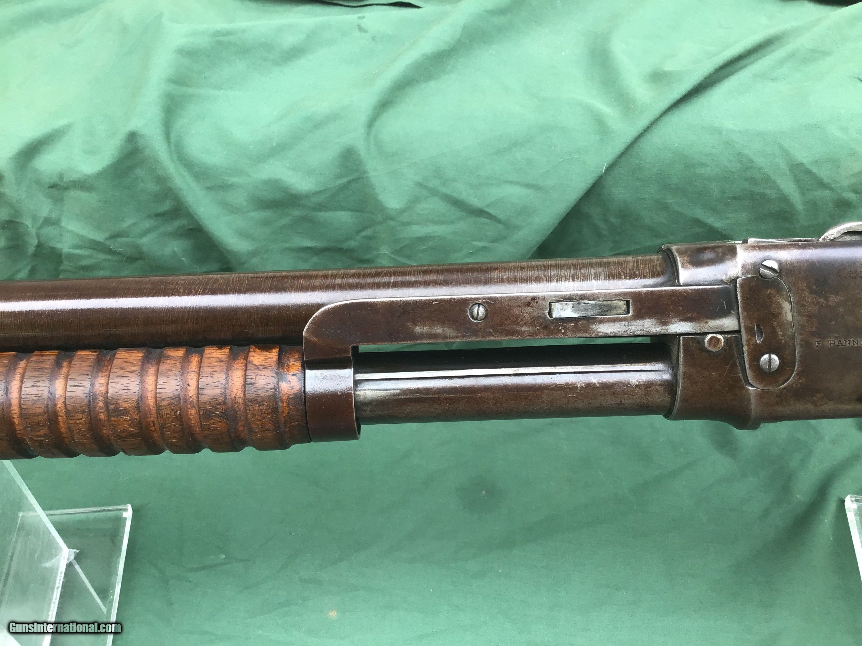 Description: Francis Bannerman Shotgun. 12 gauge with 30" Damascus Barrel. Takedown version. Serial number 19210. Very nice bore. Action functions nicely. I have not tried to take apart. Both forend and buttstock are in good condition, checkered buttstock has a nicely down repair visible on left hand side of wrist (see pictures). Magazine plug is made of brass and has the initials CW inscribed in it (see pic). Barrel retains 80% of it's brown finish on the Damascus pattern. Receiver retains 55-60% of it's original blue. Barrel near muzzle end is showing an area of light pitting (see pic). There is some very interesting articles on how Bannerman acquired the rights from Spencer on this shotgun. Also some good reading on the battle between Winchester and Bannerman. Very rare model shotgun and worthy to be part of any shotgun collectors collection. Must ship to a FFL or Curio and Relics license holder. This shotgun is not warranted safe to shoot because of it's Damascus twist barrel. Sold as a Collectors Item only. Please feel free to contact me with any questions. SOLD Curio/Relic: Yes |