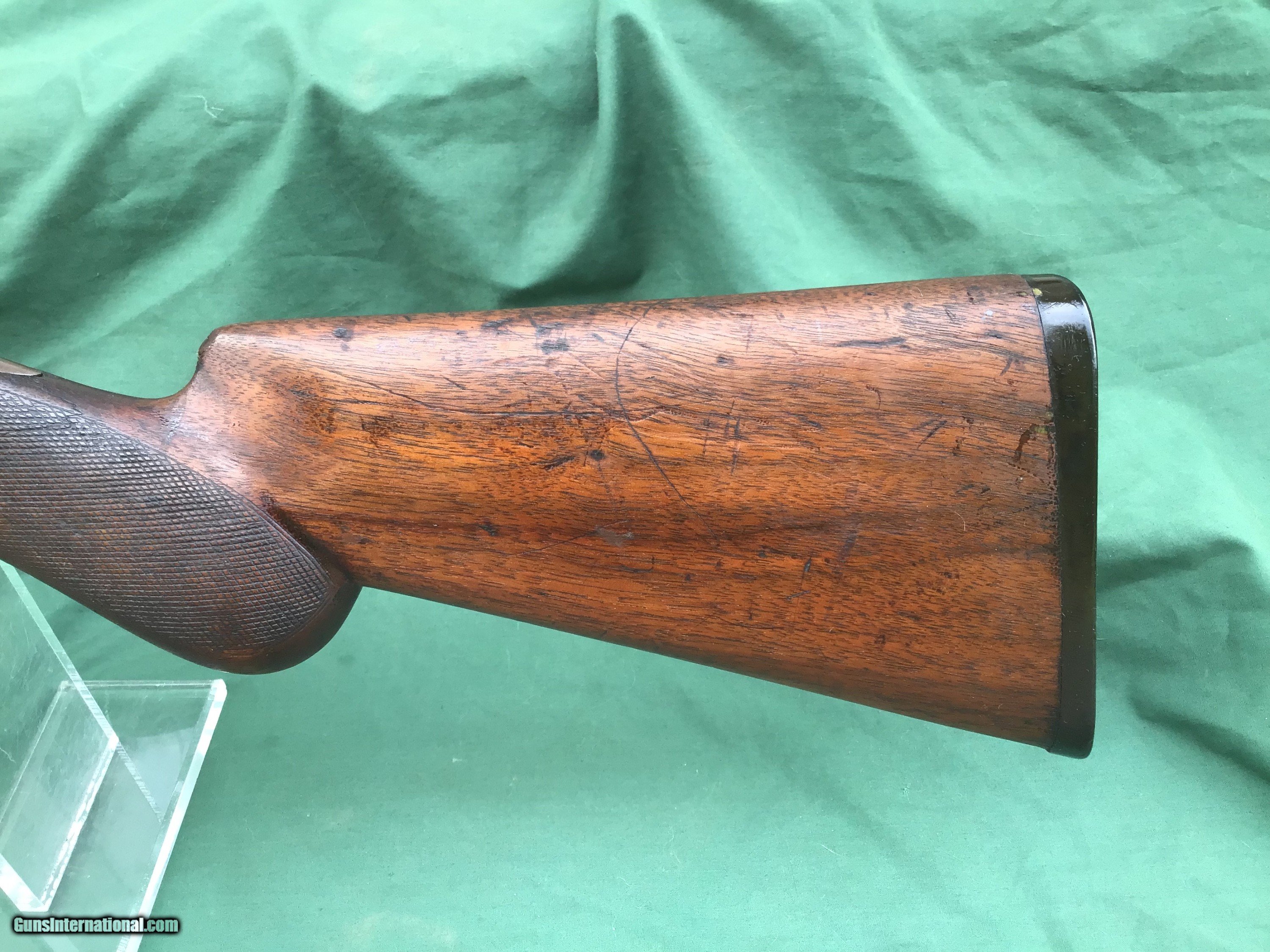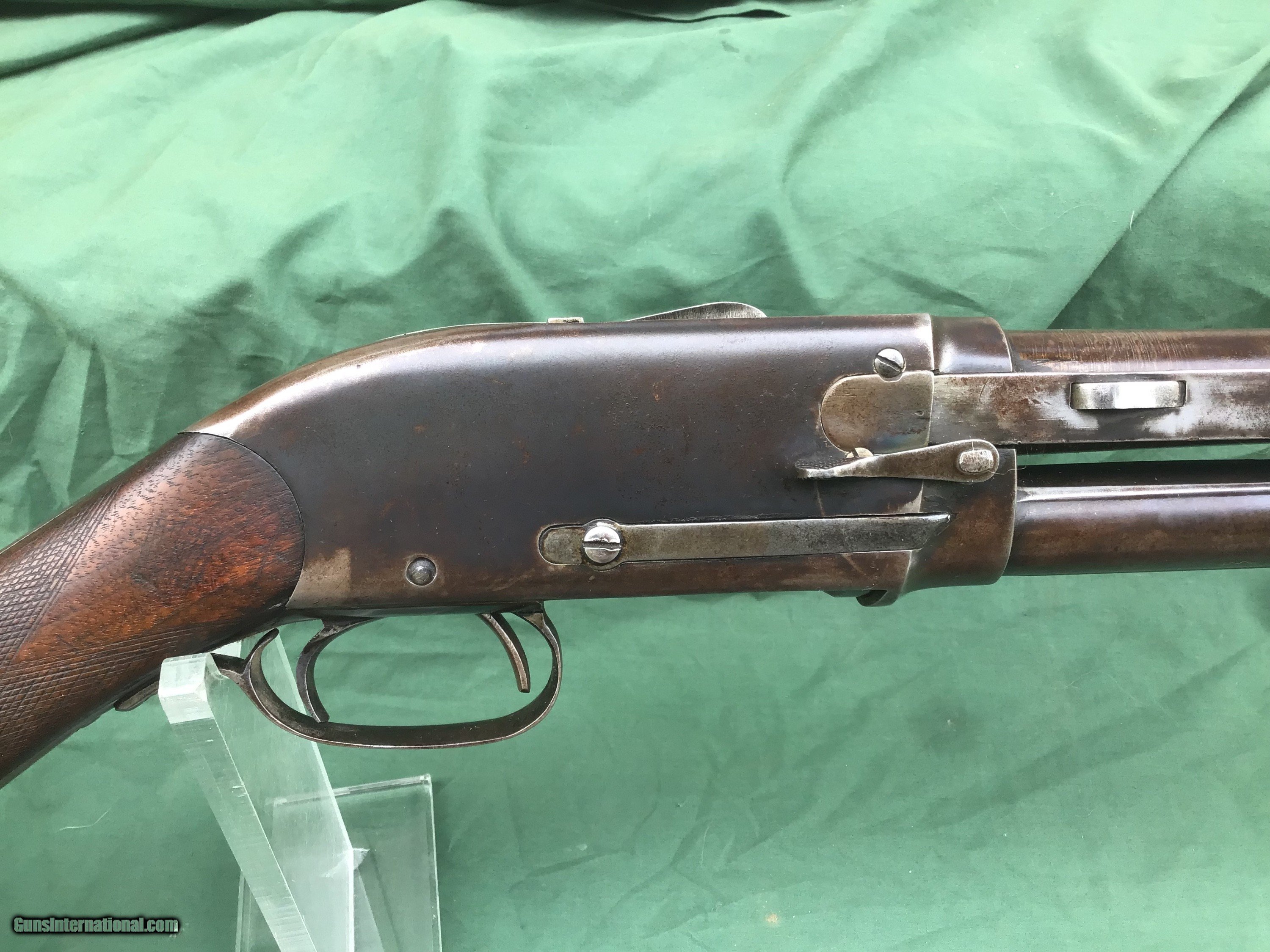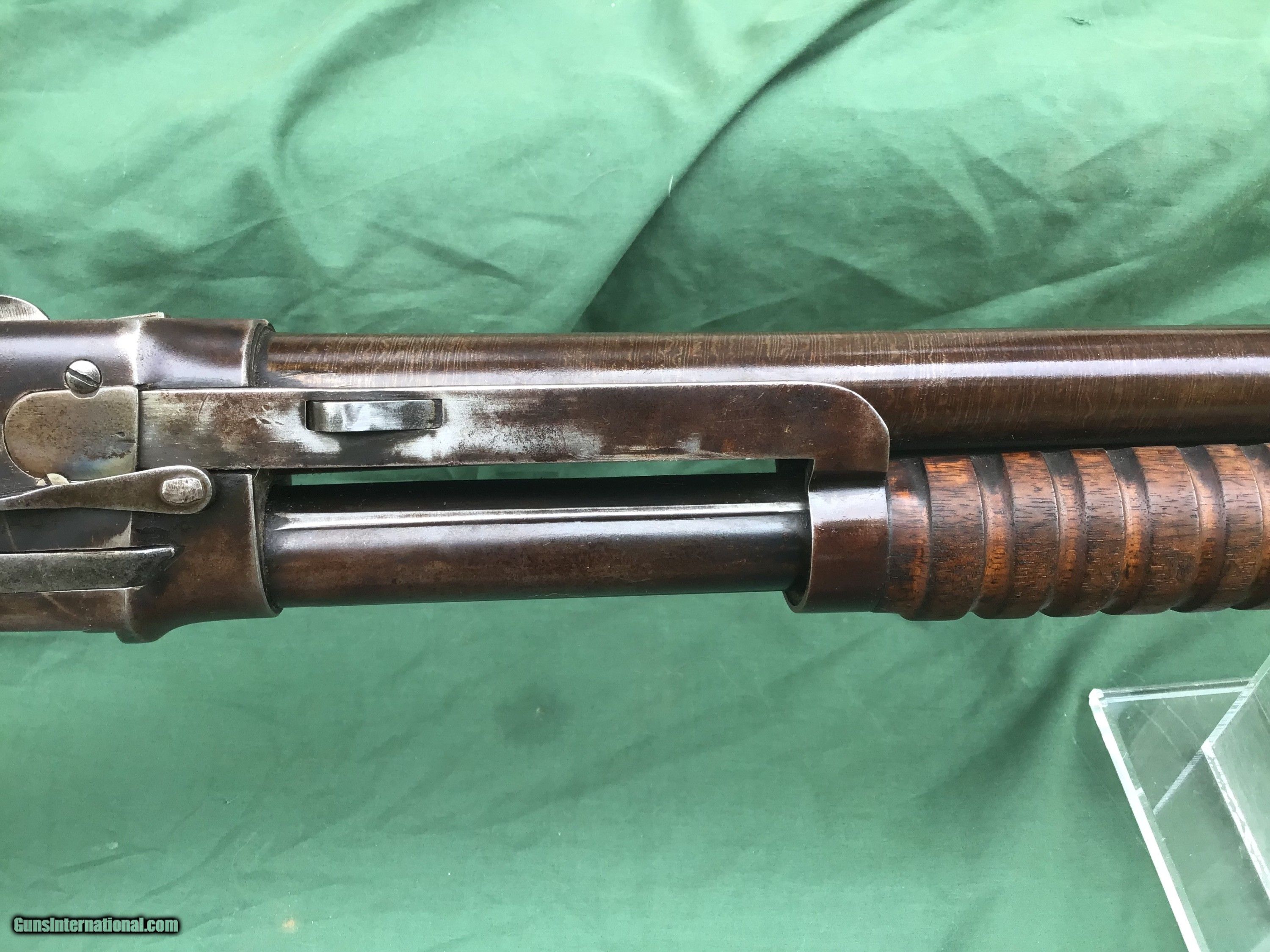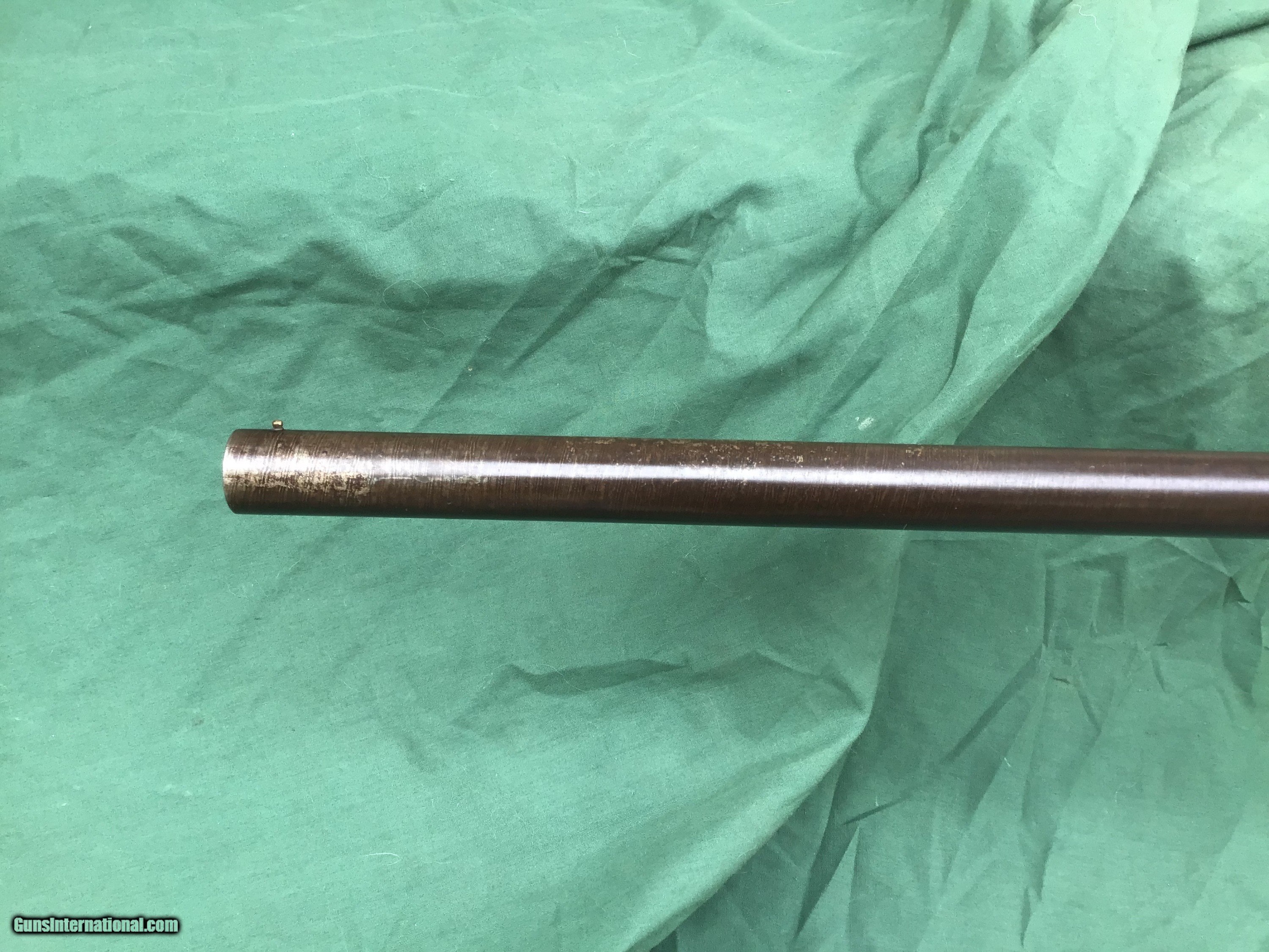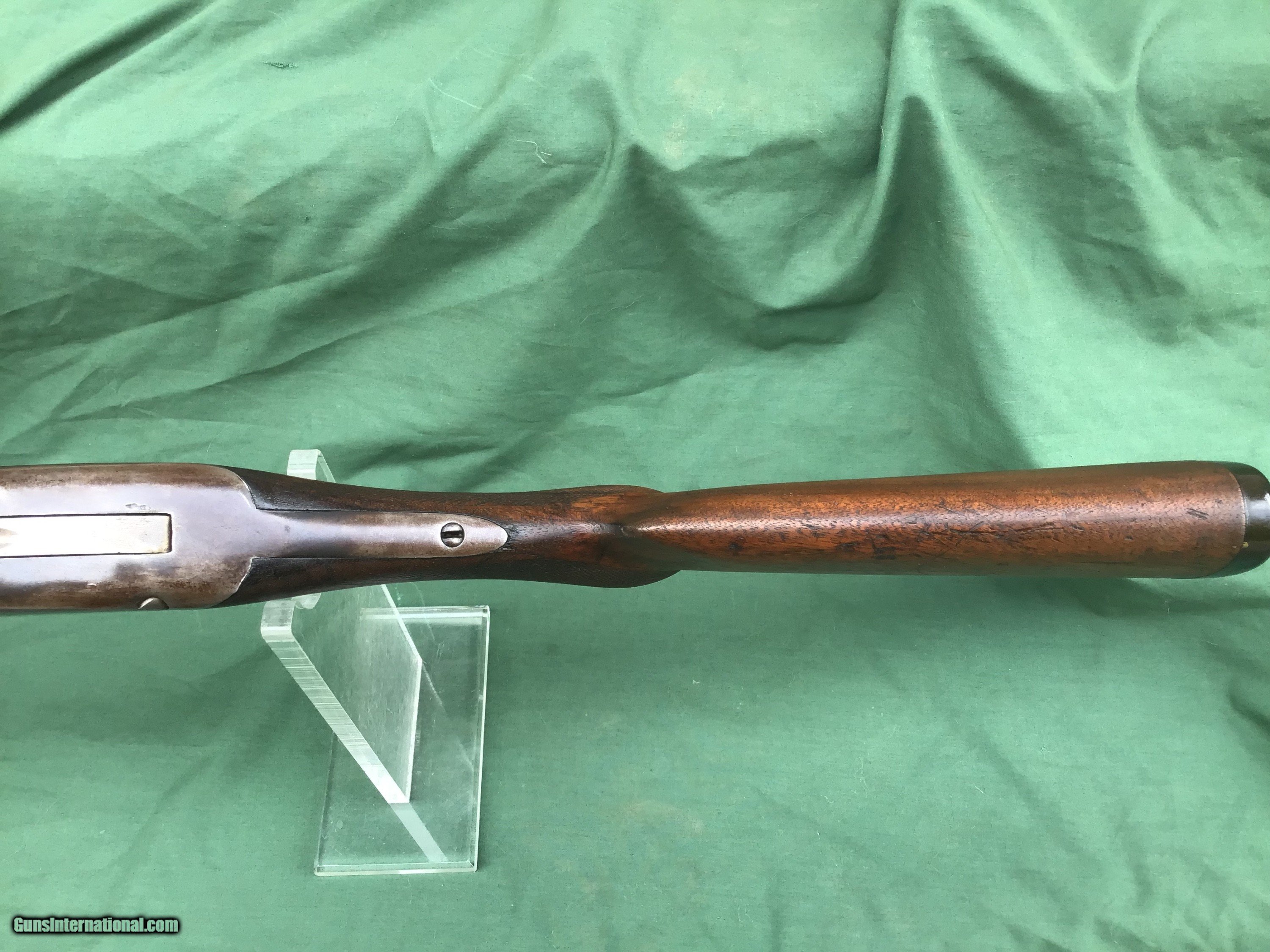 Description: Francis Bannerman Shotgun. 12 gauge with 30" Damascus Barrel. Takedown version. Serial number 19210. Very nice bore. Action functions nicely. I have not tried to take apart. Both forend and buttstock are in good condition, checkered buttstock has a nicely down repair visible on left hand side of wrist (see pictures). Magazine plug is made of brass and has the initials CW inscribed in it (see pic). Barrel retains 80% of it's brown finish on the Damascus pattern. Receiver retains 55-60% of it's original blue. Barrel near muzzle end is showing an area of light pitting (see pic). There is some very interesting articles on how Bannerman acquired the rights from Spencer on this shotgun. Also some good reading on the battle between Winchester and Bannerman. Very rare model shotgun and worthy to be part of any shotgun collectors collection. Must ship to a FFL or Curio and Relics license holder. This shotgun is not warranted safe to shoot because of it's Damascus twist barrel. Sold as a Collectors Item only. Please feel free to contact me with any questions. SOLD Curio/Relic: Yes |