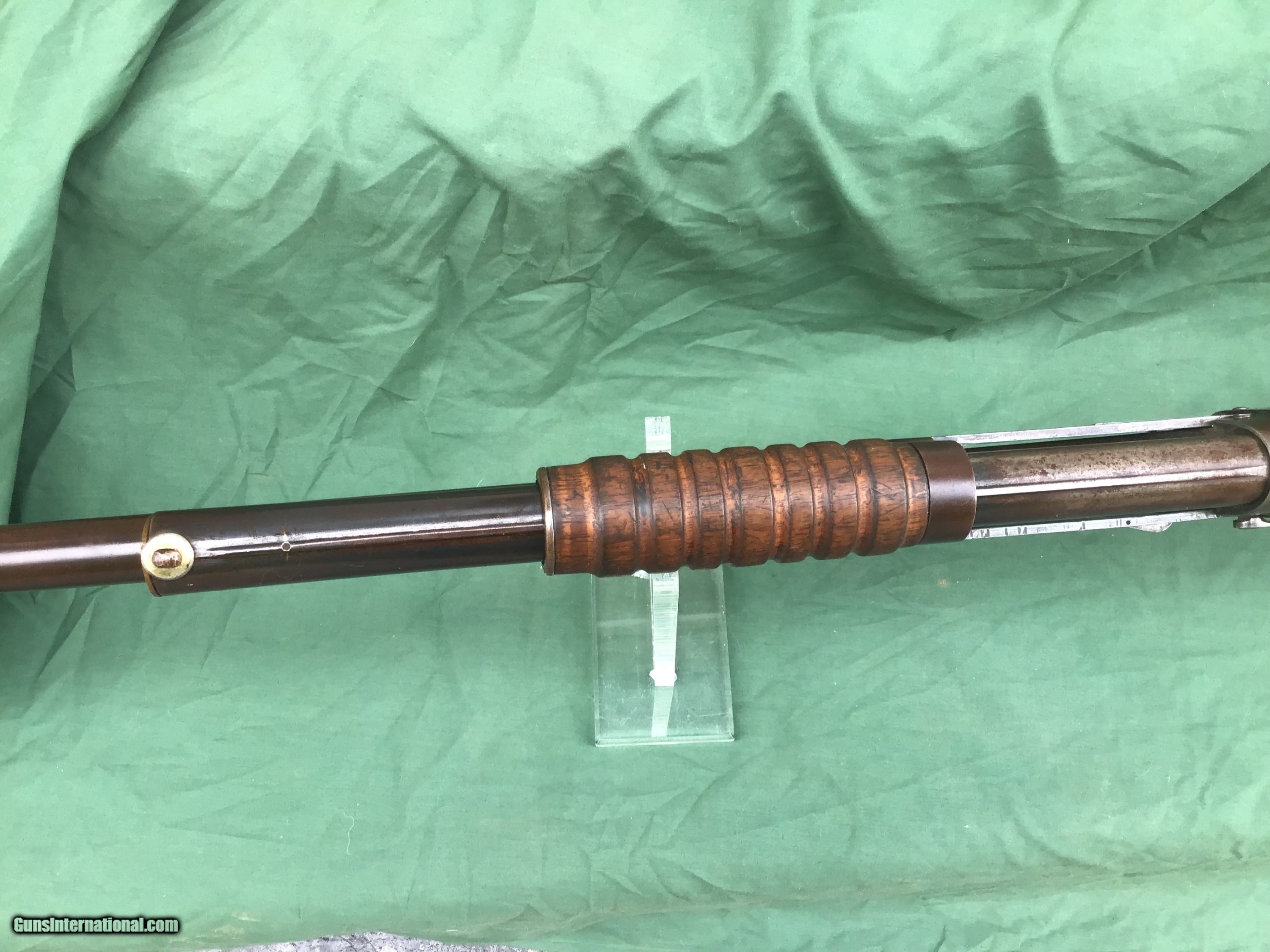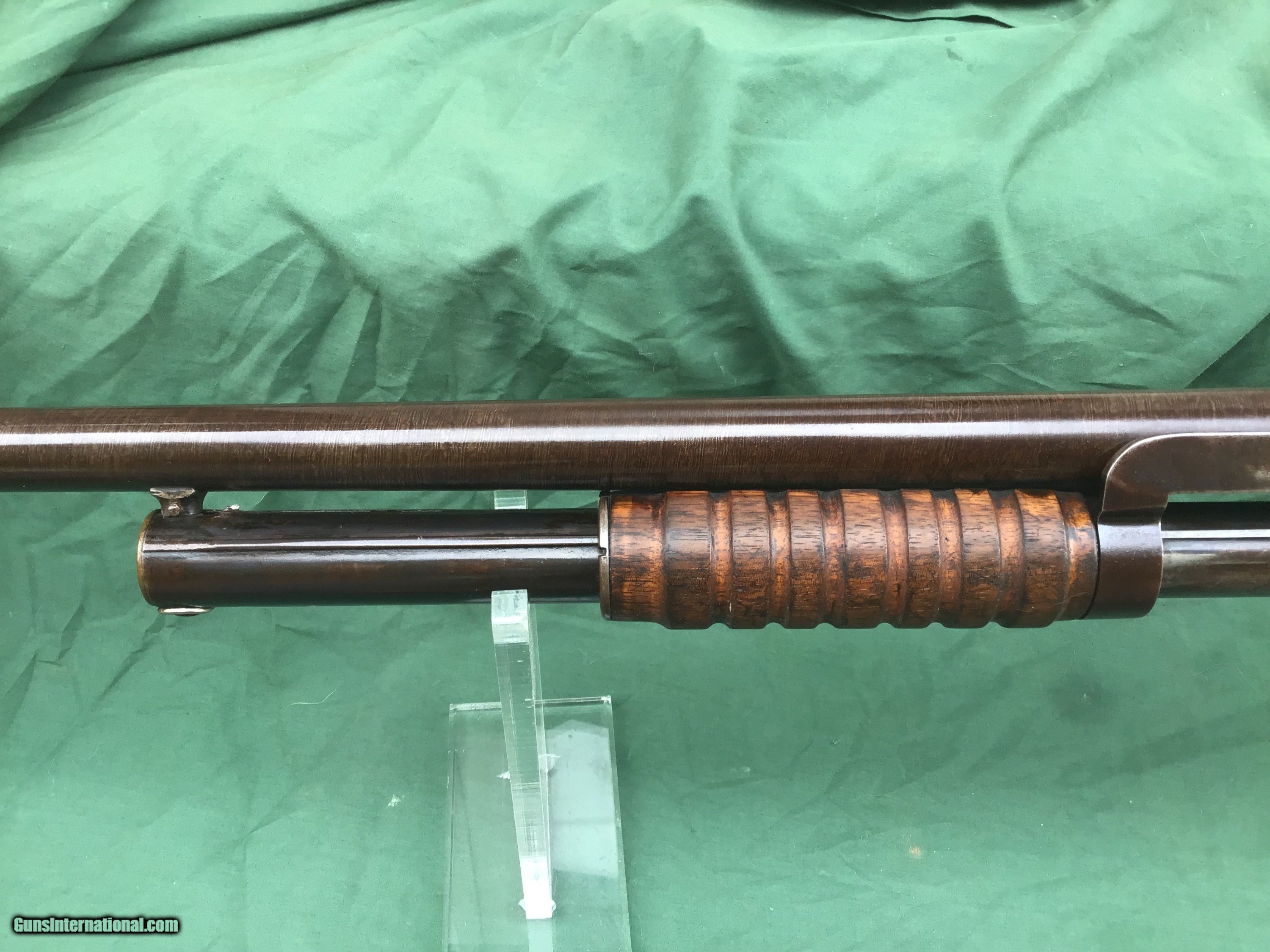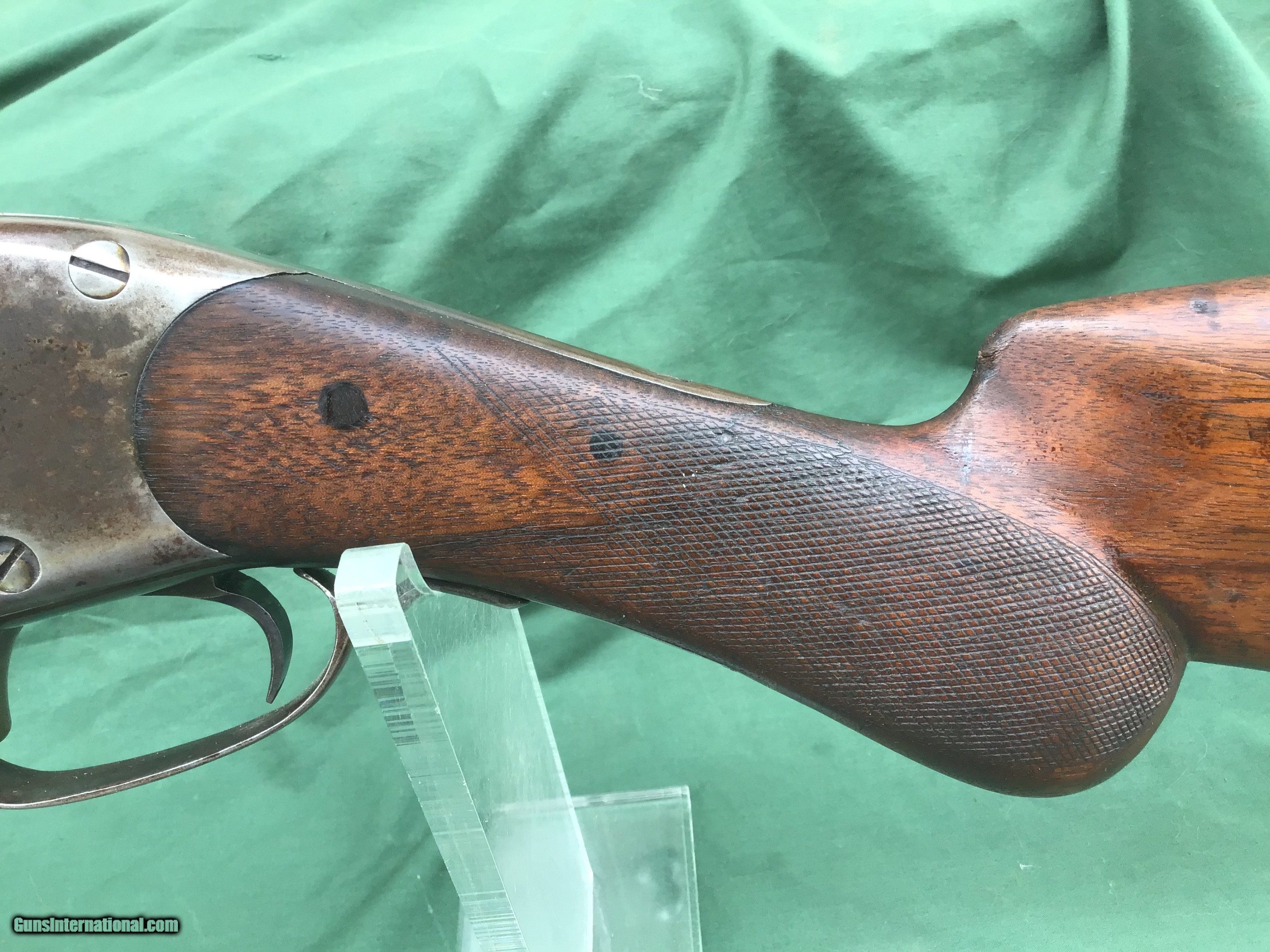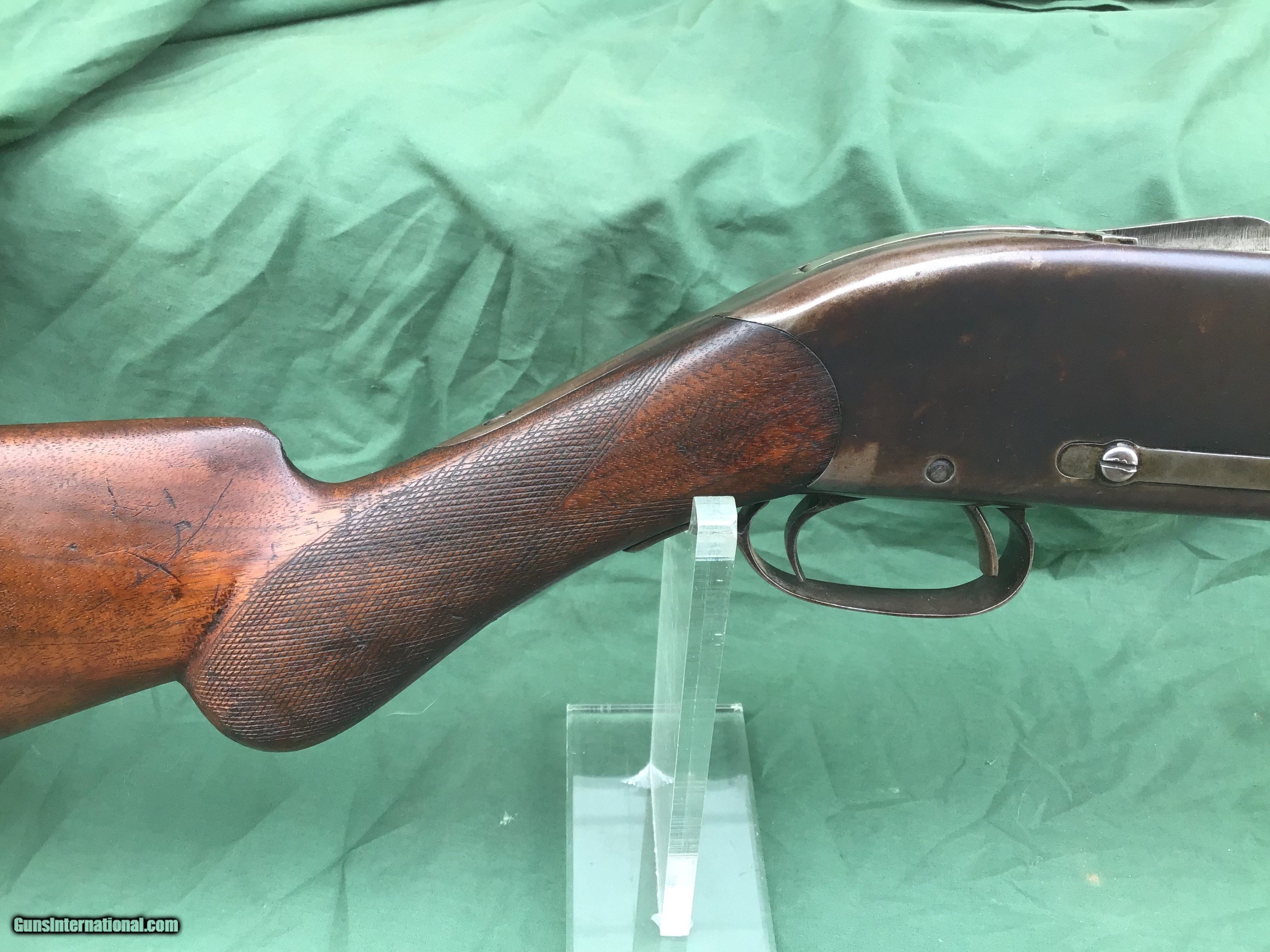 Description: Francis Bannerman Shotgun. 12 gauge with 30" Damascus Barrel. Takedown version. Serial number 19210. Very nice bore. Action functions nicely. I have not tried to take apart. Both forend and buttstock are in good condition, checkered buttstock has a nicely down repair visible on left hand side of wrist (see pictures). Magazine plug is made of brass and has the initials CW inscribed in it (see pic). Barrel retains 80% of it's brown finish on the Damascus pattern. Receiver retains 55-60% of it's original blue. Barrel near muzzle end is showing an area of light pitting (see pic). There is some very interesting articles on how Bannerman acquired the rights from Spencer on this shotgun. Also some good reading on the battle between Winchester and Bannerman. Very rare model shotgun and worthy to be part of any shotgun collectors collection. Must ship to a FFL or Curio and Relics license holder. This shotgun is not warranted safe to shoot because of it's Damascus twist barrel. Sold as a Collectors Item only. Please feel free to contact me with any questions. SOLD Curio/Relic: Yes |