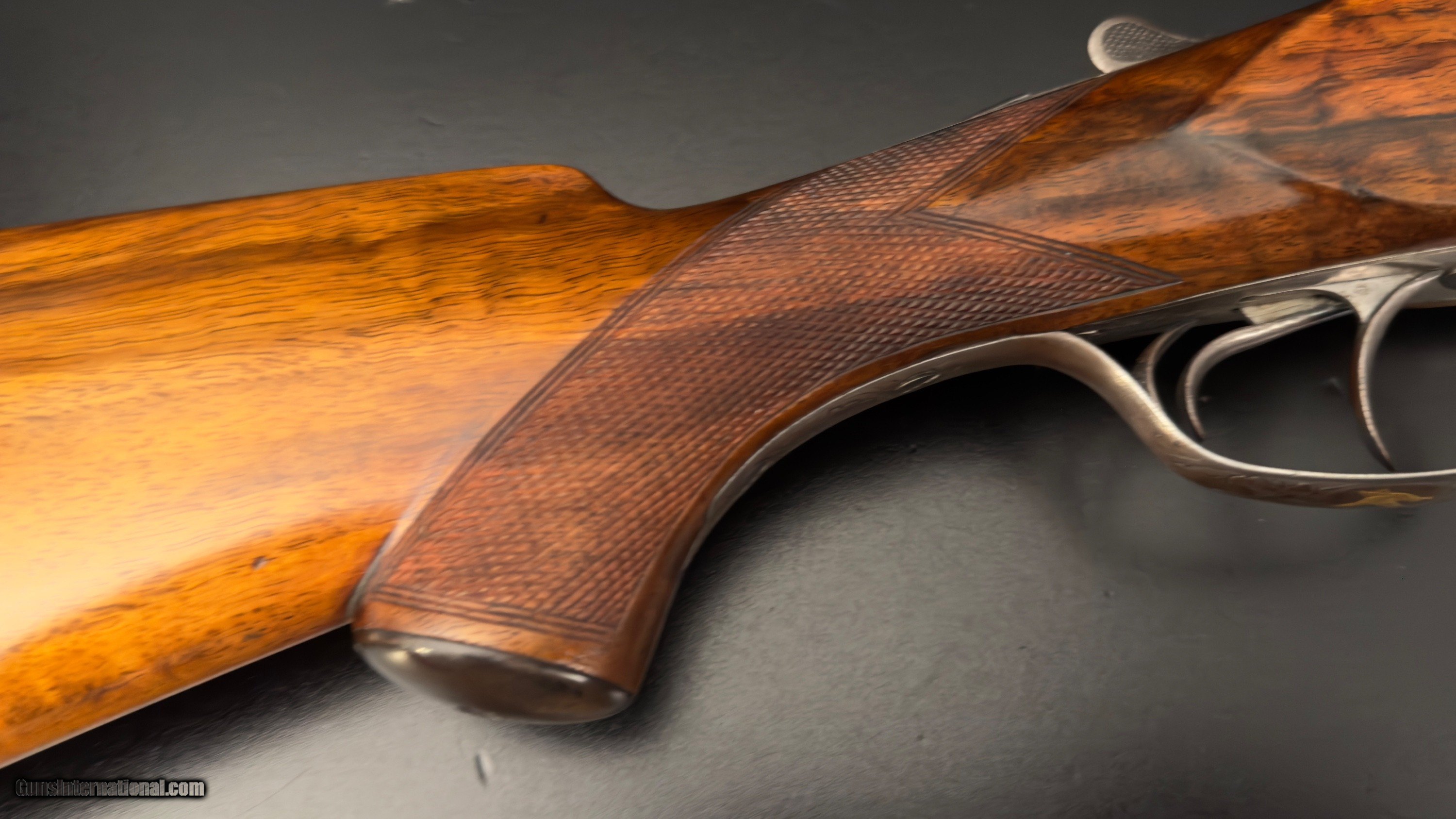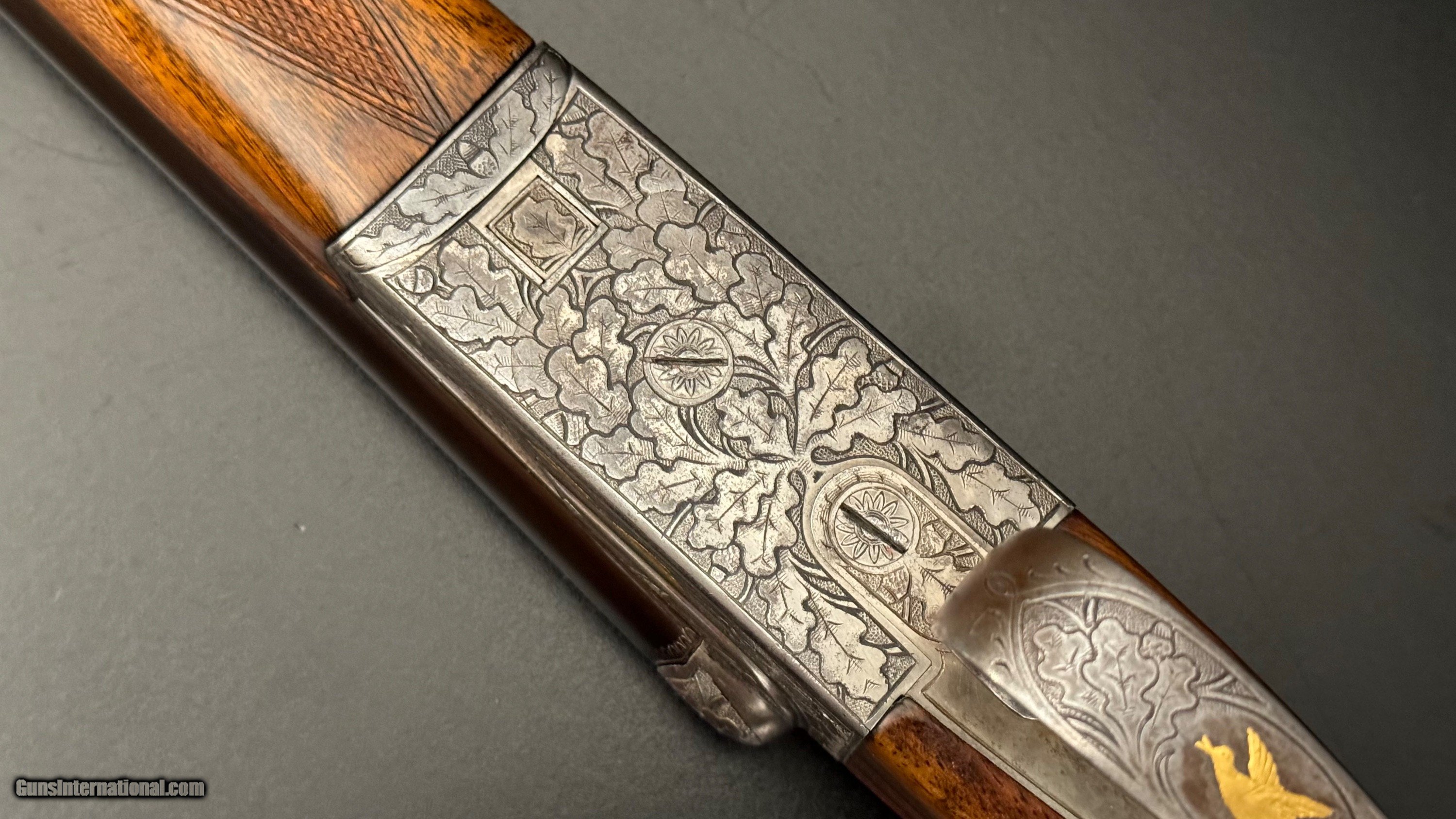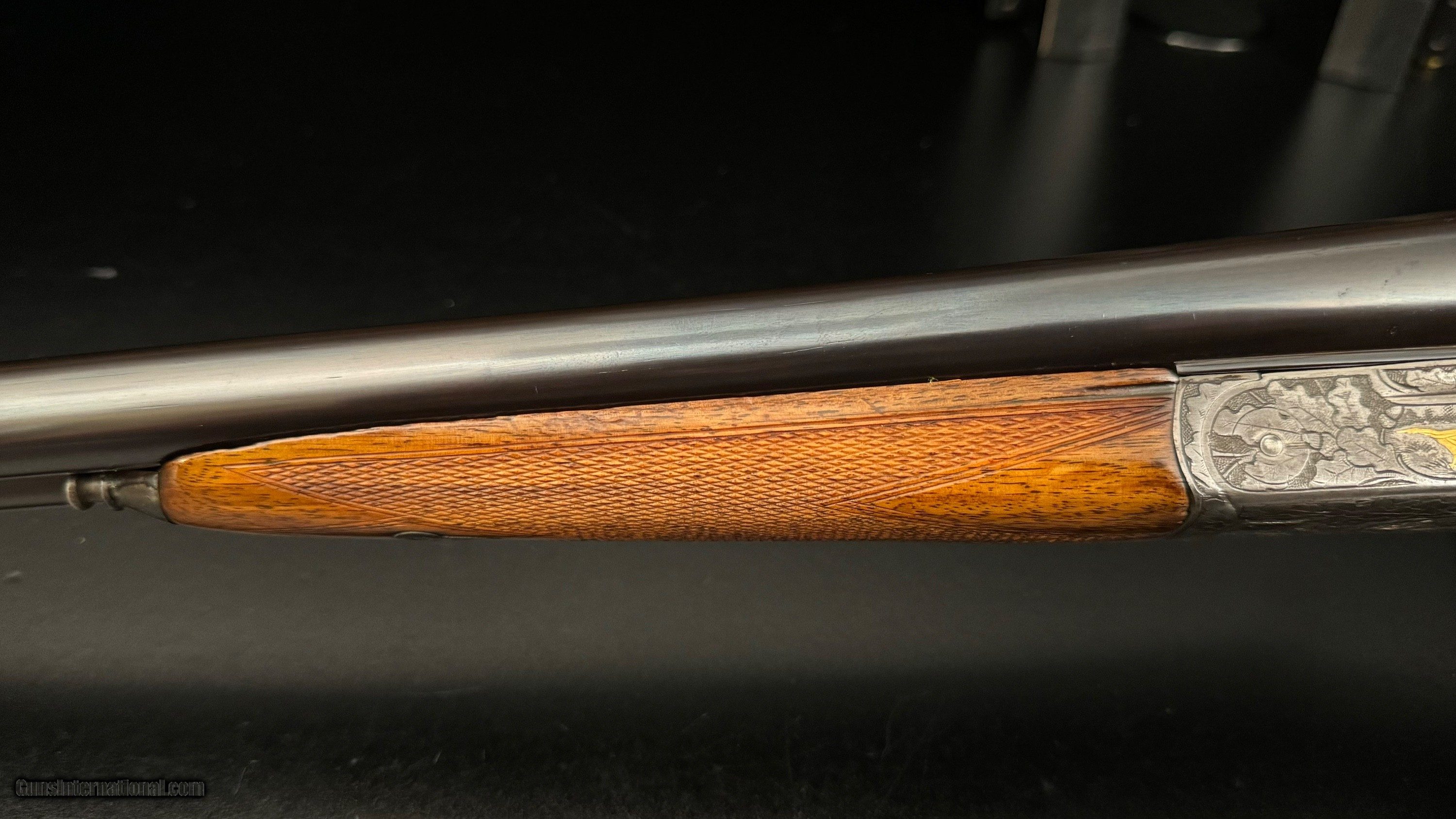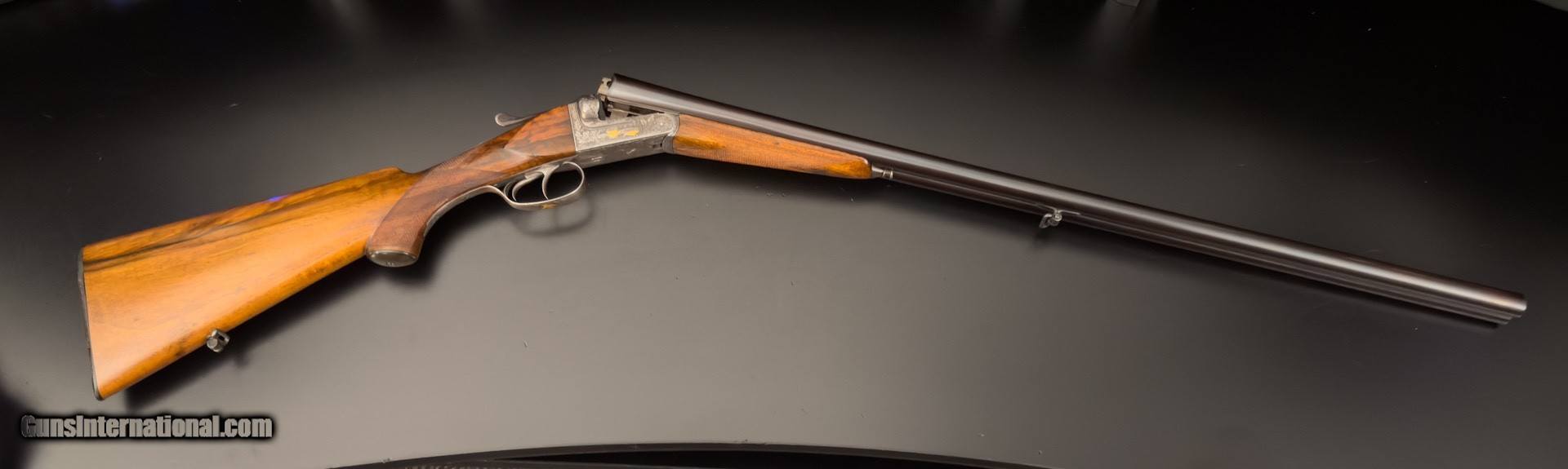 Description: Looking to sell a RARE J.B. Ronge Fils A Liege 16GA Engraved SxS Double Barrel Shotgun. This GORGEOUS shotgun is in used condition and features 29 5/8" barrels chambered in (65mm) 2 1/2", two triggers, checkered walnut stock / forend, steel bead front and mid sights, original butt plate and grip cap both appear to be made out of some type of horn. Both barrels are marked "17.0 168" which is (not sure on choke size), although according to my research, I think they are both equal to "Light Full" fixed chokes. The (16-65) at the end of the barrel represent 16 gauge, 65mm chamber - you need a 70mm chamber to safely shoot modern day shells. DO NOT consider shooting this until you have the information verified by a good gunsmith that knows shotguns and how to read proof marks. Serial #65888 and proof code "italic ( i )" - dates it to1930. OAL - 46", LOP 1st trigger 14.5", LOP 2nd trigger 13.5" There is a small ding on the barrel on the left side, where it must have hit something, but does not effect the internals as both bores appear to be clean and rust free. The detailed oakleaf engraving with gold inlays is a work of art and speaks for itself. This shotgun retains 95% of its bluing on the barrels. The wood has some light dings and scratches, but no cracks. ALL original matching numbers and proper...this shotgun is a must-have for any collector or gun enthusiast. Please see all pics and you be the judge! Note: ALL SALES ARE FINAL, with the exception of 3-day inspection period for USED guns. Buyer pays $100 shipping & insurance to lower 48 States. PAYMENT: Cashiers Check, USPS Money Order or Personal Check only, unless pre approved by me. Payment is expected within 7 business days, not including weekends or holidays. Warranty/Inspection Period: All firearms should be checked over by your Gunsmith prior to being shot or handled. PLEASE know your own state and local laws prior to purchasing. NO sales to CA or where illegal. I will ship your firearm out via FedEx Ground from my FFL Dealer to your FFL Dealer once payment is received and cleared. Insurance IS INCLUDED in the shipping price. Should you have any questions, please feel free to email me. Thanks SOLD Shotgun Gauge: 16 Gauge Manufacturer: J.B. Ronge Serial Number: 65888 Barrel Length: 29 5/8 Condition: Very Good LOP: 14.5 / 13.5 Manufacture Date: 1930 |