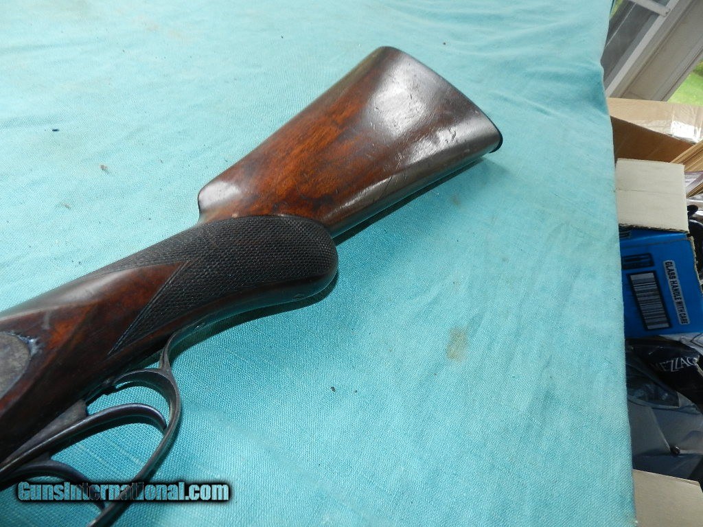 Description: A good vintage 12ga double hammer 12ga. shotgun with 30" long of laminated steel and the chokes are right:M and the left:IM, and the bores are shiny and clean. The chambers are for the 2 9/16" black powder shell.The French walnut is clean and has fine hand checkering, and the LOP with a fancy figural steel buttplate is 14 1/2". Hammers are marched and work well. Overall a very clean gun not abused. When buying a gun always have it examined by a competent gunsmith before shooting. To buy a gun from me you must get a direct email for me, with details, and shipping cost. We don’t have a web site .I prefer money orders or a check. Item ships when funds come in. I try to keep guns affordable, which means I make less money than most dealers. You won’t get altitude sickness, or nose bleed, with my prices! I consistently have the best selection of older guns If you attempt to buy, you must still contact us for details . Best to email to buy. Sometimes a local person can stop buy and purchase before the gun is removed. Sometimes not home to get calls. Some guns are required shipment to a gun dealer near you for a transfer to you when it arrives. Otherwise many older or black powder guns ship to your door. With the widest selection of older guns at great prices, We don’t have a store, and sell on the internet only. I’m easy to get along with. Thank You SOLD |