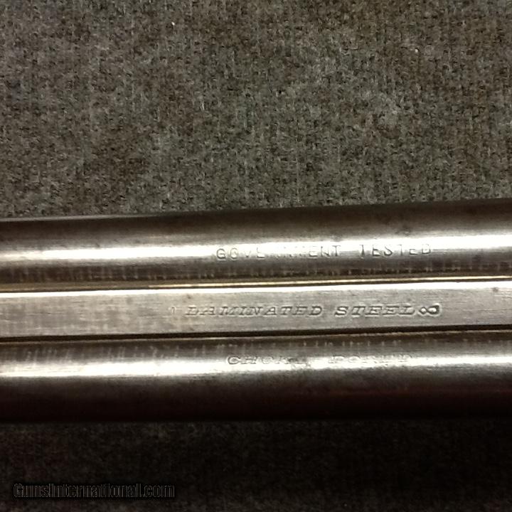 Description: Belgian proofed 20 gauge double hammer gun marked J. Manton and co. It has original 26" length Damascus barrels choked cylinder and full (.020"). The bores are shiny, no dents, and only minor light corrosion. The action is tight and the rebounding hammer locks function perfectly. Metal surfaces are original with normal finish fading. The wood has been lightly refinished, but has not been sanded. Weight is about 6.5 pounds. Please see the photos to determine actual condition. This is a black powder weapon and must be inspected by a qualified gunsmith prior to use. Shipping will be $35.00 Certified checks or PO money orders accepted. SOLD Curio/Relic: Yes Gauge Info: 20 Weight: 6.5 lbs. |