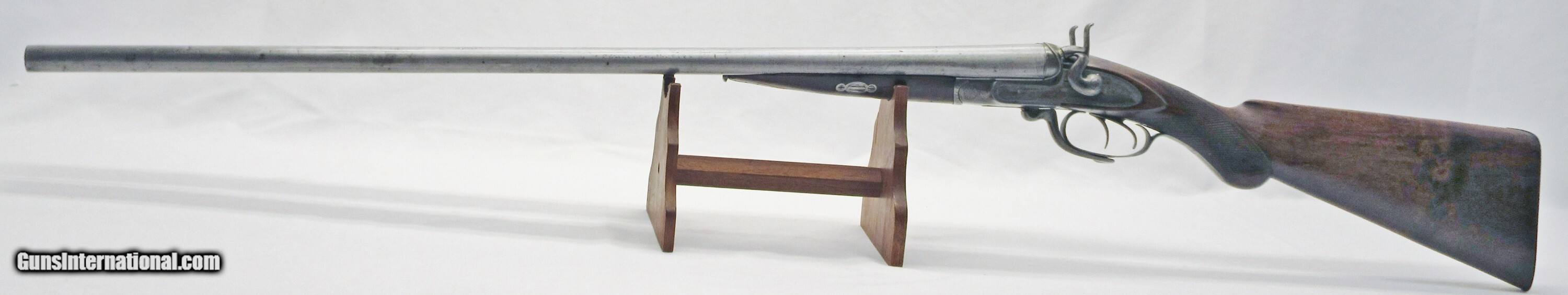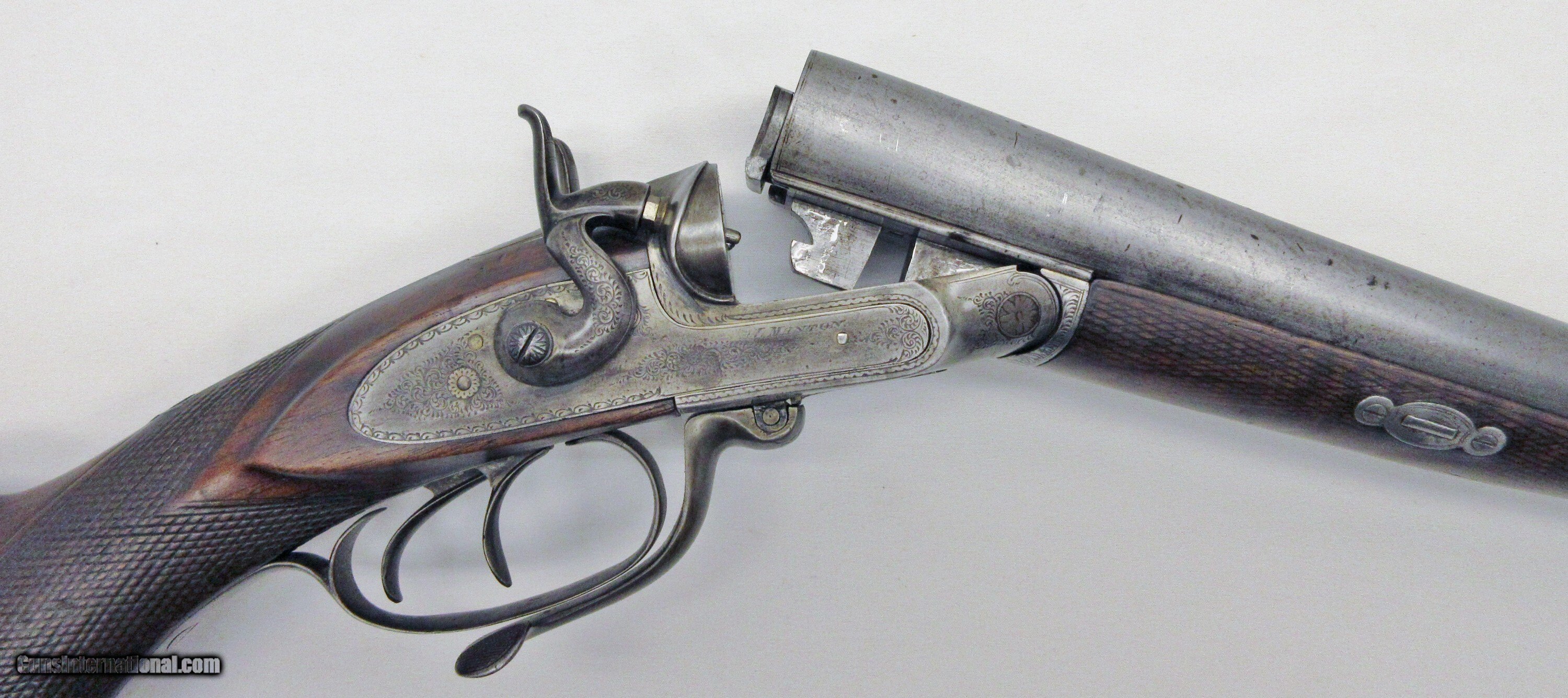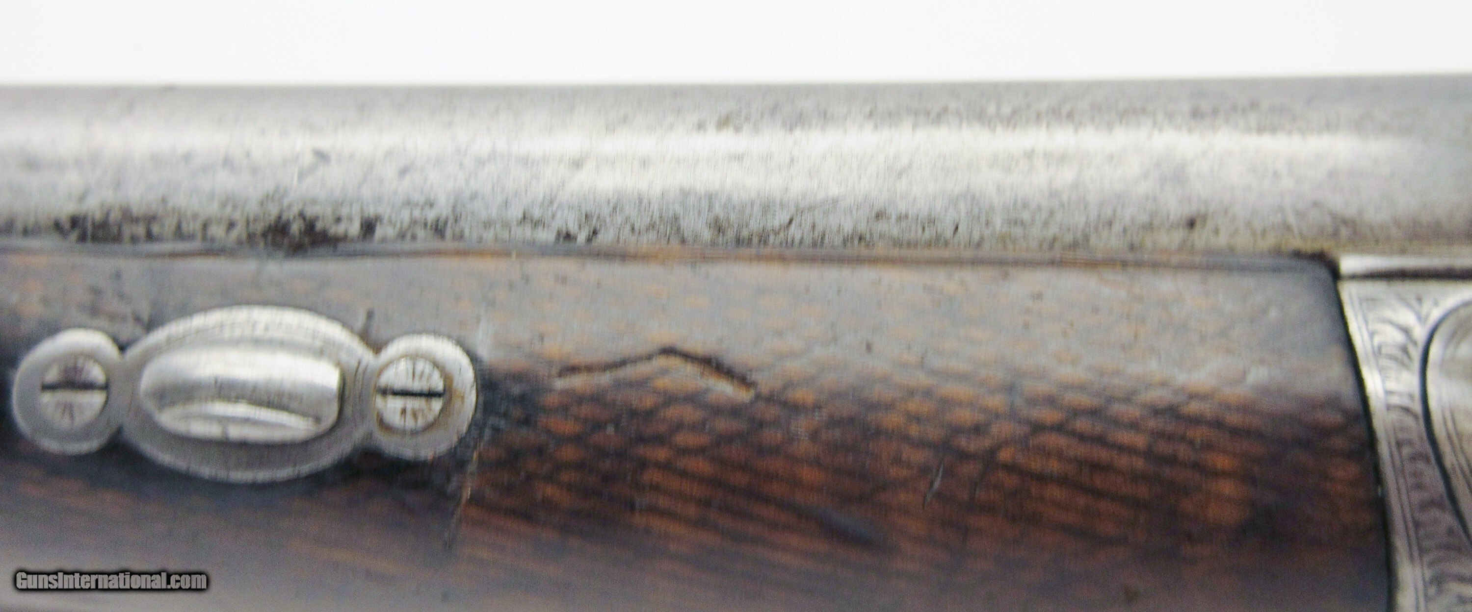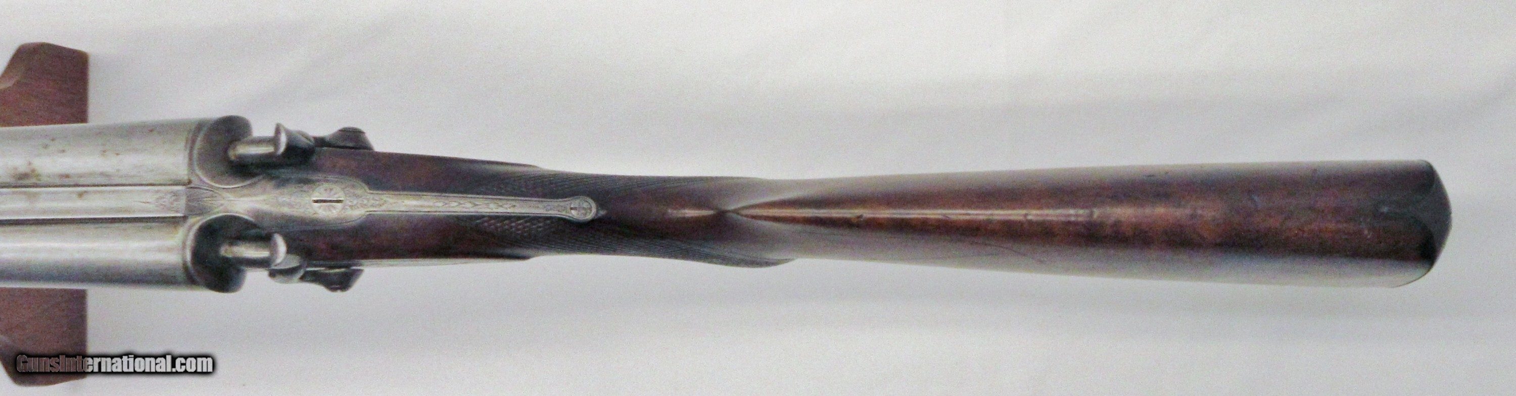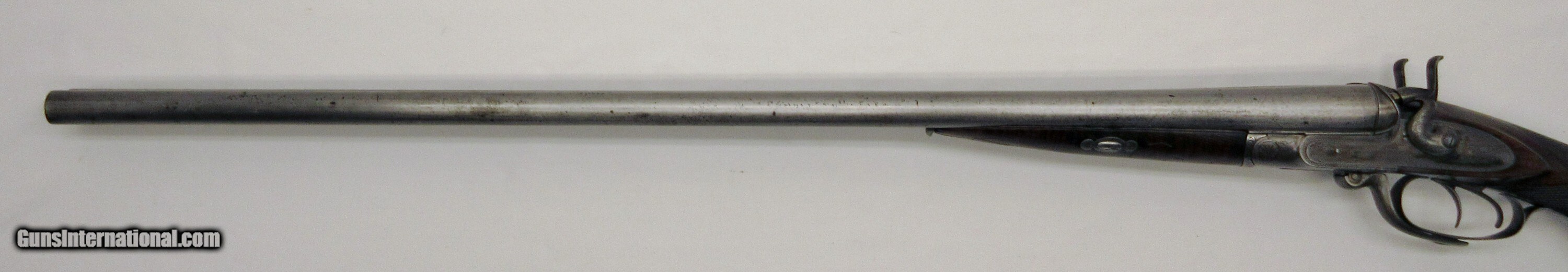 Description: This original Joseph Manton 12 Ga Double Hammer Underlever Shotgun made before 1898 has 30” tapered round barrels with a brass bead front sight. Stamped on the rib is “J Manton Regent St London”. The barrels bear the Black Powder and English proof marks. Both barrels have lost their finish and have minor usage marks. The bores are in fair to good condition with minor pitting in a few areas on both barrels. The right barrel has two dents and the left barrel also has two dents, all of which can be seen on the inside of the bores. The checkered P grade English Walnut pistol grip buttstock and forend are fitted to the underlever action which has retained scattered patches of color case hardening. All metal parts bear simple but tasteful engraving including J Manton inscribed on the lock plates. The action locks up tight; with smooth operation. This shotgun is overall in good condition. The length of pull is 13-1/4” left trigger and 14” right trigger. Overall length is 46-1/2”, weight is 7.6 lbs. Our stock number is P-37-31. Will ship to anywhere in the United States, Buyer pays freight and insurance. Antique: Yes Shotgun Gauge: 12 Gauge Manufacturer: J Manton Model: Dbl - Underlever Barrel Length: 30 Bore Info: Smooth Condition: Good Metal Condition: Fair to Good Wood Condition: Good Bore Condition: Fair to Good Barrels: 2 Barrel Type: Black Powder Proofs Action: Dbl Barrel Triggers: 2 Stock: English Walnut LOP: 14 Weight: 7.3 lbs Sights: Gold Bead Engraving: Yes Item Location: Springfield,OR Proof:Black: Yes Price: $525.00 Buy Now Contact Seller |