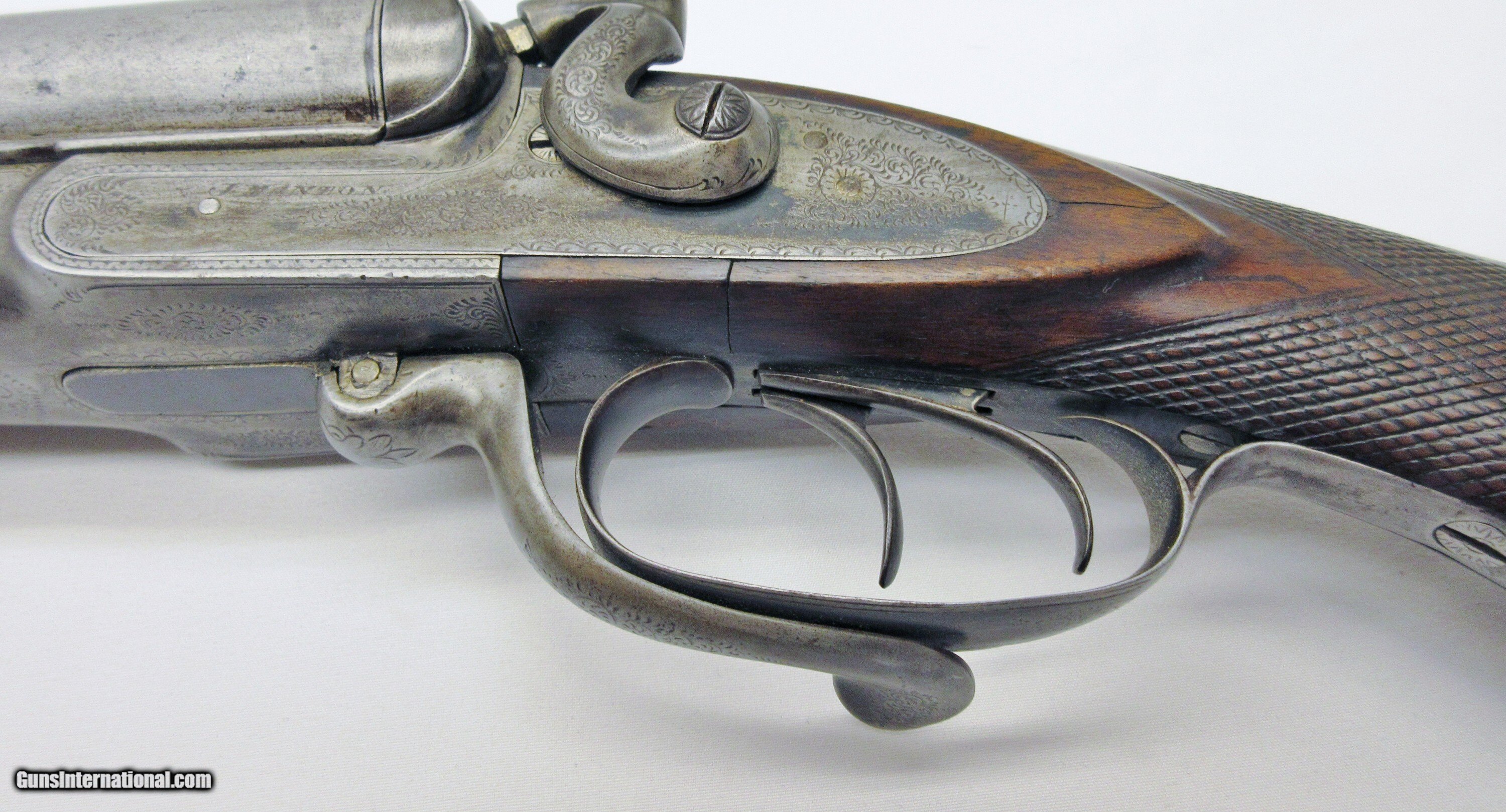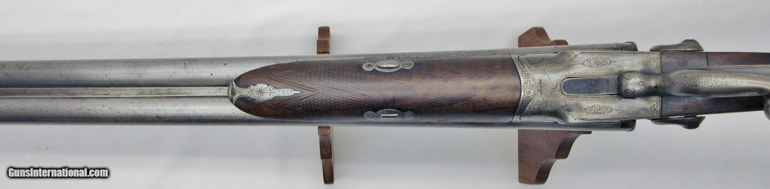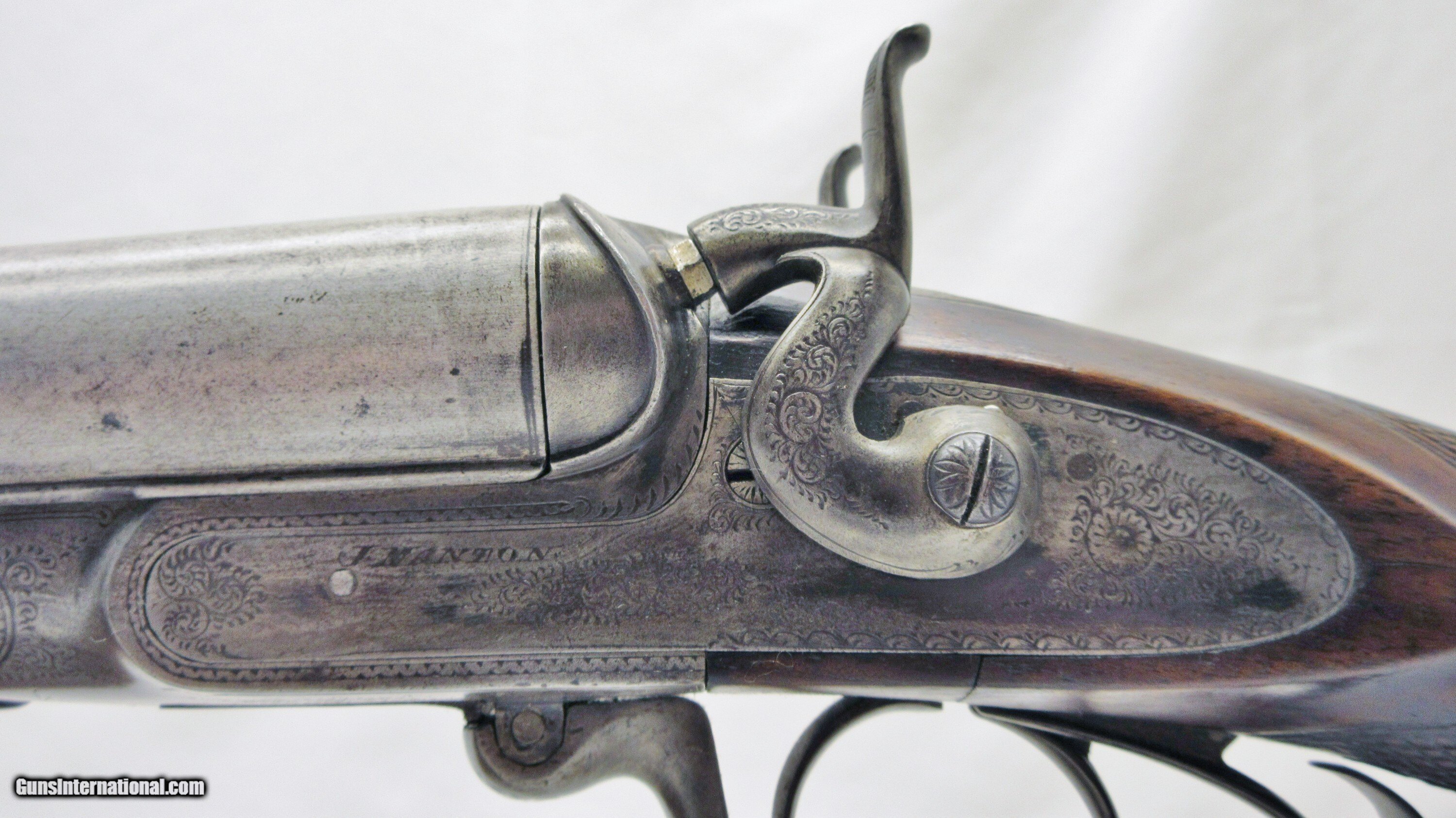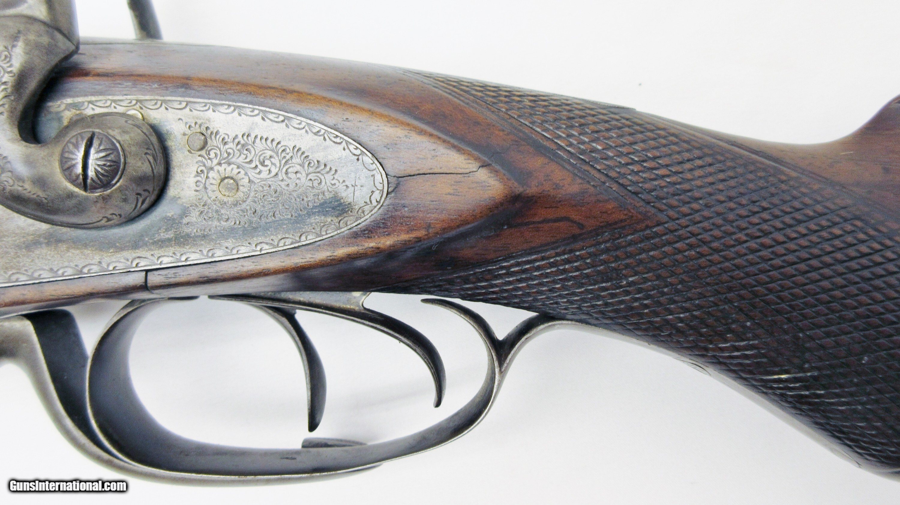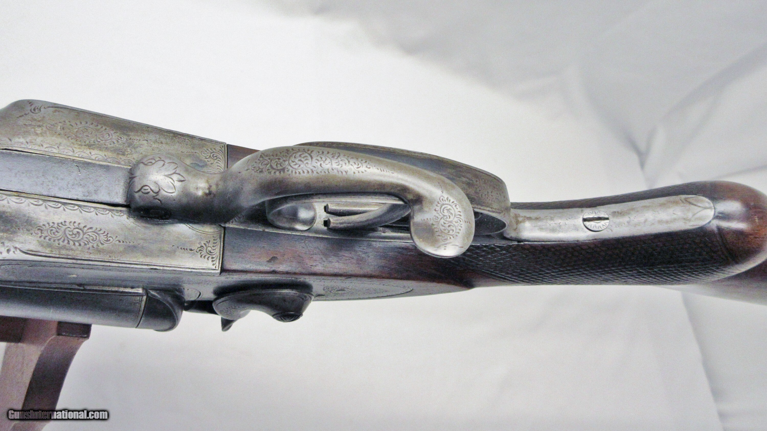 Description: This original Joseph Manton 12 Ga Double Hammer Underlever Shotgun made before 1898 has 30” tapered round barrels with a brass bead front sight. Stamped on the rib is “J Manton Regent St London”. The barrels bear the Black Powder and English proof marks. Both barrels have lost their finish and have minor usage marks. The bores are in fair to good condition with minor pitting in a few areas on both barrels. The right barrel has two dents and the left barrel also has two dents, all of which can be seen on the inside of the bores. The checkered P grade English Walnut pistol grip buttstock and forend are fitted to the underlever action which has retained scattered patches of color case hardening. All metal parts bear simple but tasteful engraving including J Manton inscribed on the lock plates. The action locks up tight; with smooth operation. This shotgun is overall in good condition. The length of pull is 13-1/4” left trigger and 14” right trigger. Overall length is 46-1/2”, weight is 7.6 lbs. Our stock number is P-37-31. Will ship to anywhere in the United States, Buyer pays freight and insurance. Antique: Yes Shotgun Gauge: 12 Gauge Manufacturer: J Manton Model: Dbl - Underlever Barrel Length: 30 Bore Info: Smooth Condition: Good Metal Condition: Fair to Good Wood Condition: Good Bore Condition: Fair to Good Barrels: 2 Barrel Type: Black Powder Proofs Action: Dbl Barrel Triggers: 2 Stock: English Walnut LOP: 14 Weight: 7.3 lbs Sights: Gold Bead Engraving: Yes Item Location: Springfield,OR Proof:Black: Yes Price: $525.00 Buy Now Contact Seller |