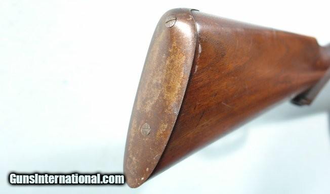 Description: J.P. CLABROUGH & BROS. 10GA. HIGH HAMMER 31" DAMASCUS BACK ACTION SHOTGUN, CIRCA 1872. Antique. Serial number "147" and all matching. 31" damascus barrel with London address. Correct proofs under barrel. Back action island locks with crisp factory engraving never having been refinished with traces of original case colors on both locks. Same on both original high hammers(matching). Round body action locks up tight as day it was made with NO play in action. Very little used at all. Original wood with no structural anomolies and crisp original checkering and stock finish. Original steel buttplate and pistol grip cap(typical of American export style). Shield shaped escutcheon plate un-engraved. As you can see from photos not too much drop either so with comb pad may be able to be shot in vintagers events. Bores excellent for one of these and again testiment to it's little used condition. 15" length of pull. My Galazan choke finder says approx IC/IC so not cylinder as I would assume in this time frame. SOLD Antique: Yes Shotgun Gauge: 10 Gauge |