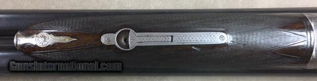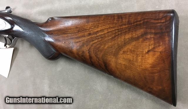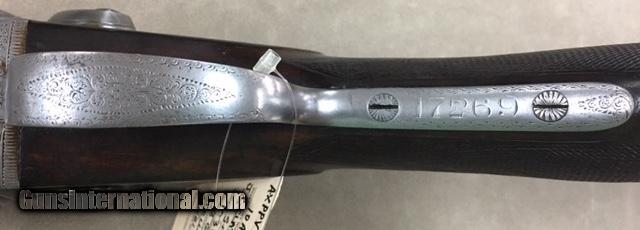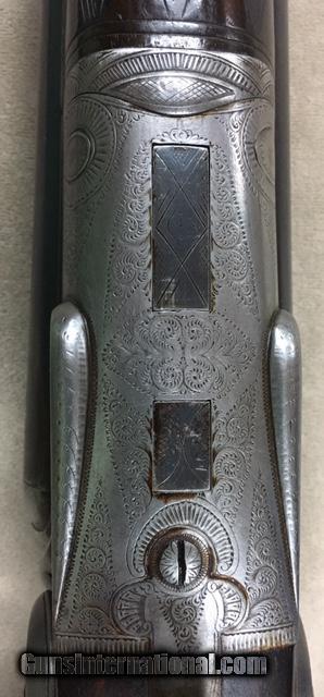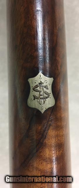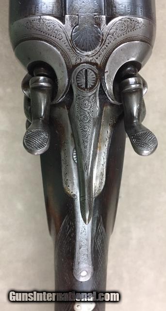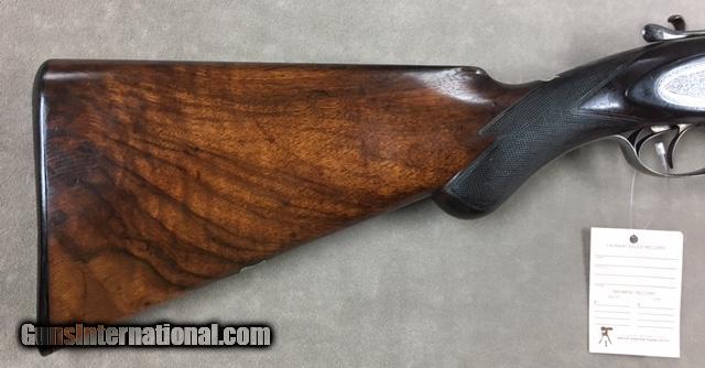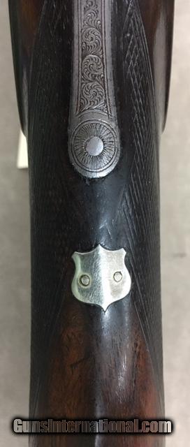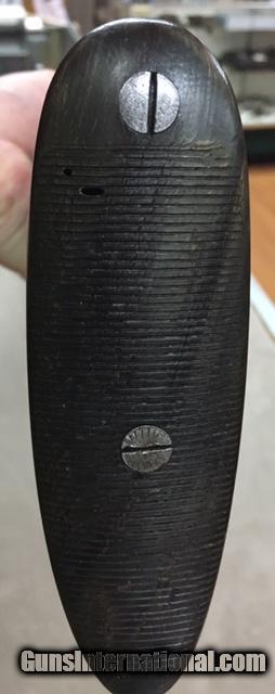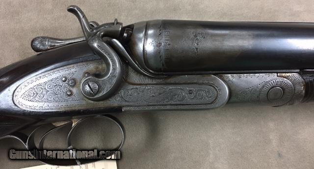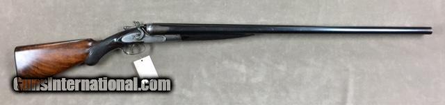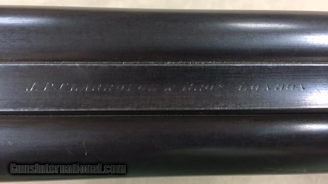 Description: A very nice J P Clabrough hammer gun in 8 Ga and with 34 inch barrels with very good to excellent bores and chambers. Wood is original and a bit fancy for these old 8 Ga guns, with most original finish, etc. Barrels are marked Laminated Steel and have been rust blued - they may be damascus but sure look to be fluid steel as I cannot detect any pattern whatever, even on the underside. Gun has been well taken care of and if you are looking for a nice example of an 8 Ga gun then this one is for you. Weight is 11 lbs 14.6 ounces. LOP 14 inches, Drop (Heel) 3 inches, Drop (comb) 2 inches, Cast (Off) 1/16 inch. From our best estimates this gun was made around 1890. Feel free to call us with any questions you may have on this great old shotgun. No ffl required to purchase as gun is an antique SOLD Curio/Relic: Yes Antique: Yes |