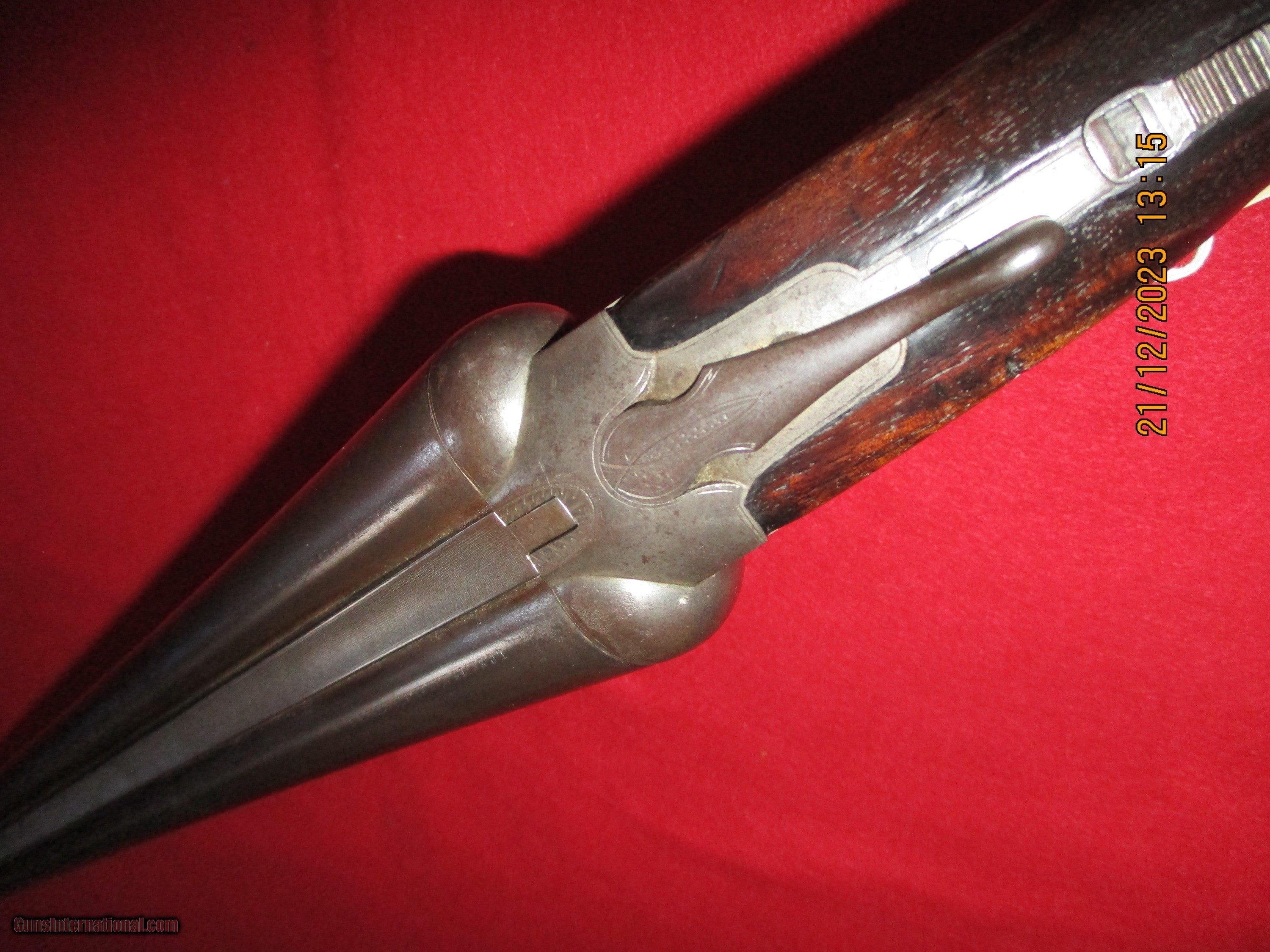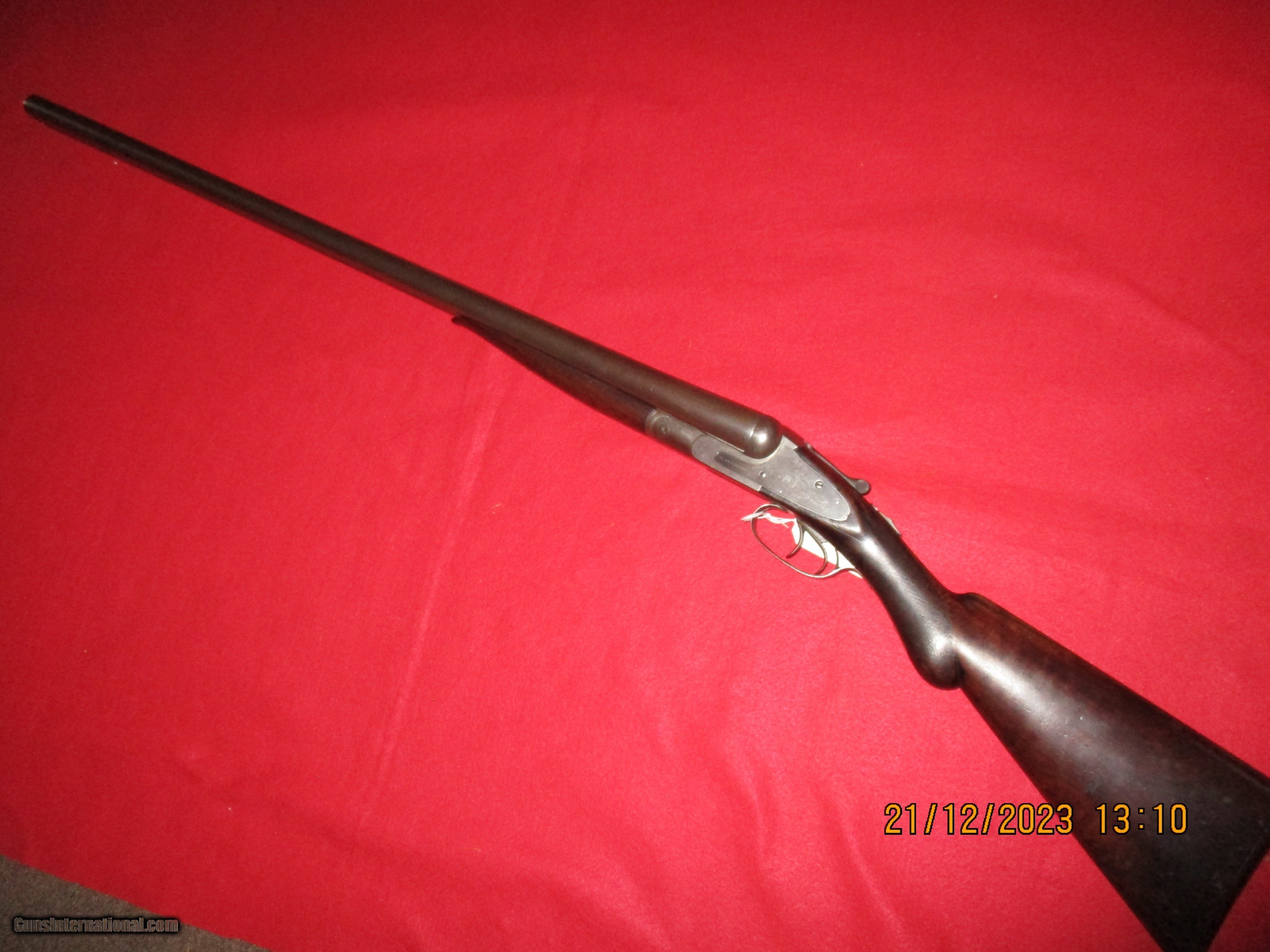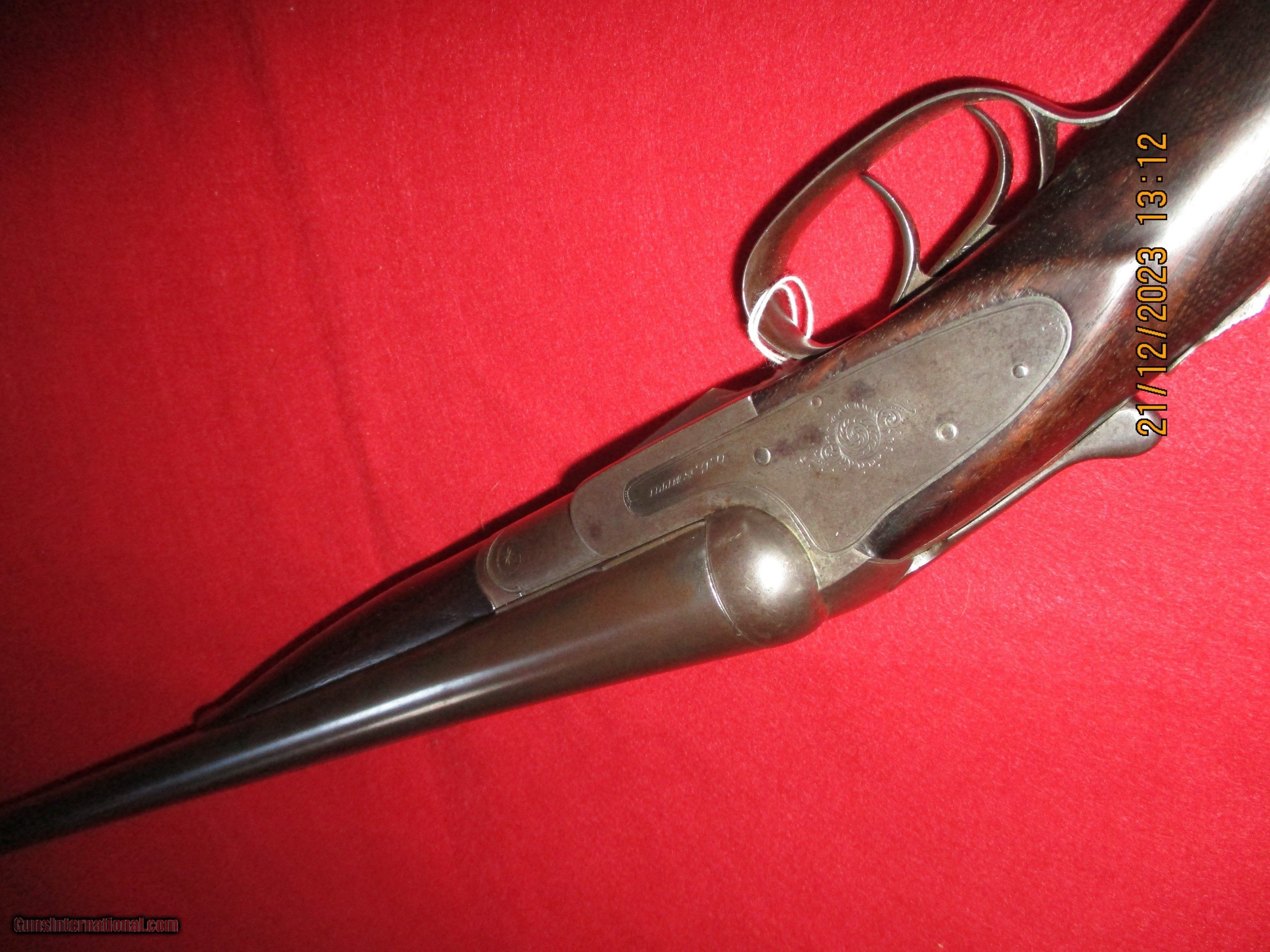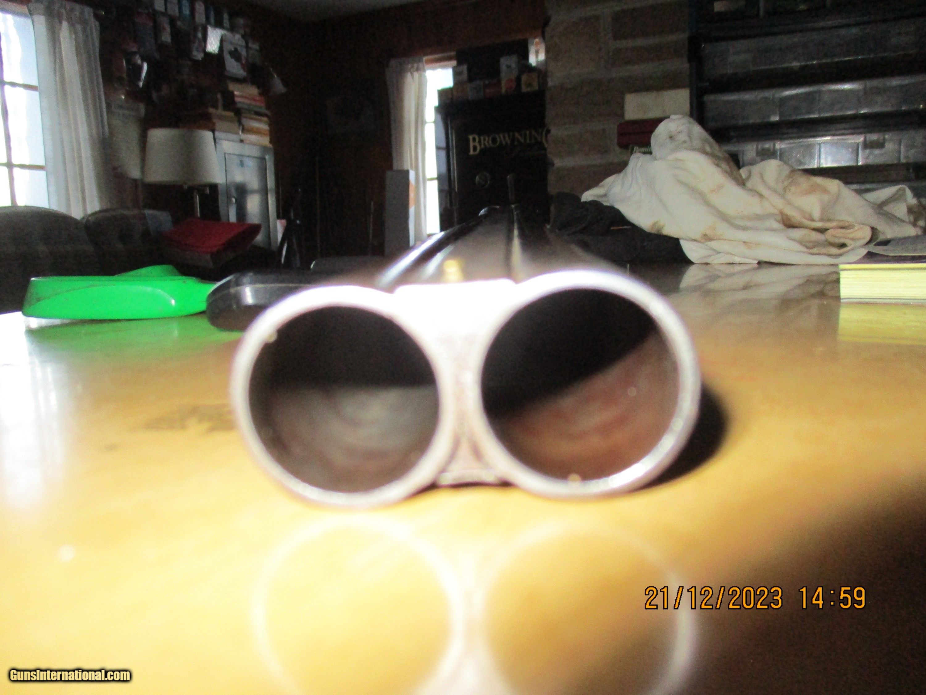 Description: Solid gun, no cracks or major blems in the wood. Ebony forearm insert undamaged and nice, abeit worn dog buttplate, screws still aligned straight up and down. Fully functional, fired a couple of primed cases ok. A 3 1/2" 10 ga shell drops right in but I would strongly advise not to ever fire it with any kind of modern ammunition. This was a blackpowder gun and never designed for smokeless powder. The bores apear rough but a patch pushed down the barrels was quite smooth- to clean the primer residue. Barrels ring true and mike about .755 at the muzzle. This is an antique so no FFL or C&R is needed. Insured shipping will be $45 to lower 48 and we need proof of age over 21 (like a driver's license photocopy) Certified funds get immediate shipping while business and personal checks wait a week to clear- sorry no credit cards anymore (old school) SOLD Antique: Yes Shotgun Gauge: 10 Gauge Manufacturer: lc smith Model: #2 damascus Serial Number: 190xx Barrel Length: 32 |