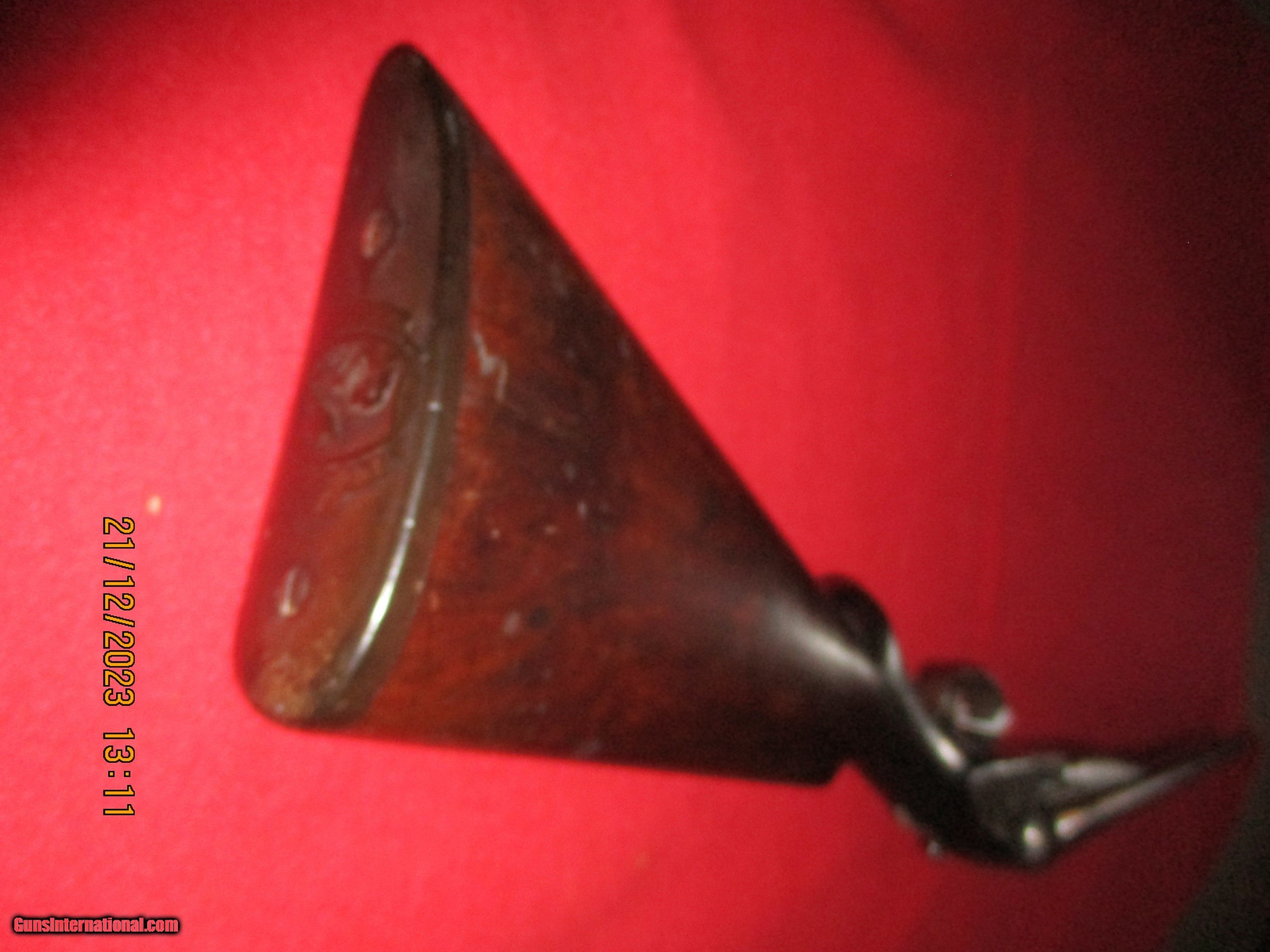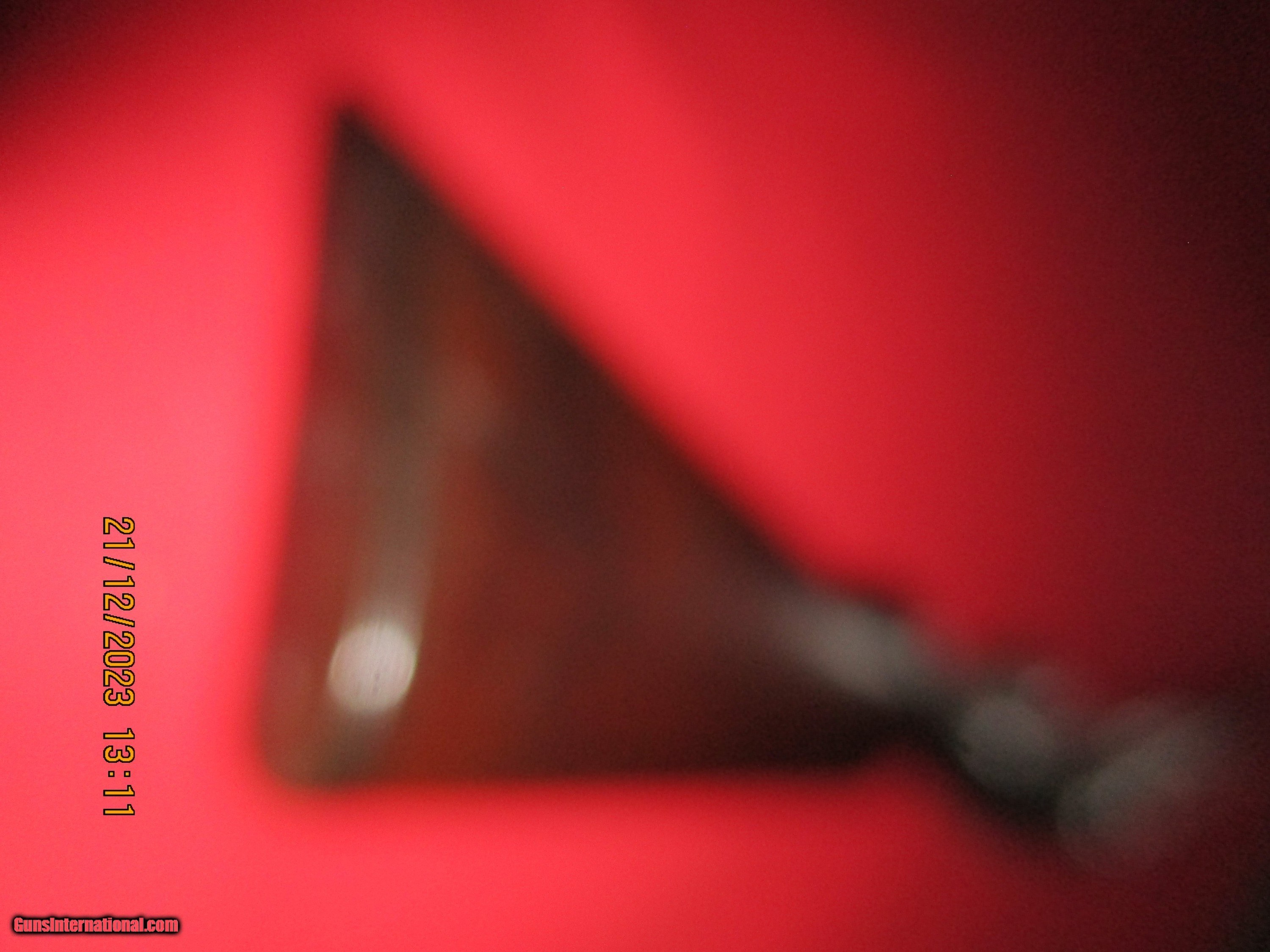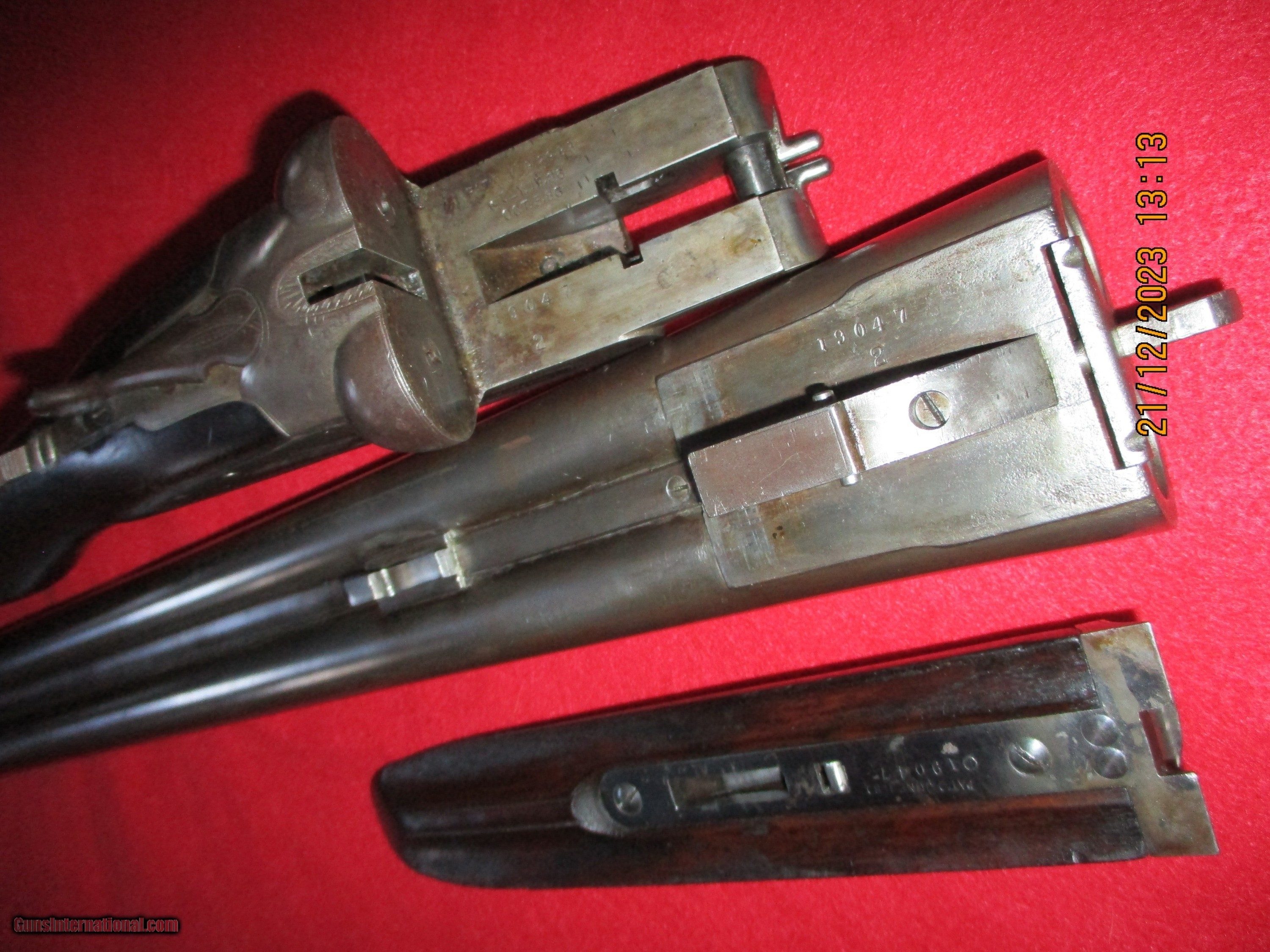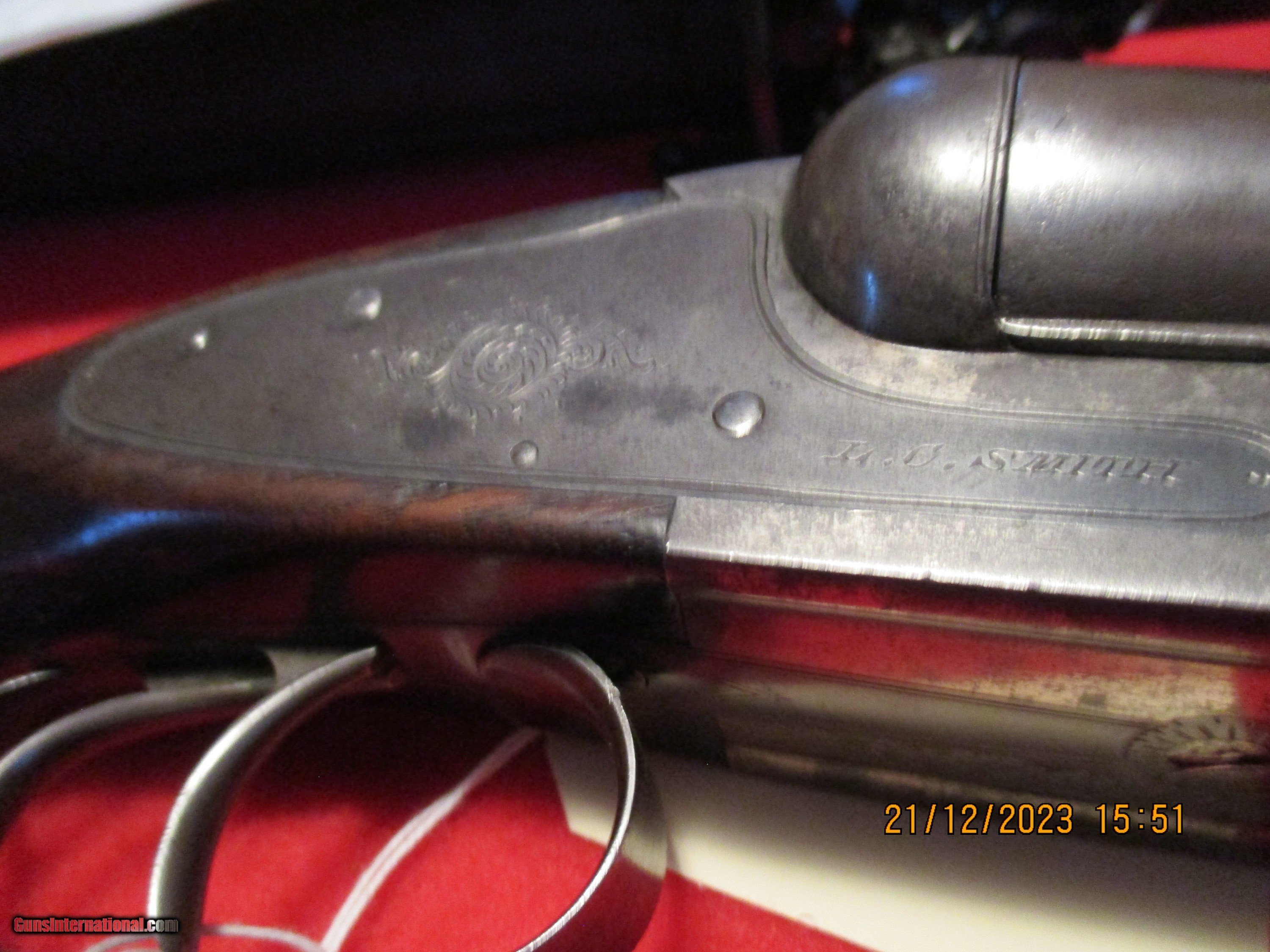Description: Solid gun, no cracks or major blems in the wood. Ebony forearm insert undamaged and nice, abeit worn dog buttplate, screws still aligned straight up and down. Fully functional, fired a couple of primed cases ok. A 3 1/2" 10 ga shell drops right in but I would strongly advise not to ever fire it with any kind of modern ammunition. This was a blackpowder gun and never designed for smokeless powder. The bores apear rough but a patch pushed down the barrels was quite smooth- to clean the primer residue. Barrels ring true and mike about .755 at the muzzle. This is an antique so no FFL or C&R is needed. Insured shipping will be $45 to lower 48 and we need proof of age over 21 (like a driver's license photocopy) Certified funds get immediate shipping while business and personal checks wait a week to clear- sorry no credit cards anymore (old school) SOLD Antique: Yes Shotgun Gauge: 10 Gauge Manufacturer: lc smith Model: #2 damascus Serial Number: 190xx Barrel Length: 32 |