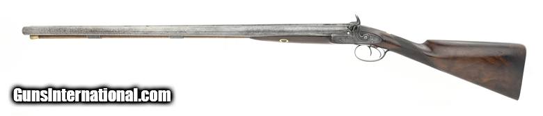 Description: MacFarlane Double Barrel 10 Gauge shotgun. Side by side shotgun circa 1850’s-1860’s. 31” Damascus barrels marked “MacFarlane” marked “New York”. Stock is nicely figured walnut. A quality percussion side by side shotgun.