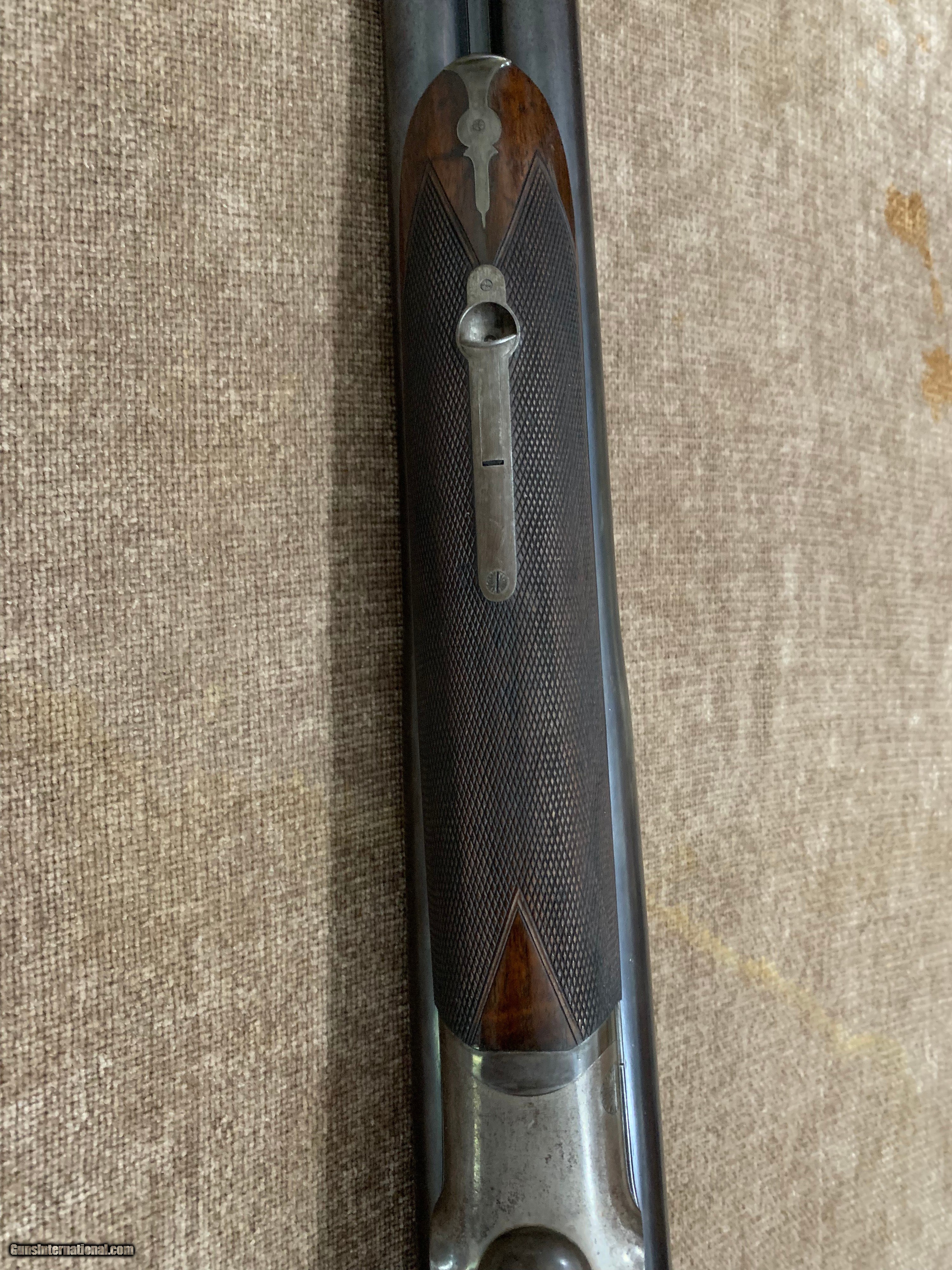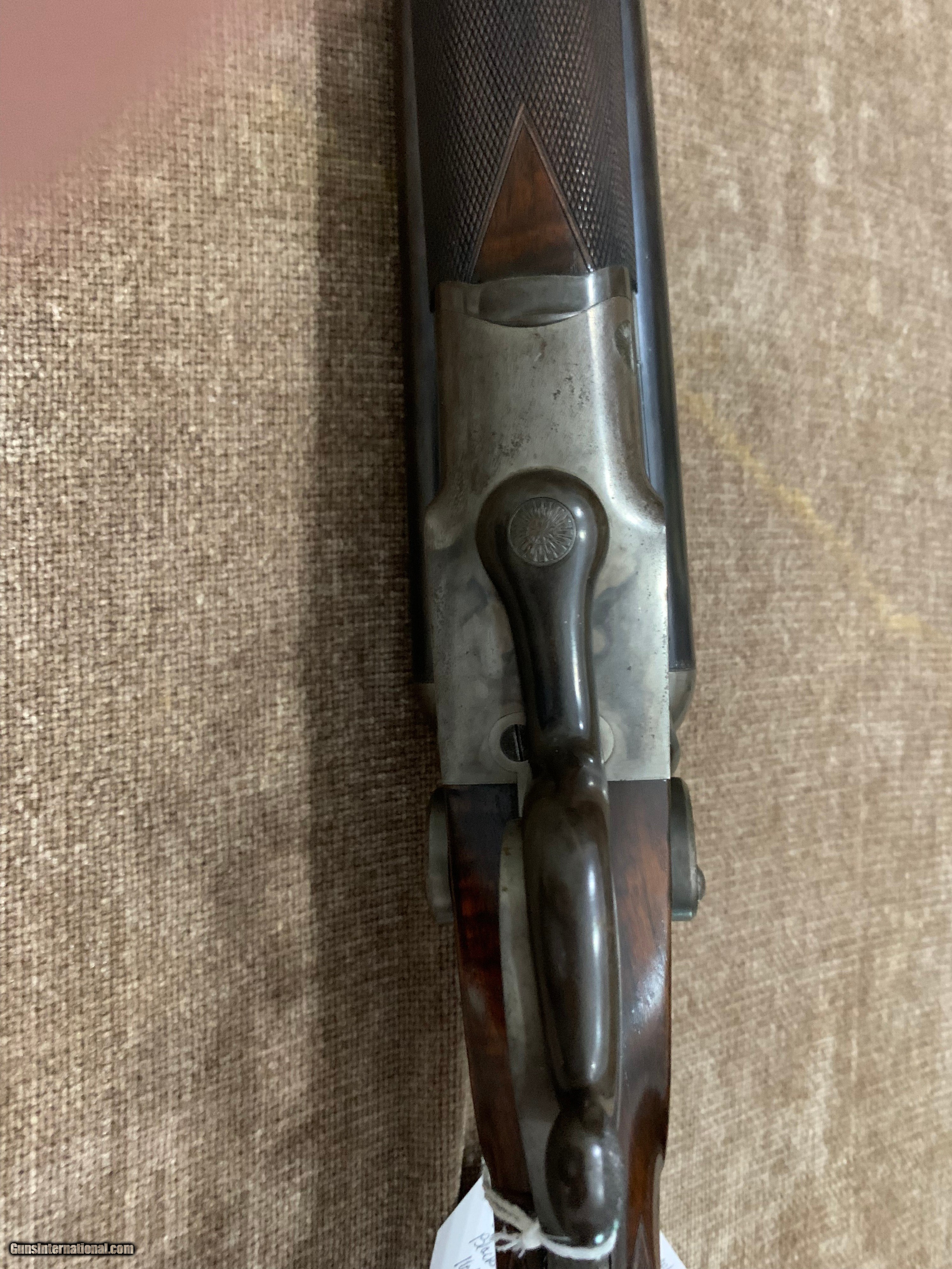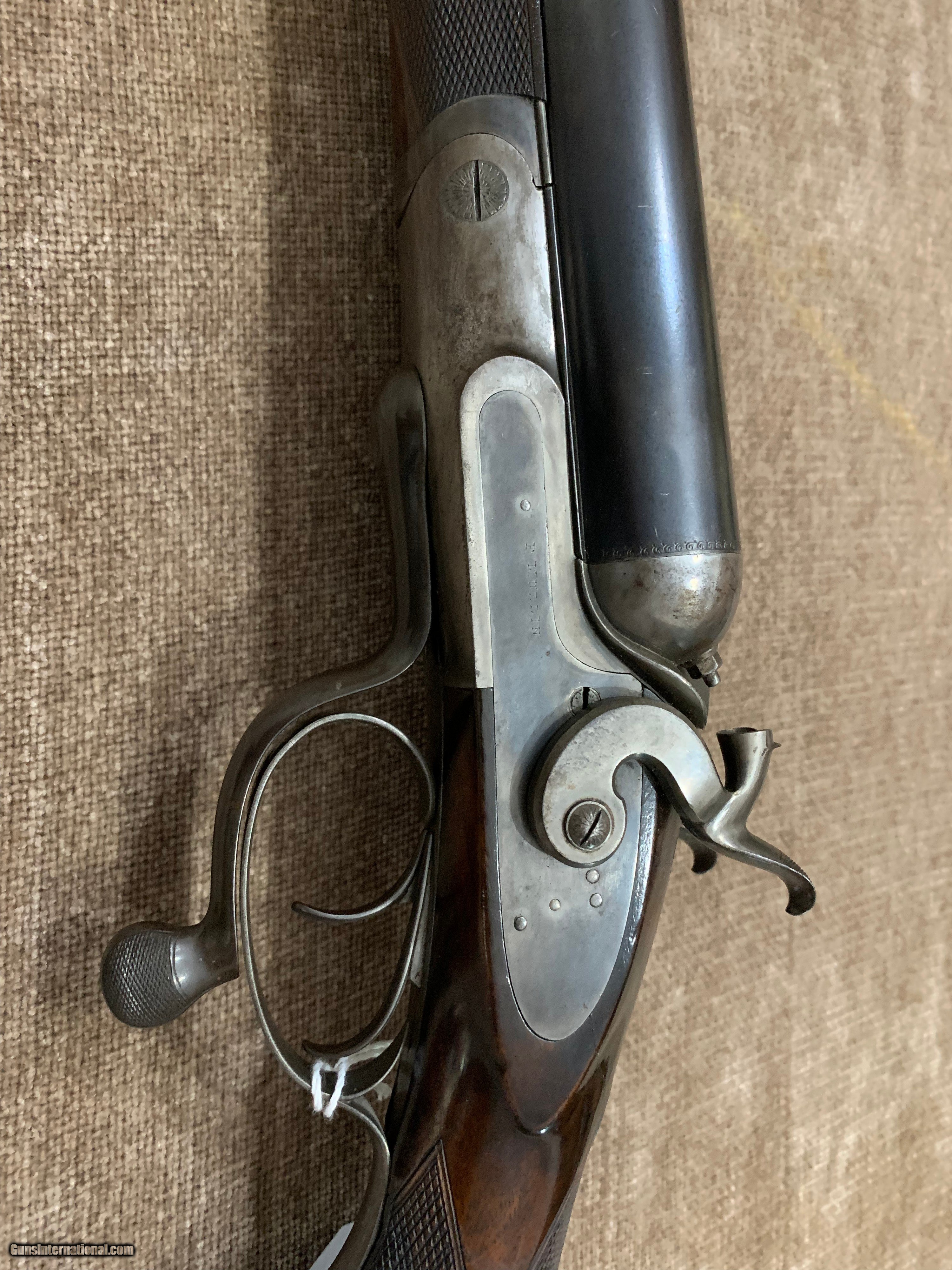 Description: PATRICK MULLIN (NY) 8GA HAMMER GUN W/40"BARRELS, JONES UNDERLEVER ACTION, PERC FENCES, P/G STOCK W/GOLD SHIELD. GUN HAS PERFECT BORES, THICHT ACTION, COMES WITH BRASS 12GA CHAMBER INSERTS AND 1 BOX (10) GAME BORE BLACK POWDER AMMO. 16LBS 10OZS, 14 3/4" LOP. $5500.00. JOHN 443-952-7165 PHONE ONLY PLEASE. SOLD |