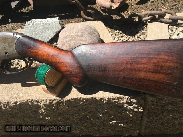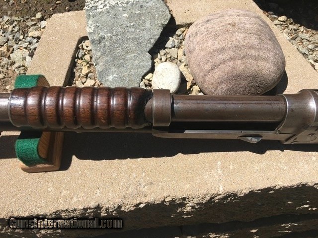 Description: Listing a antique Spencer- Bannerman 12 gauge pump shot gun, serial number 12569, some historian's believe these were the first pump shotguns offered by any arms company for smokeless powder. I'd read Browning's designed 1893 Winchester was no doubt the first pump built but for black powder . With the advent of the new smokeless powder Winchester offered one of the first recalls on the 1893's to no doubt avoid law suites. Then came with the 1897 which was for smokeless shotshells. This Spencer sports a 30" Damascus barrel. Walnut pistol grip stock , in really fine mechanical shape for a antique shotgun. I would imagine if you were into loading and loaded accordingly this shot gun would be fun to shoot. The action is like greased lightning. I really don't know the valu so will post a asking price and might be open to some offers depending on the interest . $45.00 shipping & insurance and a three day inspection and return if you desire a refund minus shipping charges, no shooting or dismantling , please SOLD Antique: Yes Manufacturer: Spencer Model: 1896 Serial Number: 12569 Condition: Decent Metal Condition: Good Wood Condition: Good Bore Condition: Good Action: Pump Gauge Info: 12 Stock: Pistol grip Butt Pad: Metal Manufacture Date: 1896 |