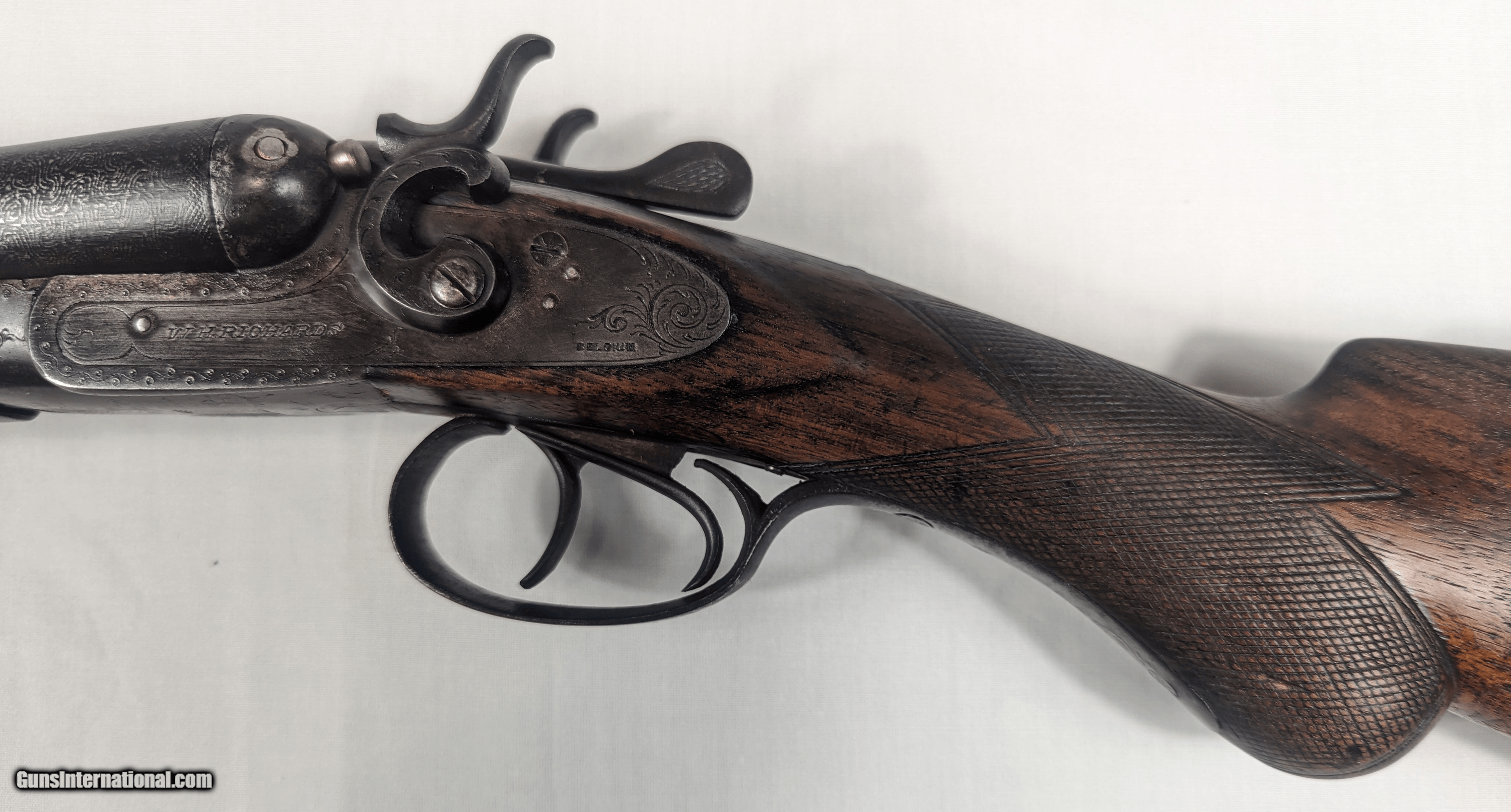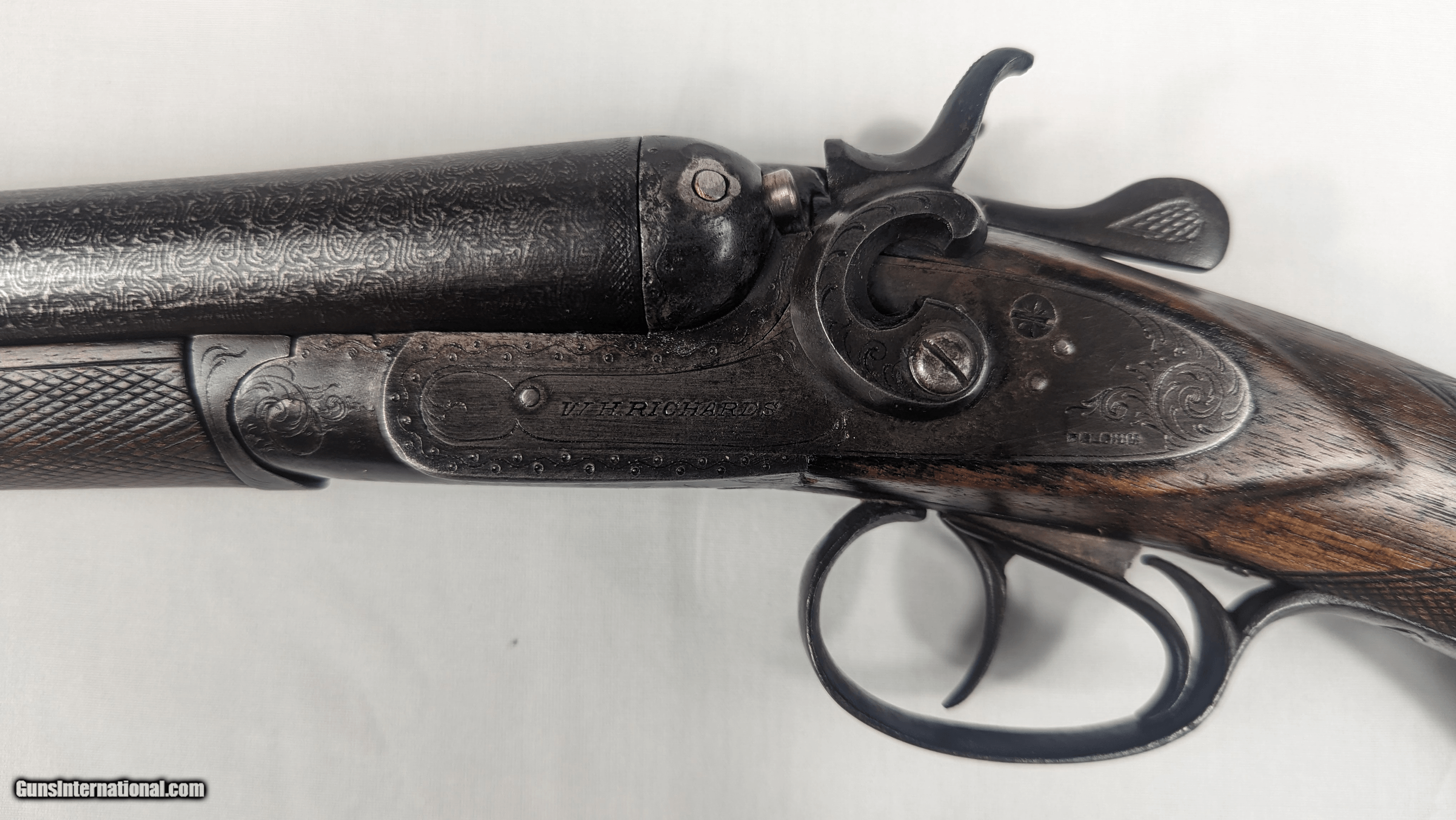 Description: W.H. Richards 12ga Shotgun. Thumb print Damascus. Lockup is off face and there is moderate pitting in the bore. Please Email or Call if you have any questions. Phone: 509-242-3698 Buyer is responsible for shipping costs to be determined after shipping location is known. SOLD Antique: Yes Shotgun Gauge: 12 Gauge Manufacturer: W.H. Richards Condition: Good Condition Metal Condition: Good Wood Condition: Good Bore Condition: Slight Pitting Action: Lock up is off face |