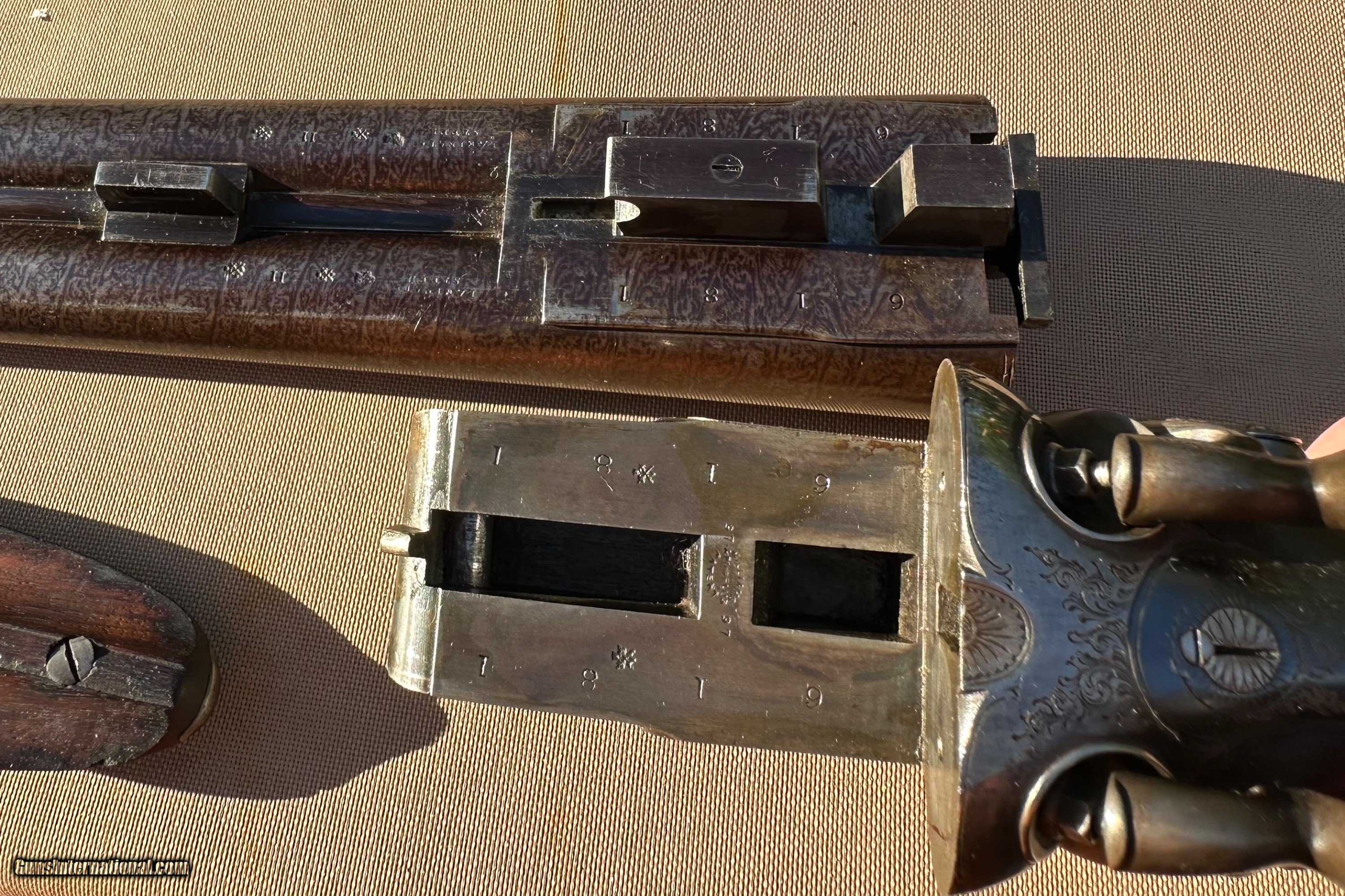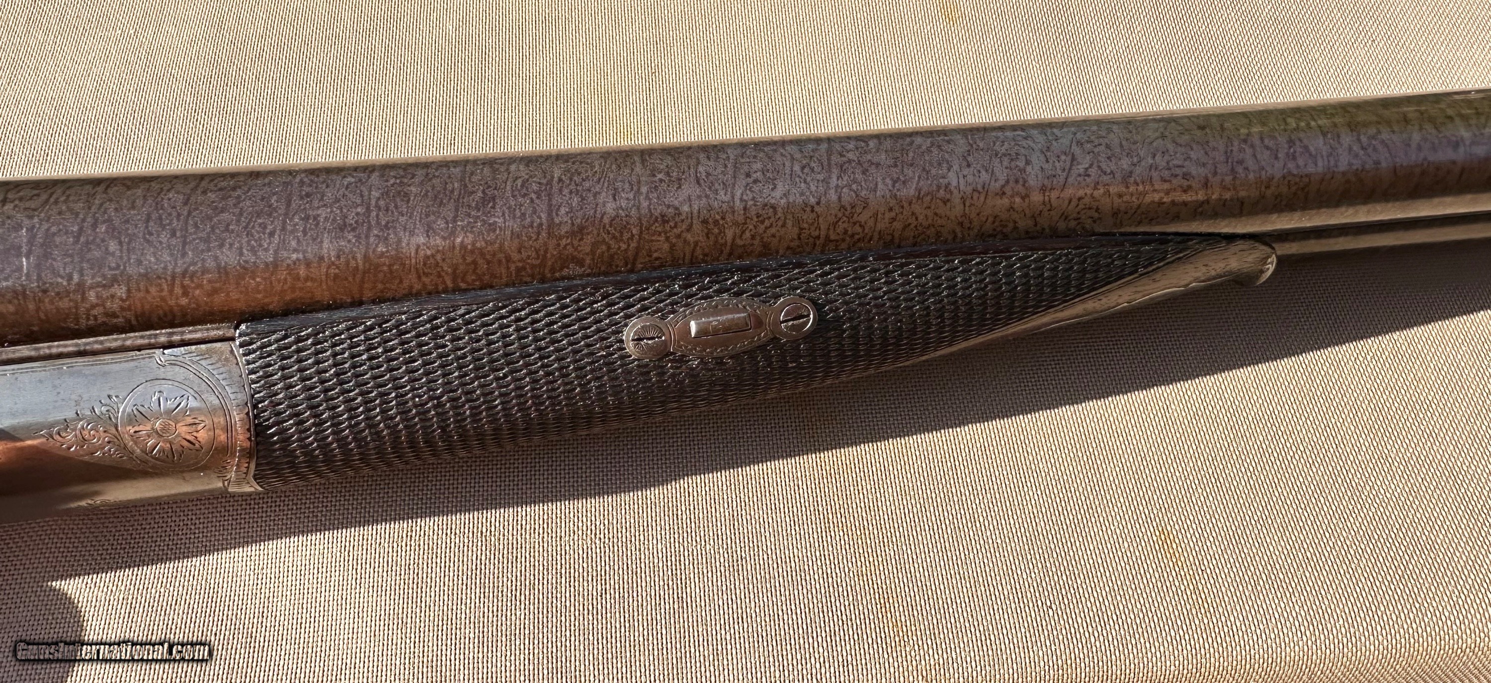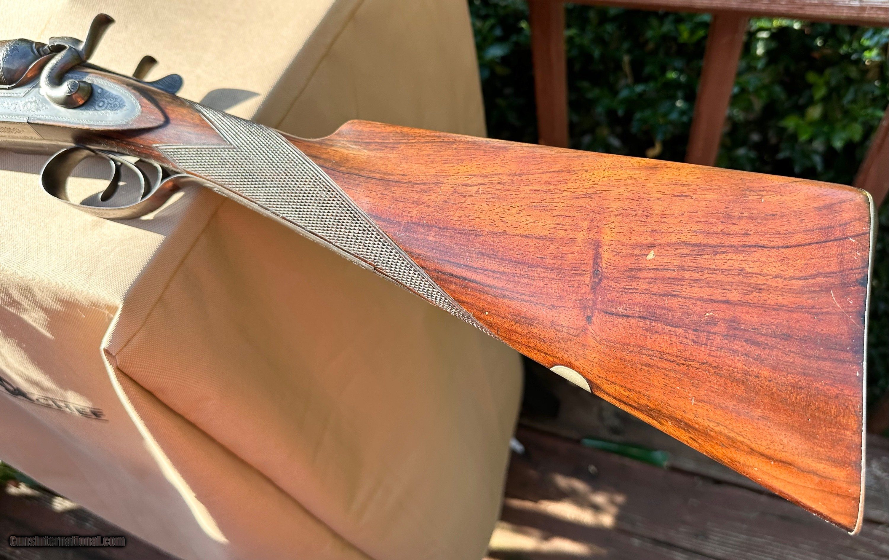 Description: For Sale; Williams and Powell, Damascus 10ga. SxS, barrels are 30" long. Bores are bright but there are some areas of light spotting. Mechanically in excellent condition.. lockup it tight. I believe at some time in its life someone may have put finish on the butt stock?? (See pictures). I have priced accordingly. Shotgun is in very good overall condition. Antique shopgun pre-1898.... buyer pays shipping... email with questions....thanks SOLD Antique: Yes Shotgun Gauge: 10 Gauge Manufacturer: Williams and Powell Condition: Very good |