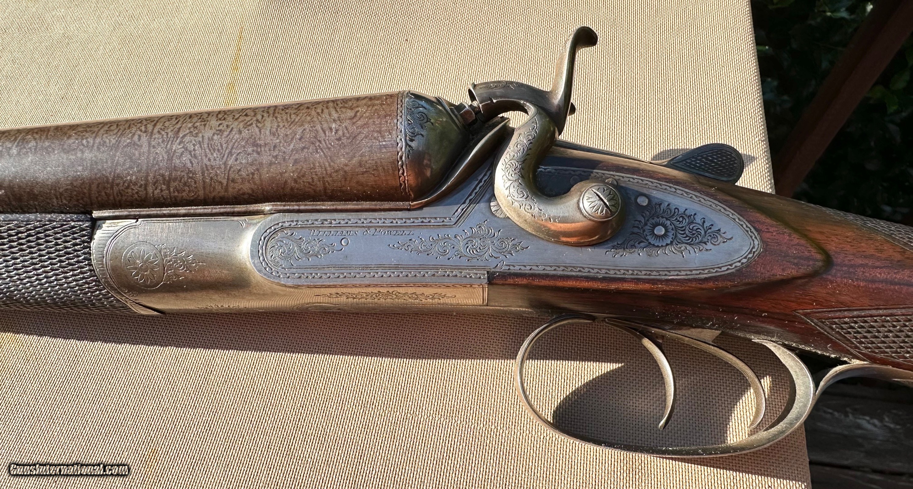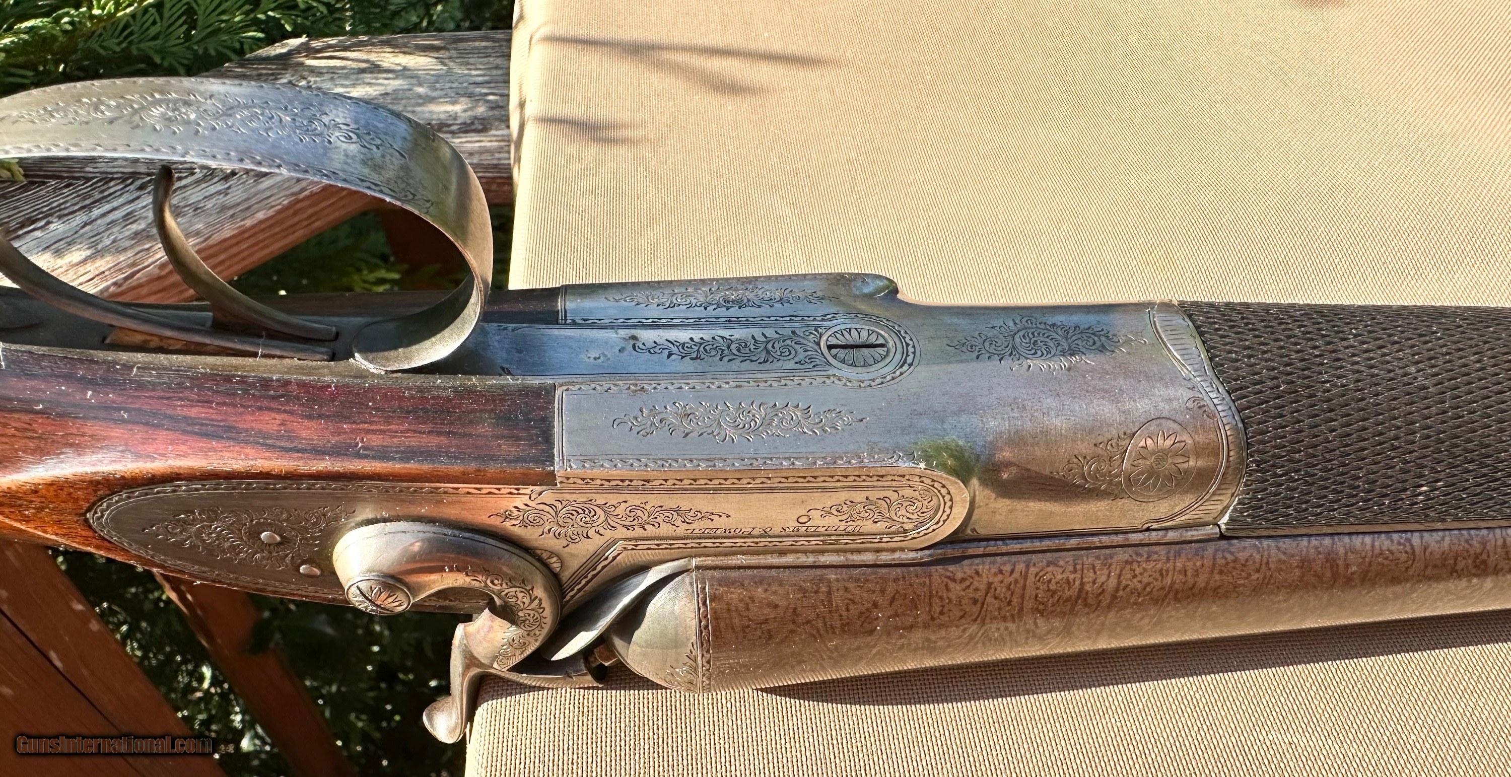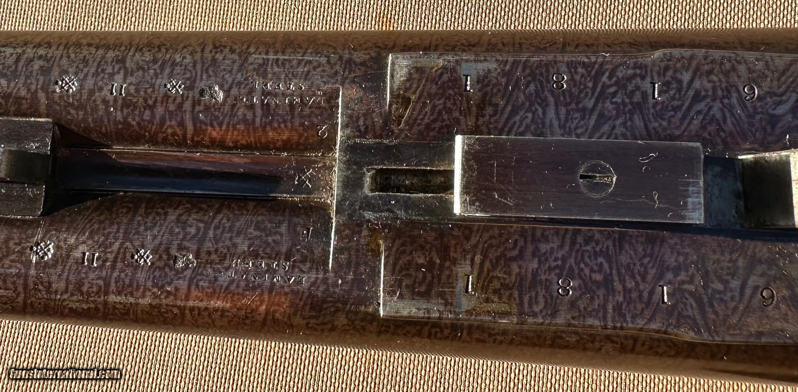 Description: For Sale; Williams and Powell, Damascus 10ga. SxS, barrels are 30" long. Bores are bright but there are some areas of light spotting. Mechanically in excellent condition.. lockup it tight. I believe at some time in its life someone may have put finish on the butt stock?? (See pictures). I have priced accordingly. Shotgun is in very good overall condition. Antique shopgun pre-1898.... buyer pays shipping... email with questions....thanks SOLD Antique: Yes Shotgun Gauge: 10 Gauge Manufacturer: Williams and Powell Condition: Very good |