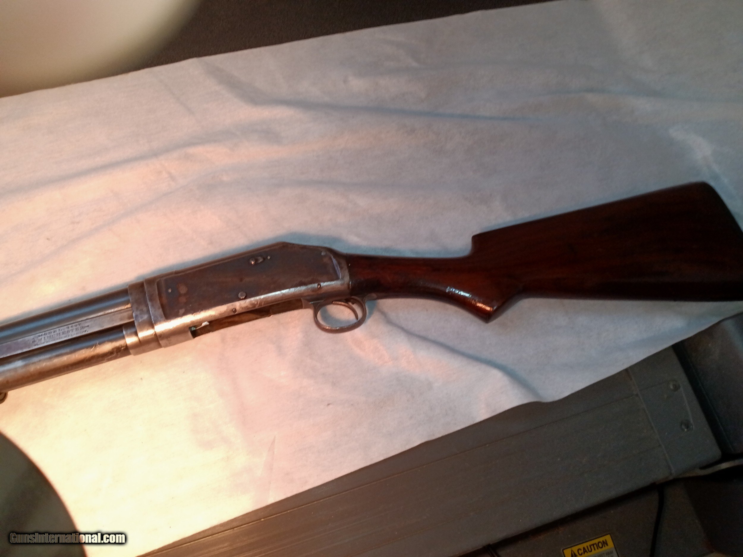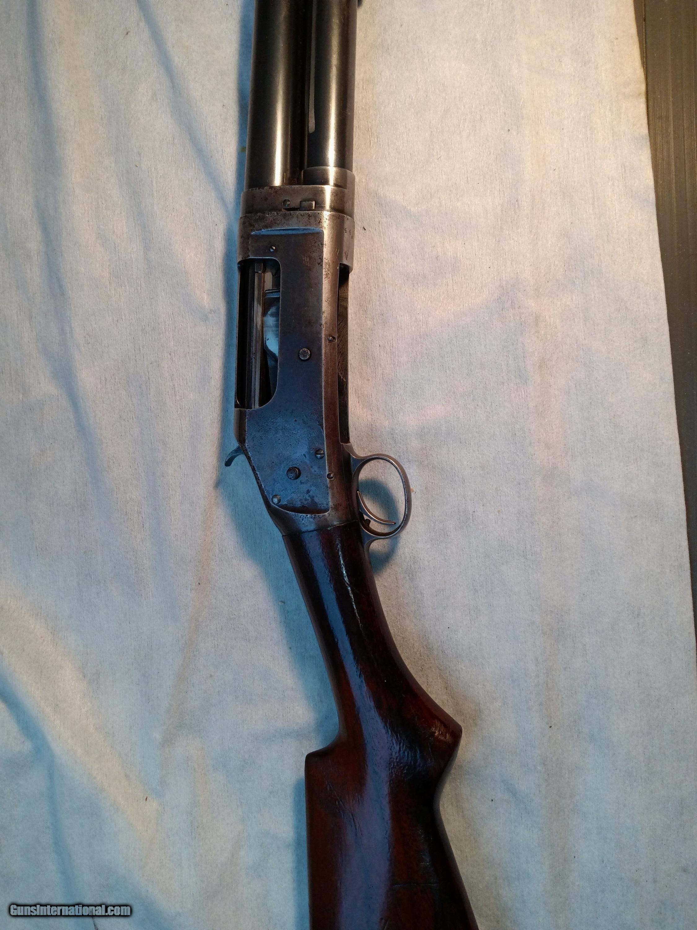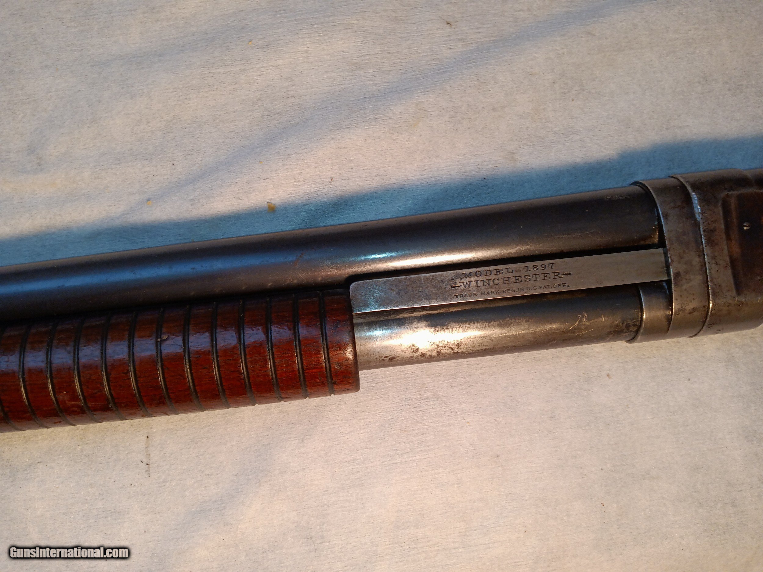 Description: winchester 97 excellent bore action is tight and smooth 50% blue excellent no cracks cycles fine 23/4 chamber s/n e441xxx made 1908 full choke 30 in.barrel some light pitting on barrel and reciver 695.00 SOLD |